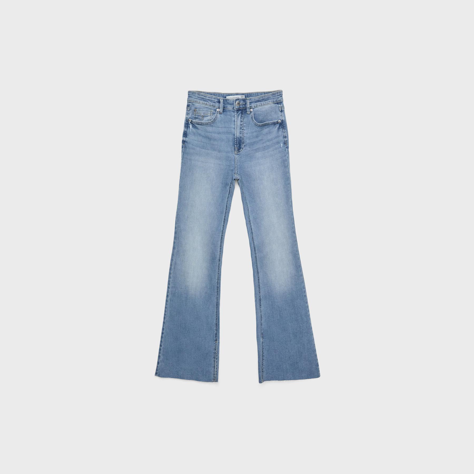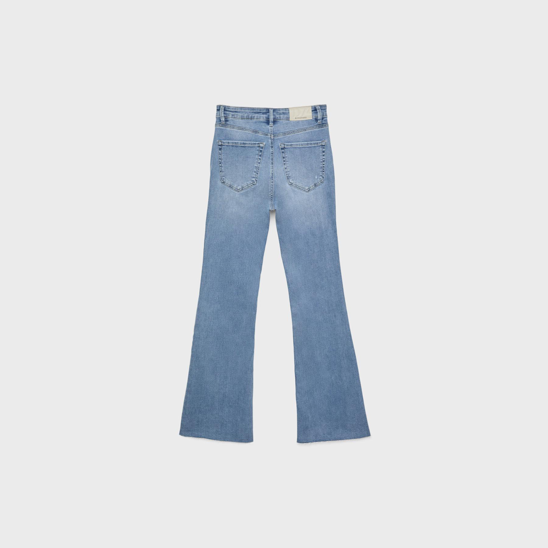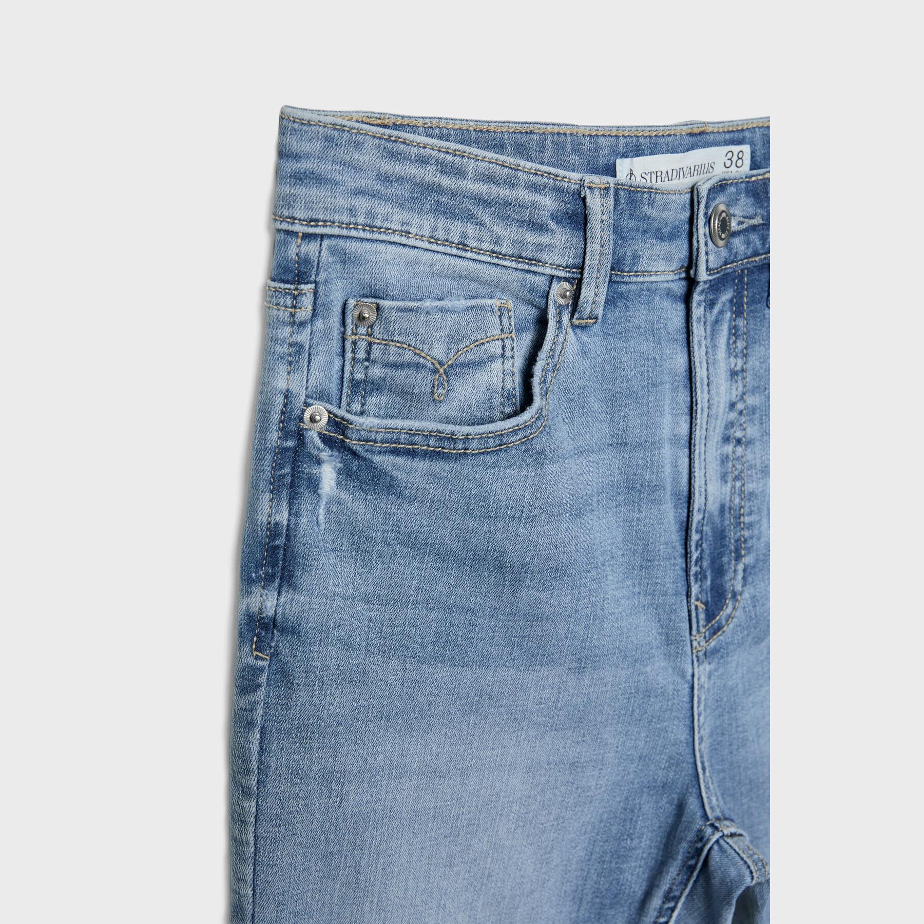 بنطال جينز Slim Fit بقصة إسبانيول مع شق داخلي – أزرق متوسط من Stradivarius
