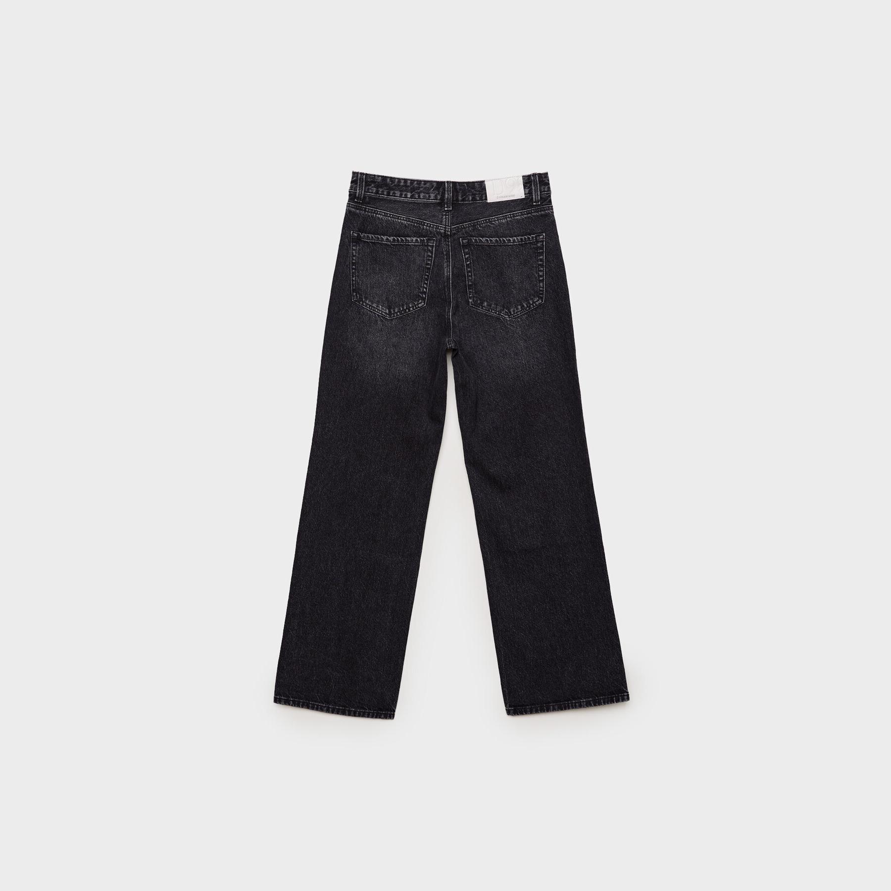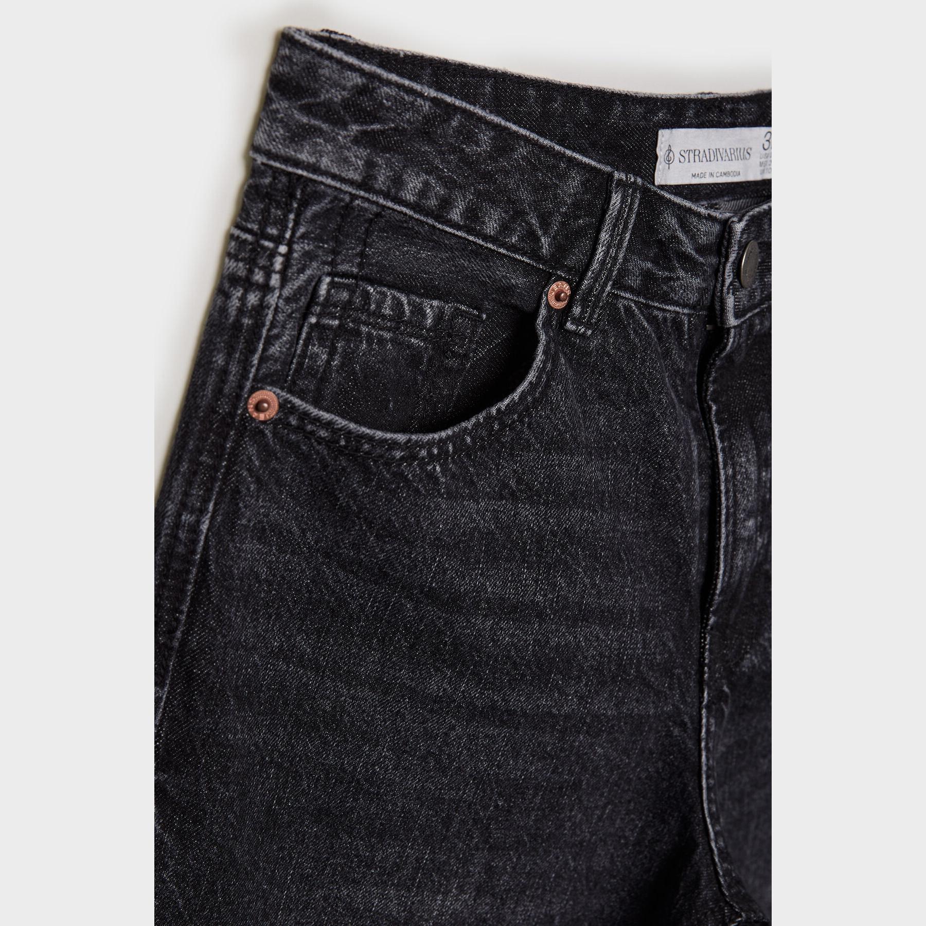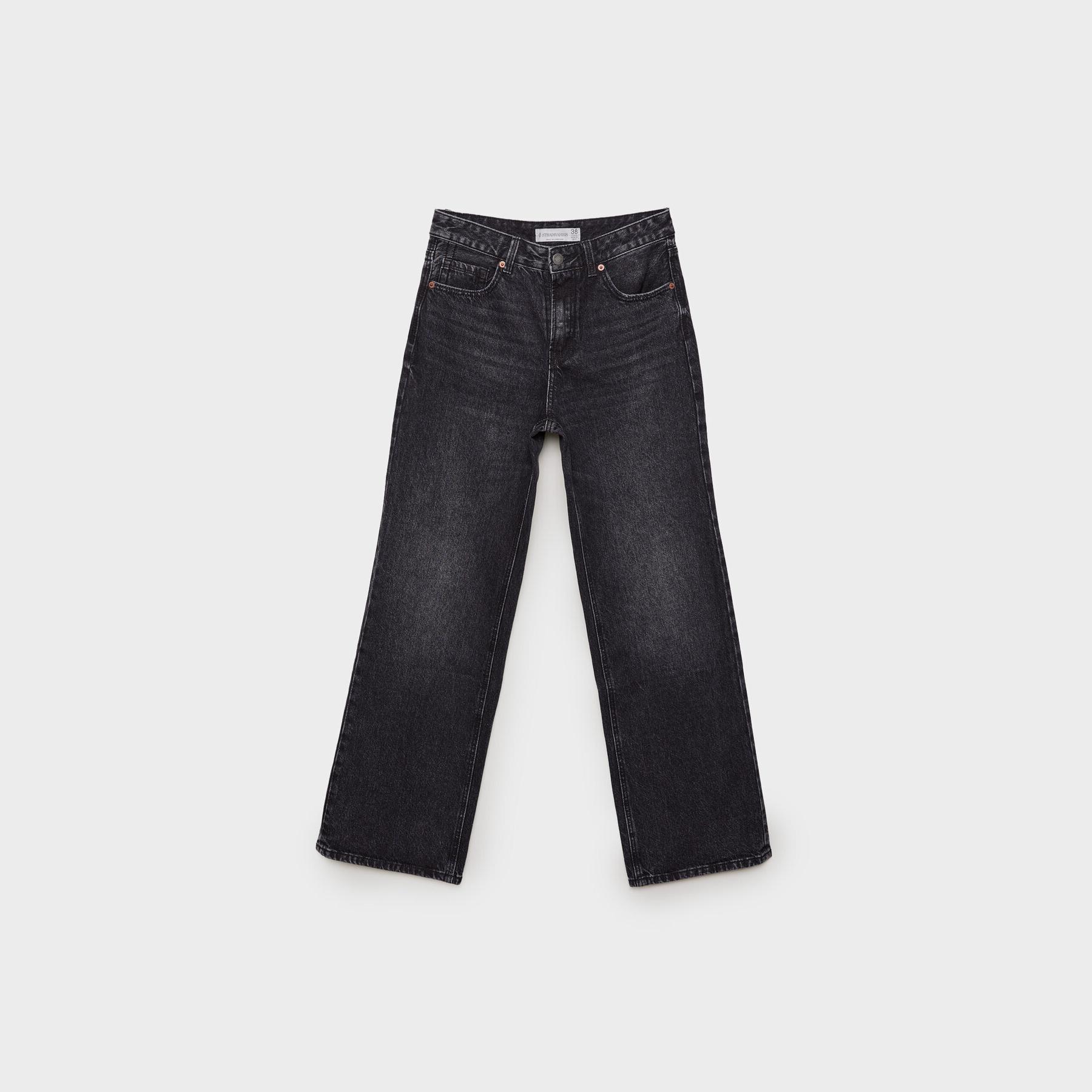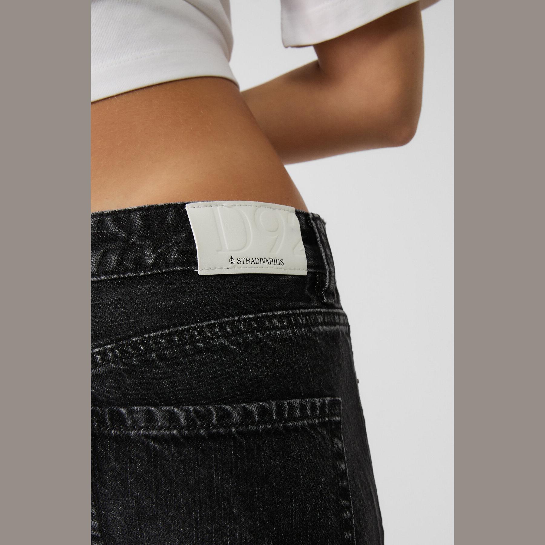بنطال جينز D92 بقصة مستقيمة واسعة وخصر عادي – أسود مغسول من Stradivarius