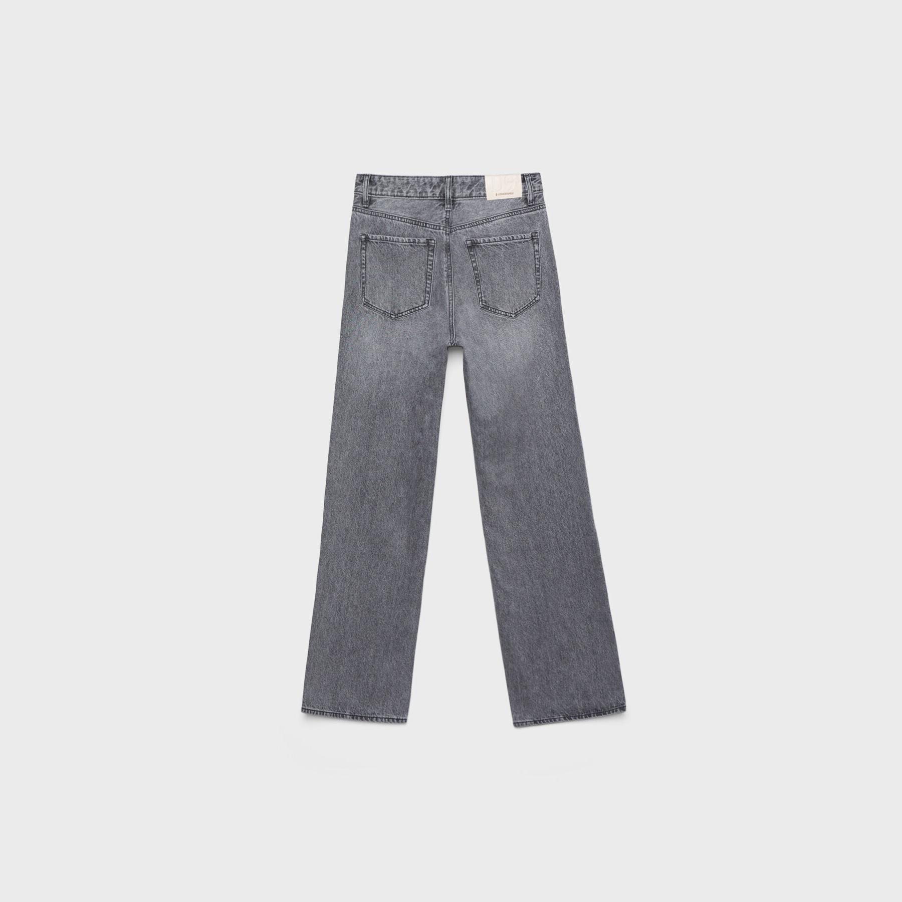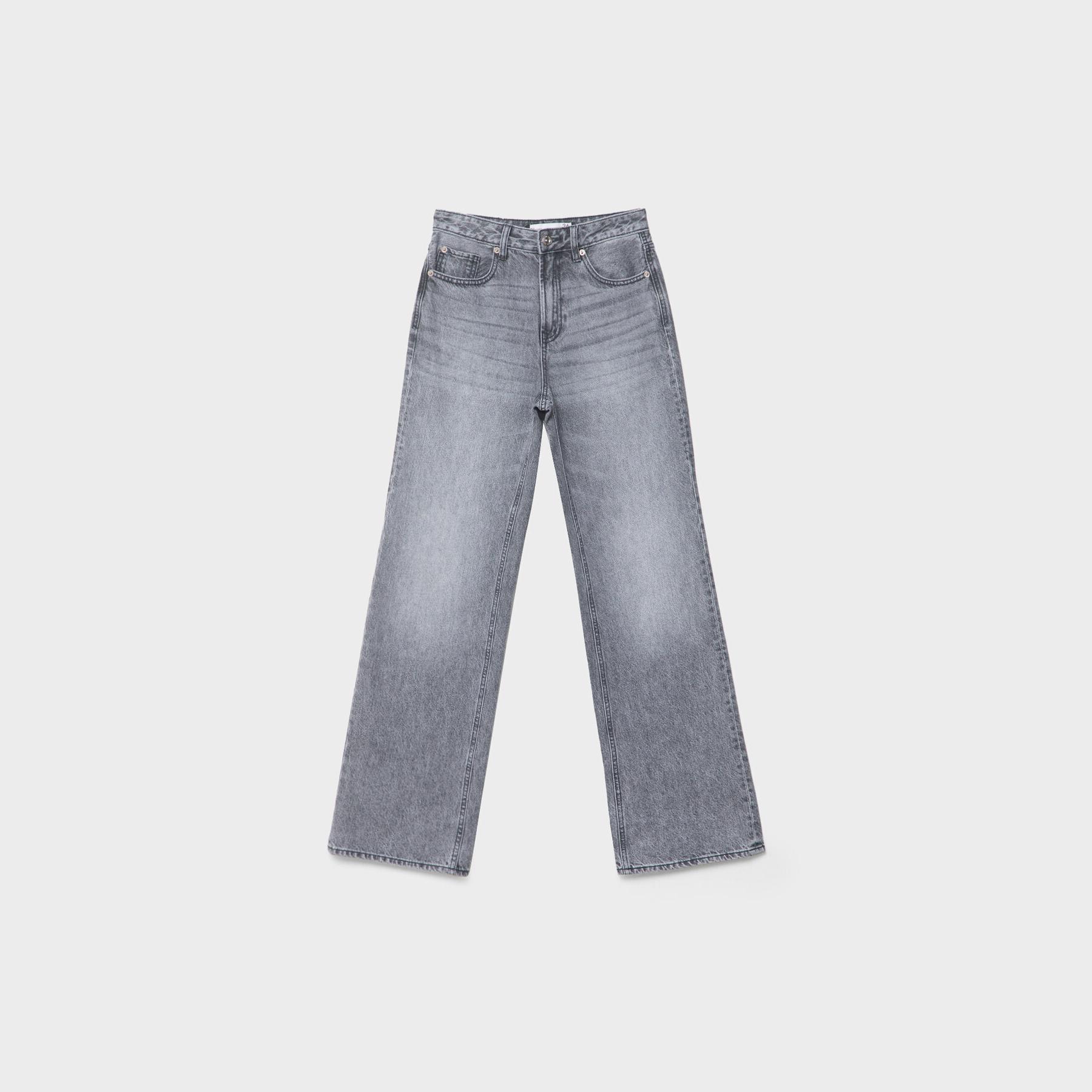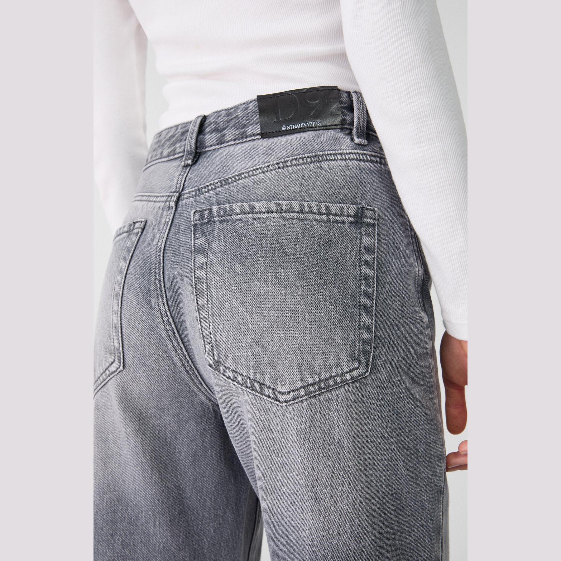 بنطال جينز D92 بقصة مستقيمة واسعة وخصر عادي – رمادي فاتح من Stradivarius