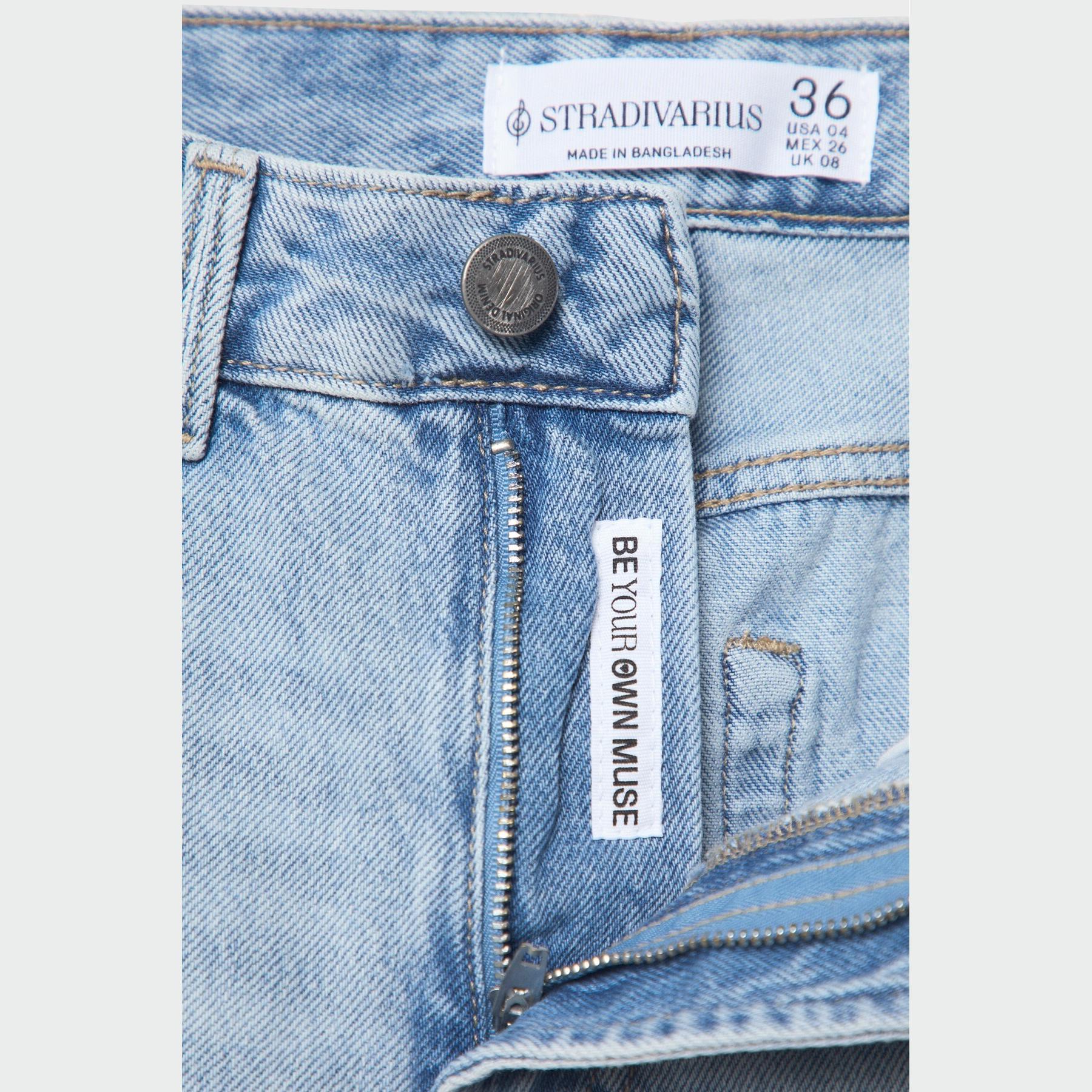 بنطال جينز D92 بقصة مستقيمة واسعة وخصر عادي – أزرق فاتح من Stradivarius