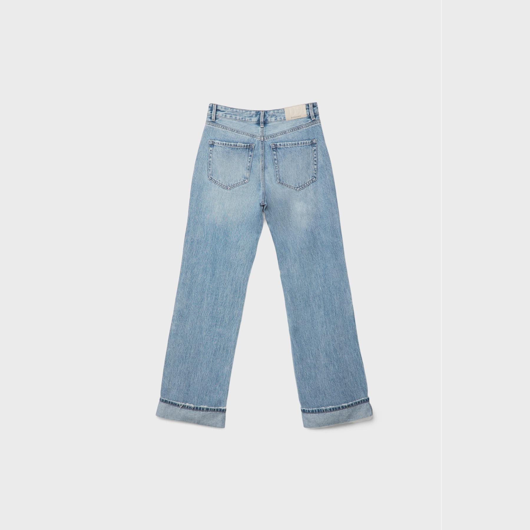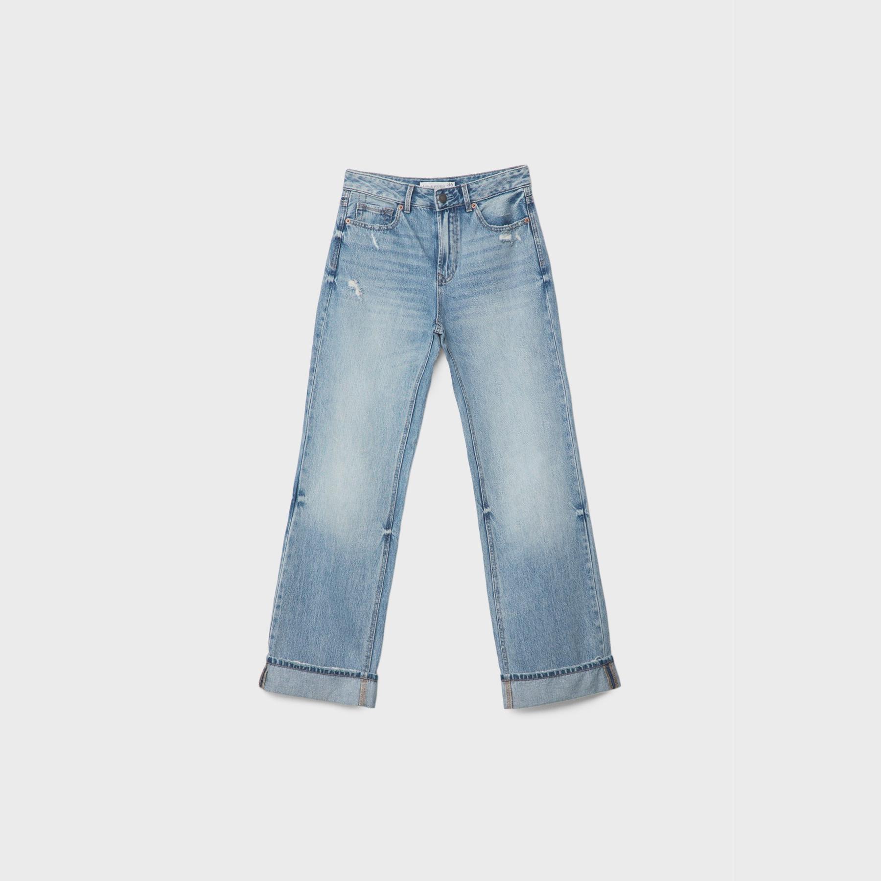 بنطال جينز D92 بقصة مستقيمة واسعة وخصر عالي – أزرق فاتح من Stradivarius