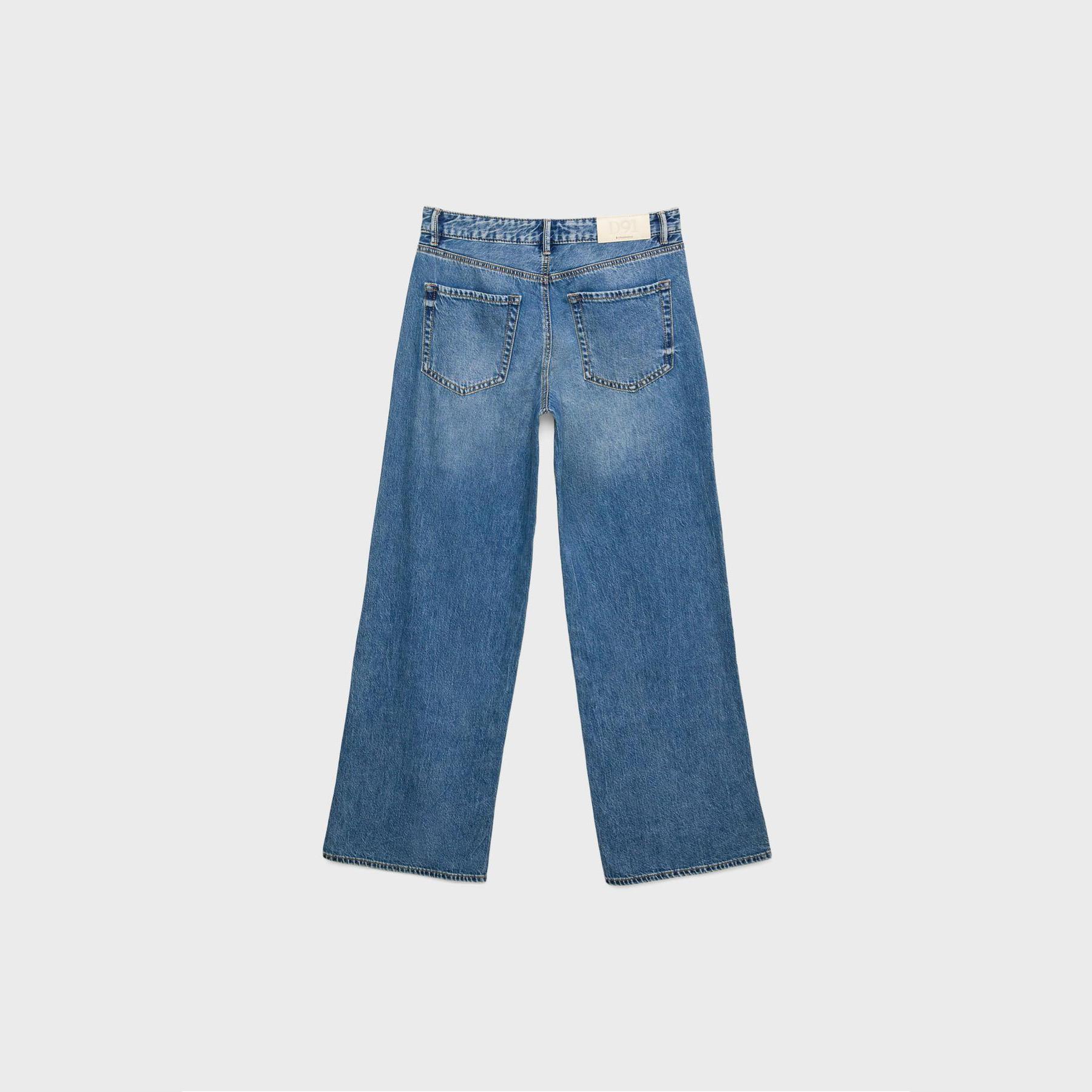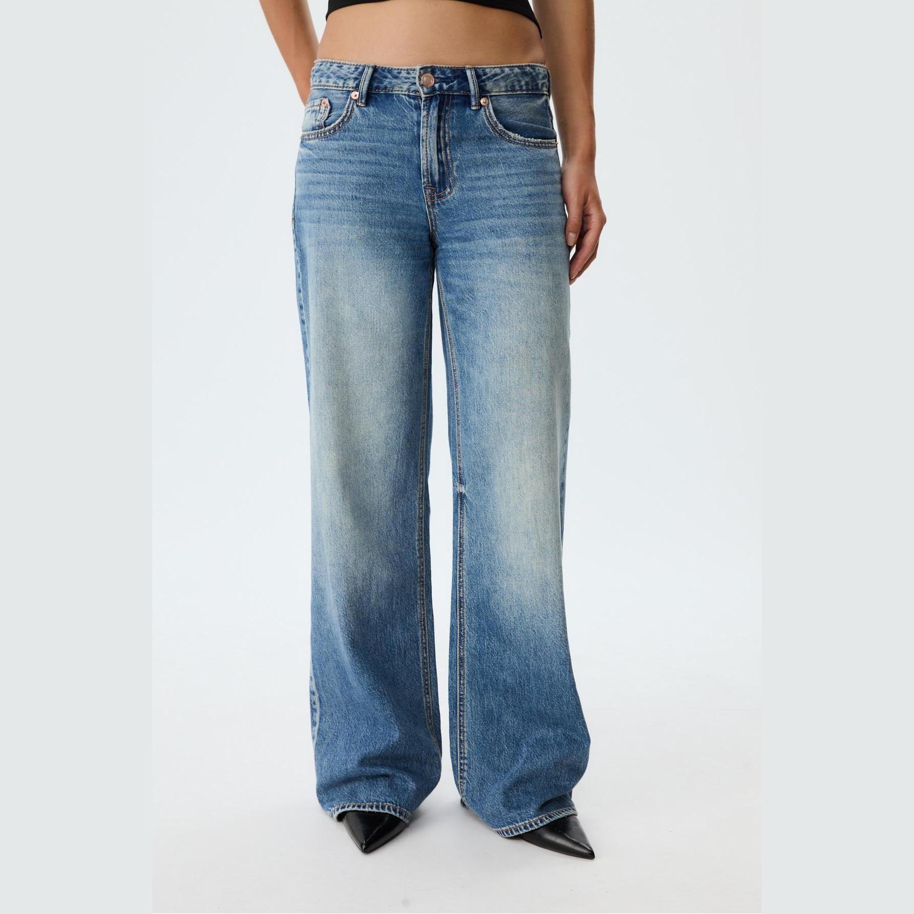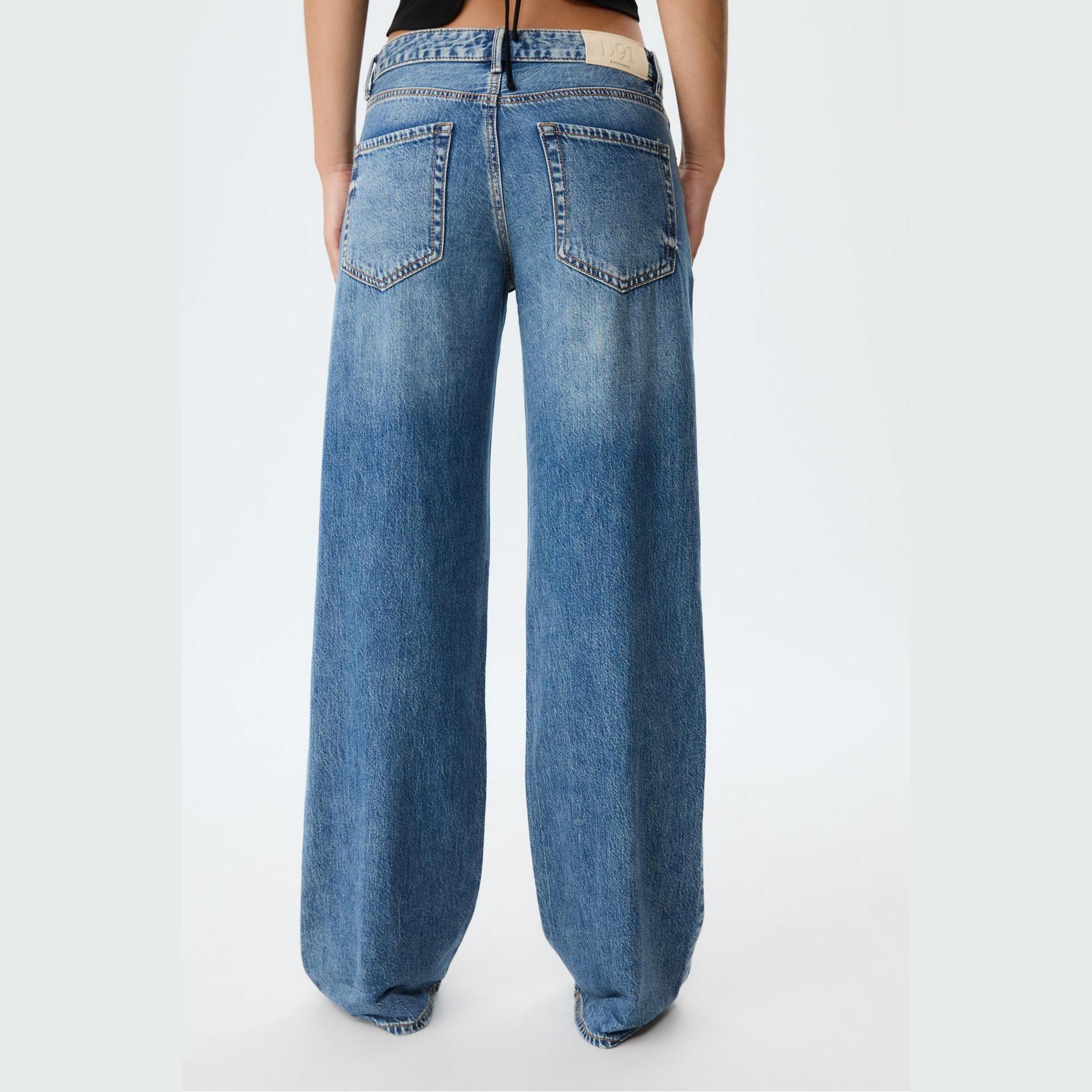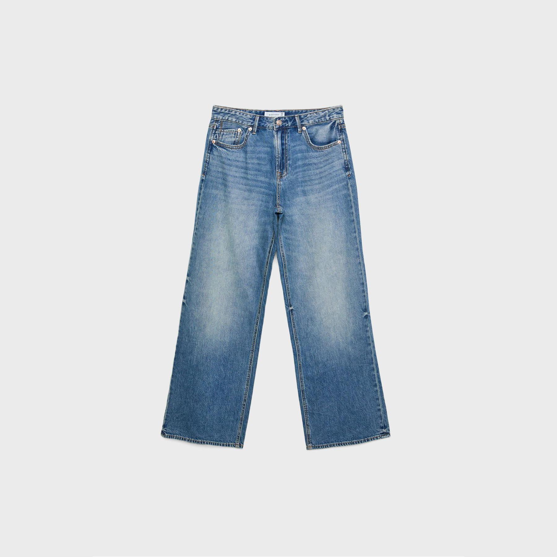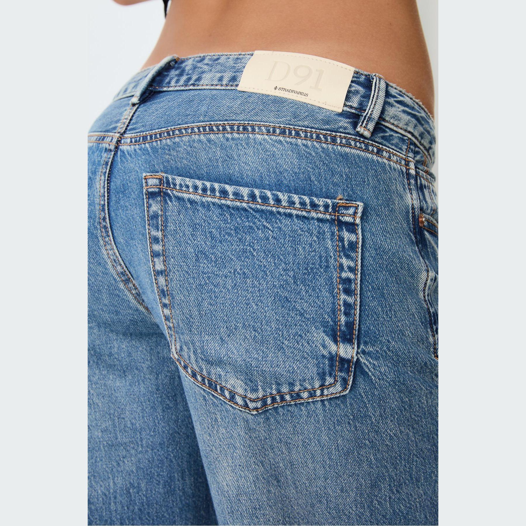 بنطال جينز D91 بقصة مستقيمة واسعة وخصر منخفض – أزرق متوسط من Stradivarius