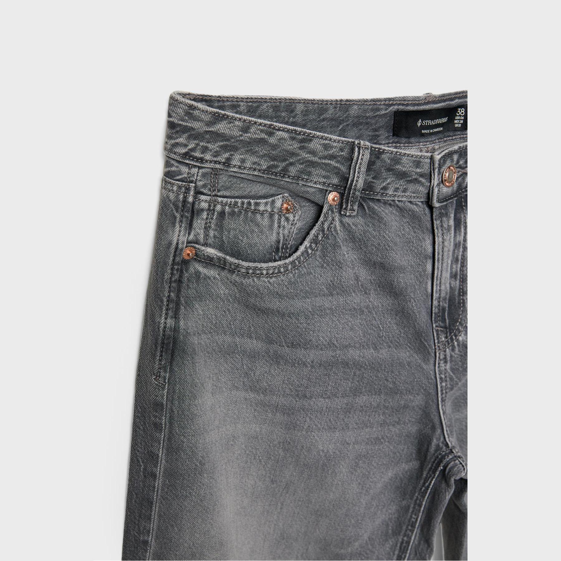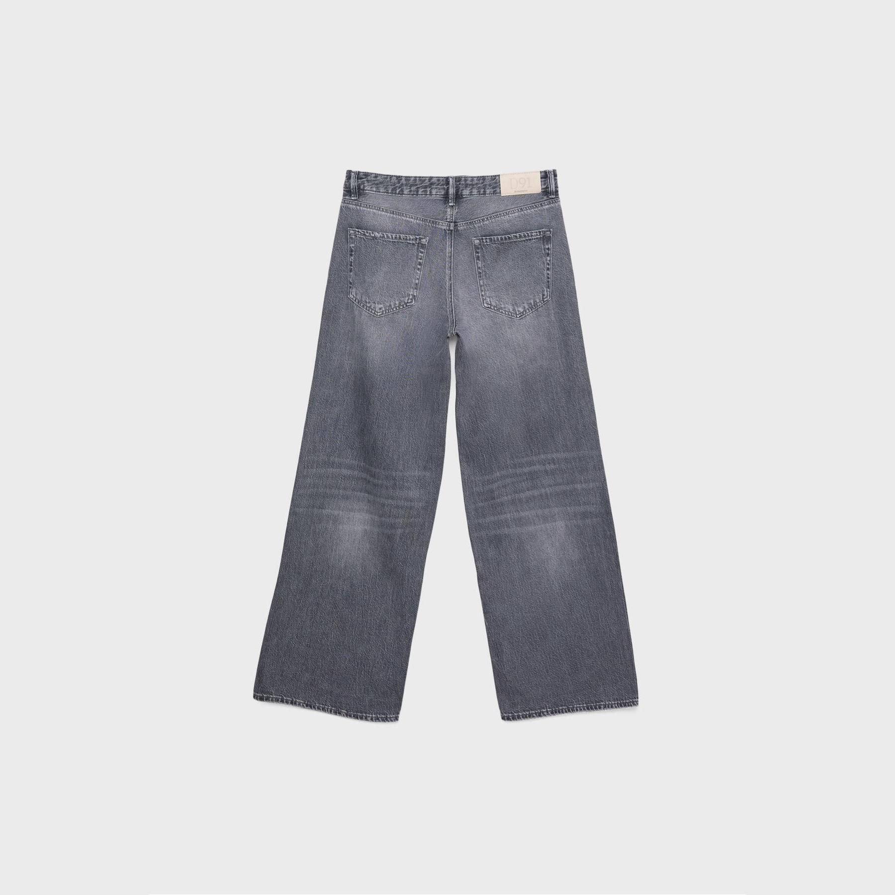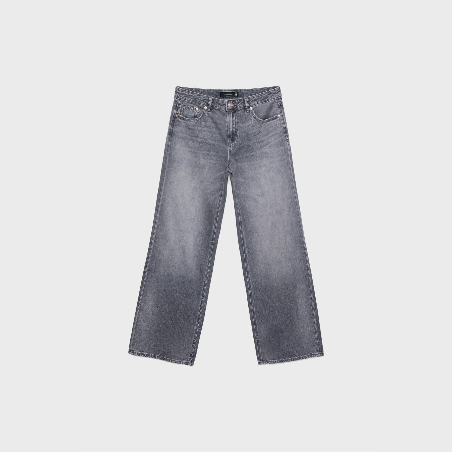 بنطال جينز D91 بقصة مستقيمة واسعة وخصر منخفض – رمادي مغسول من Stradivarius