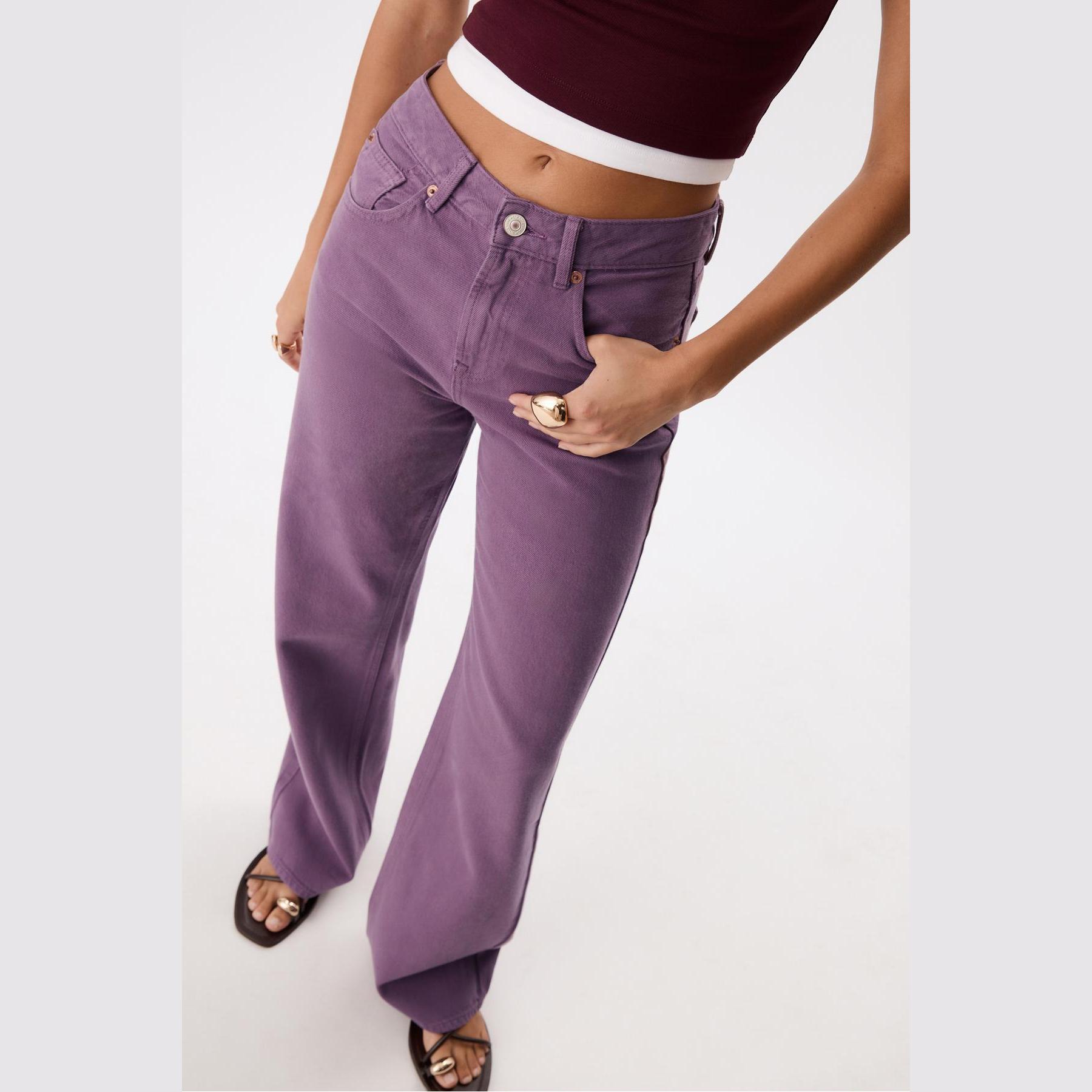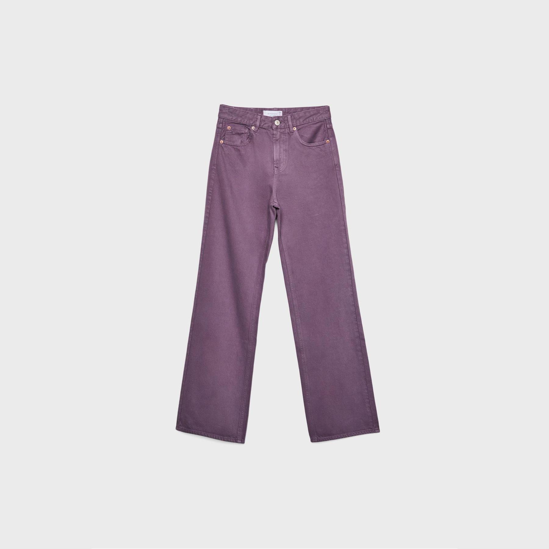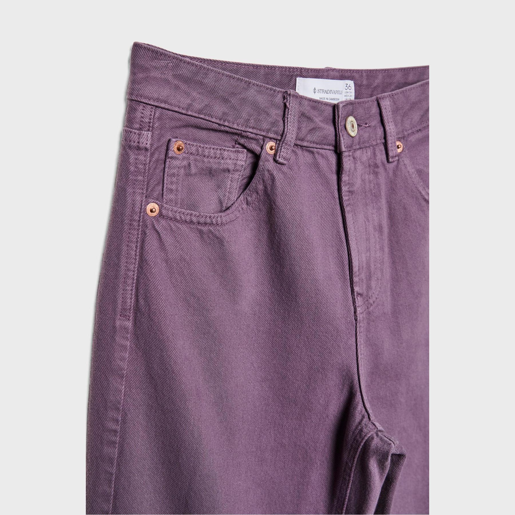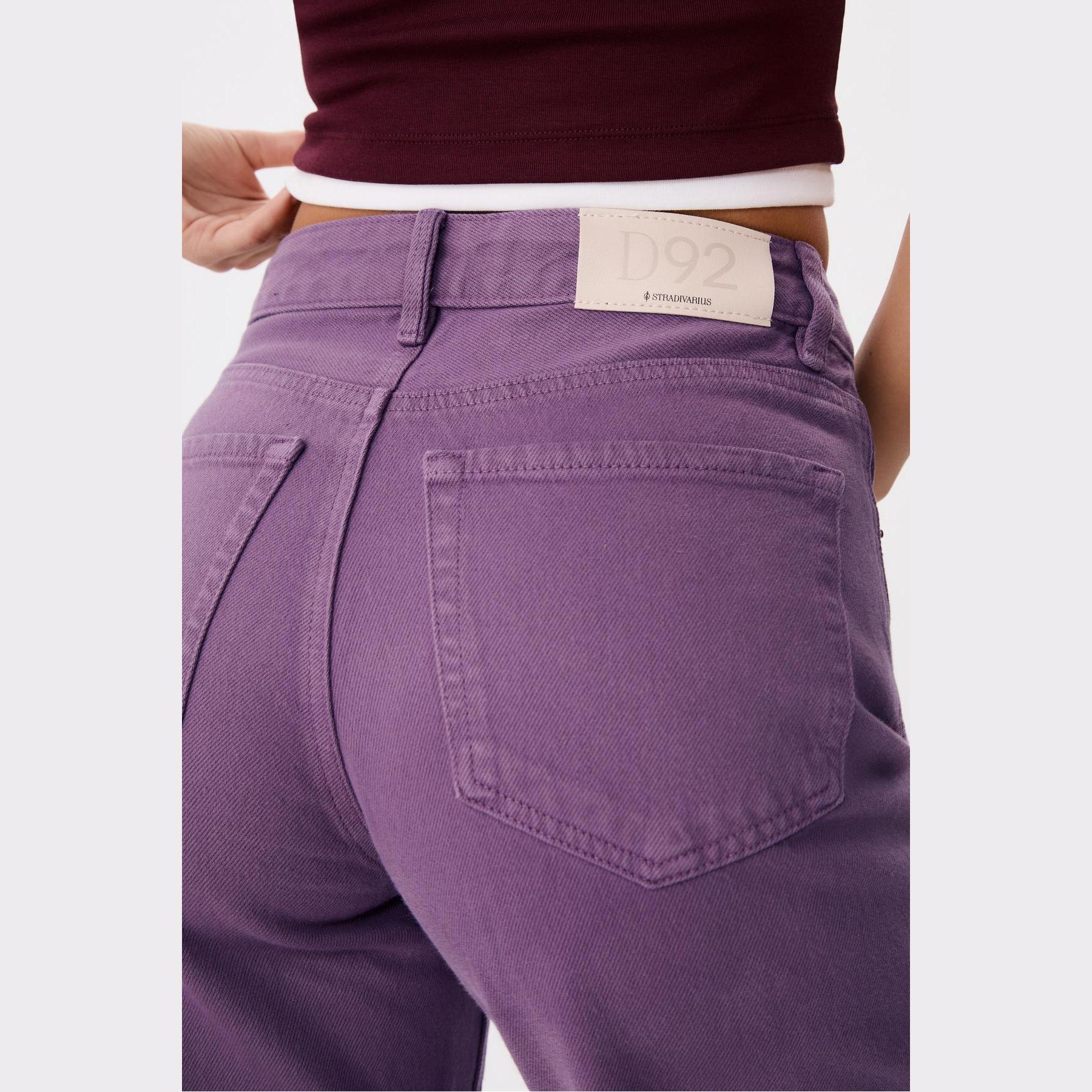 بنطال جينز D92 بقصة مستقيمة واسعة وخصر عادي – بنفسجي مغسول من Stradivarius
