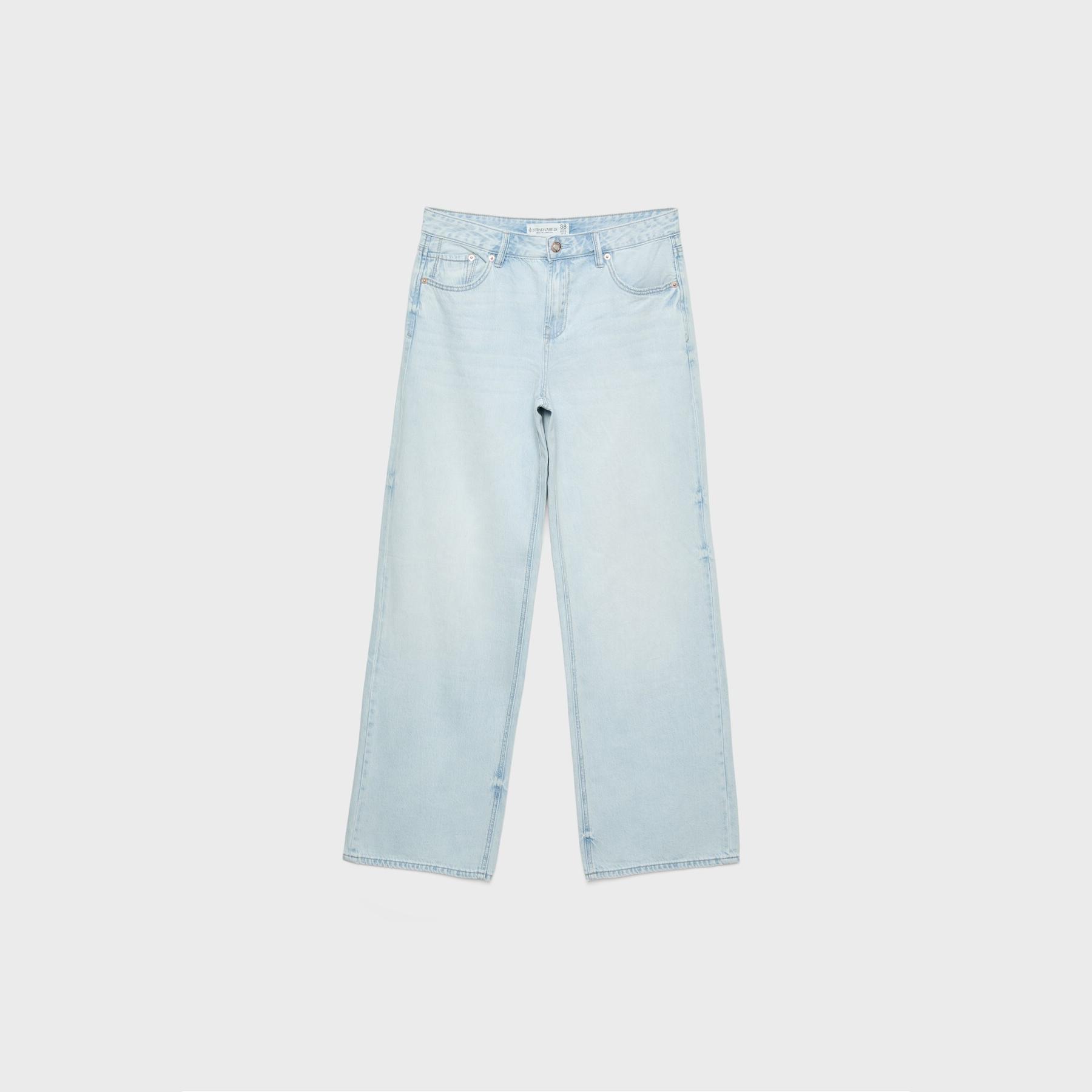 بنطال جينز D91 بقصة مستقيمة واسعة وخصر منخفض – أزرق فاتح من Stradivarius