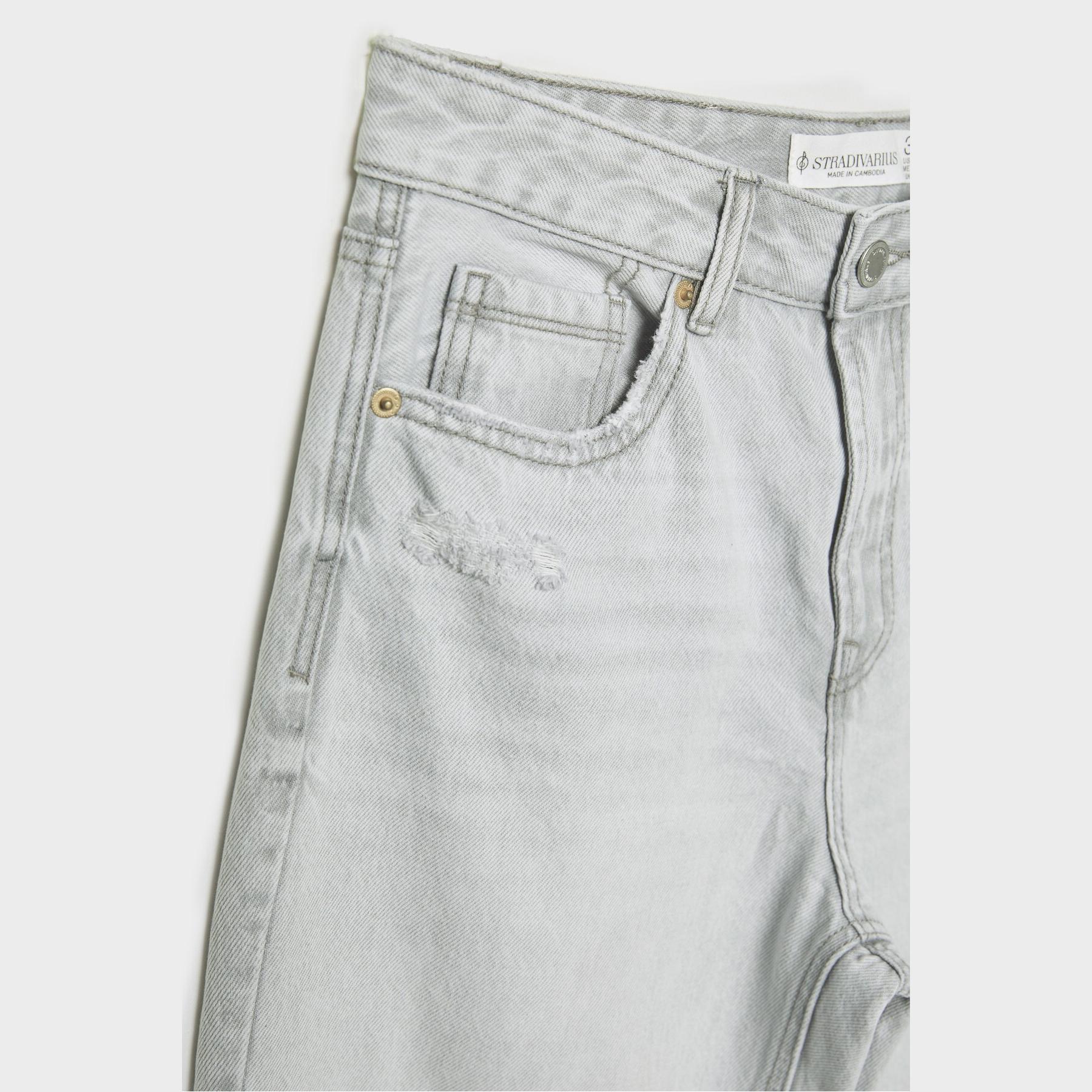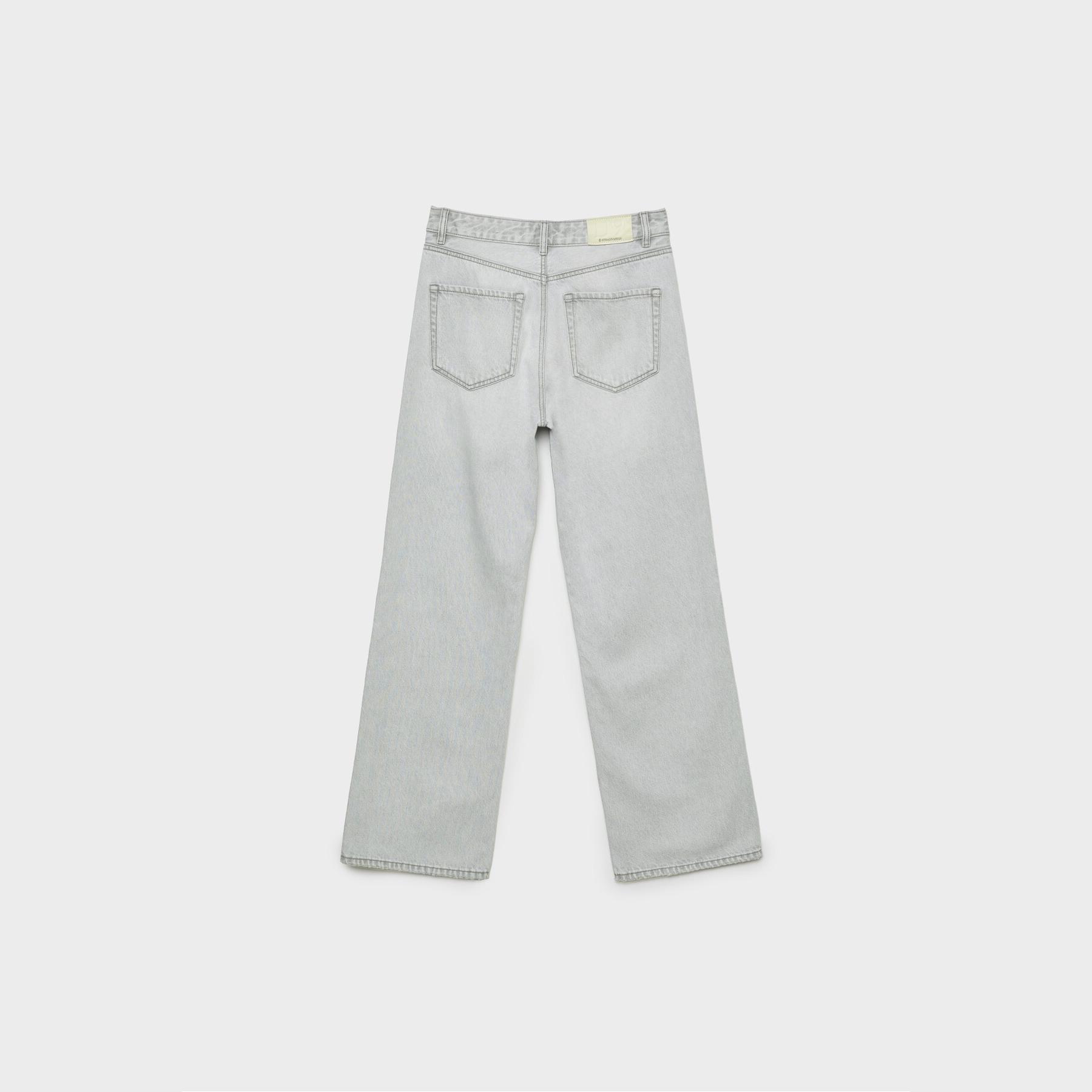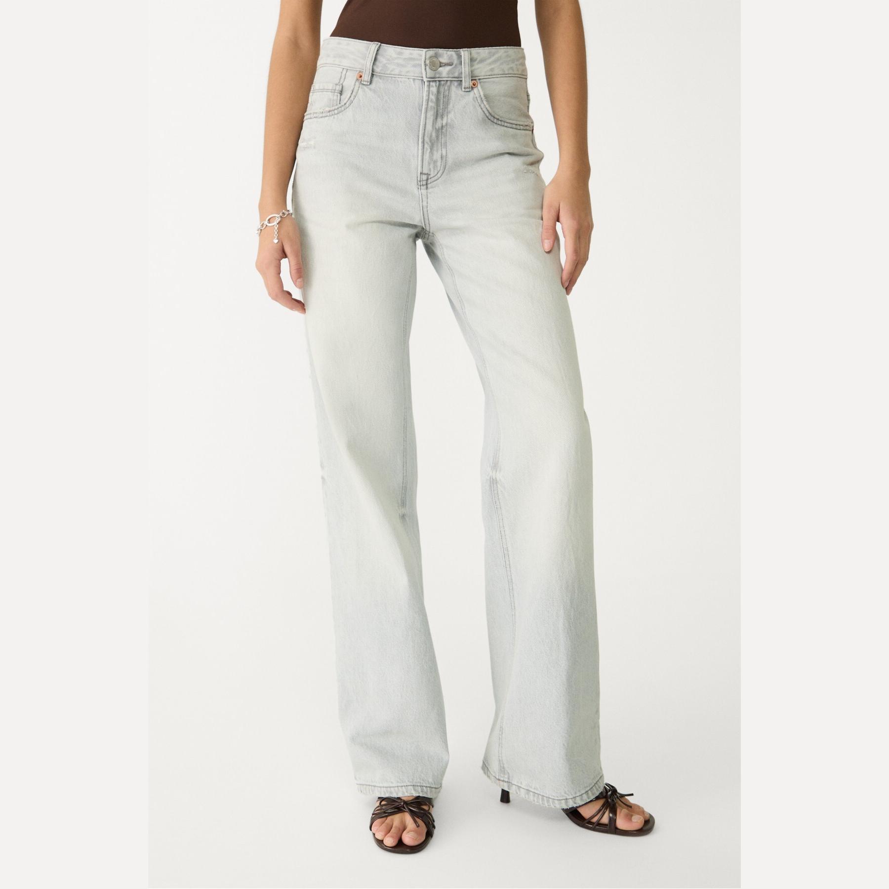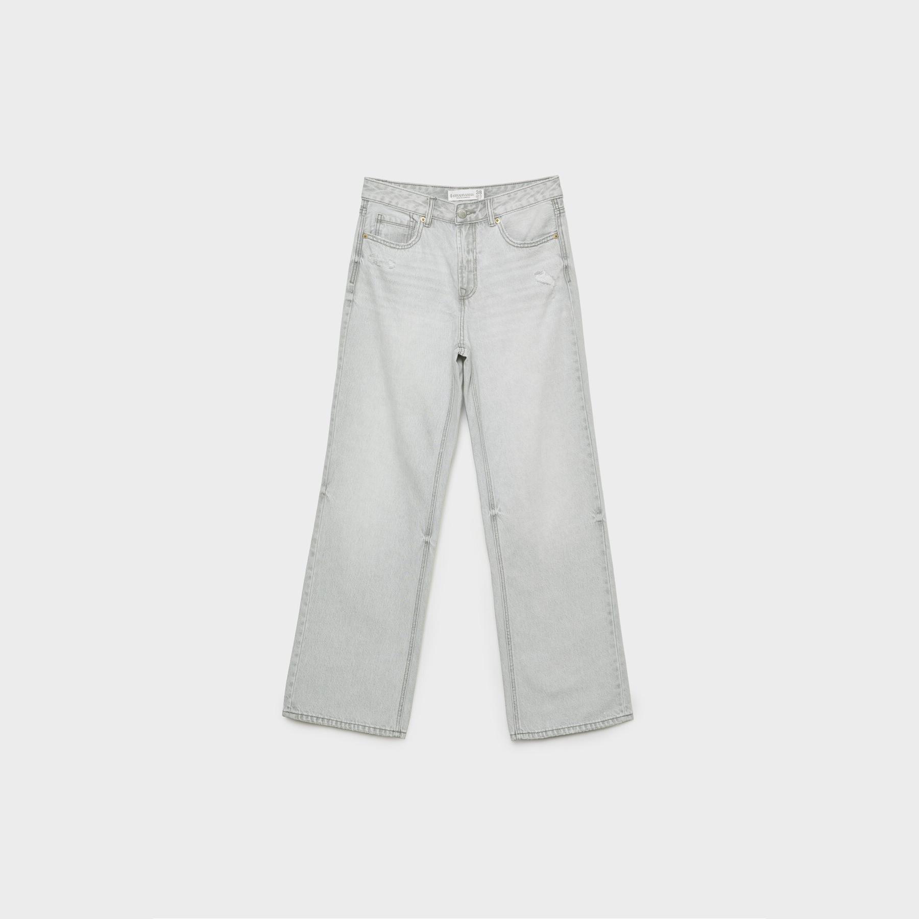 بنطال جينز D92 بقصة مستقيمة واسعة وخصر عادي – رمادي مغسول من Stradivarius