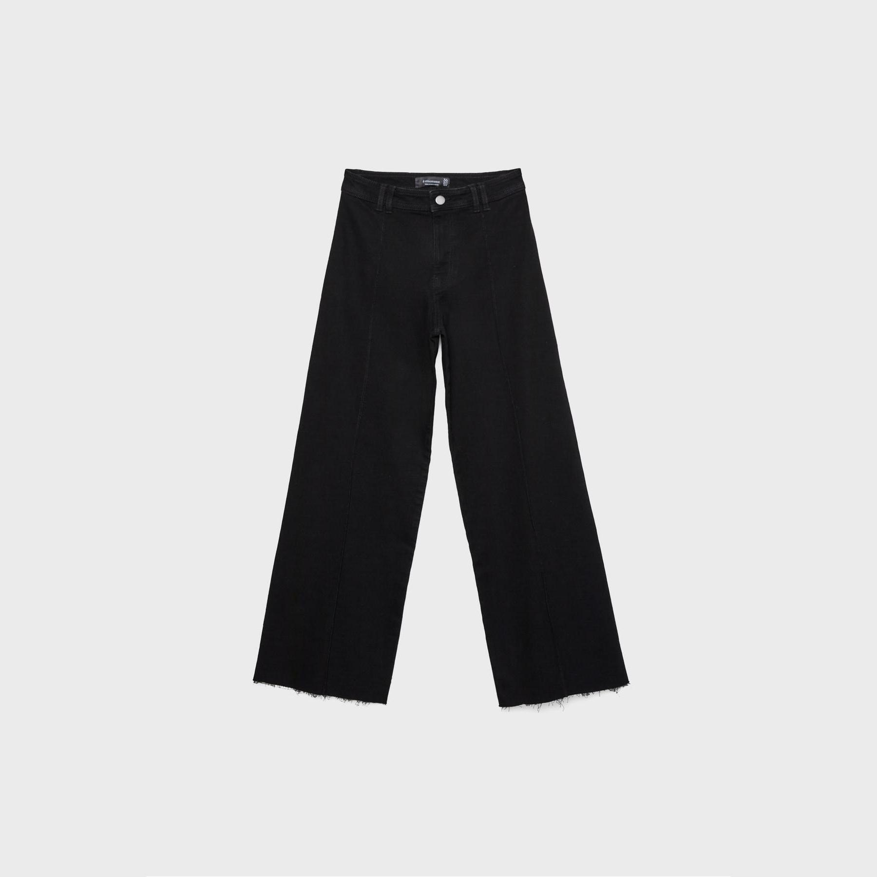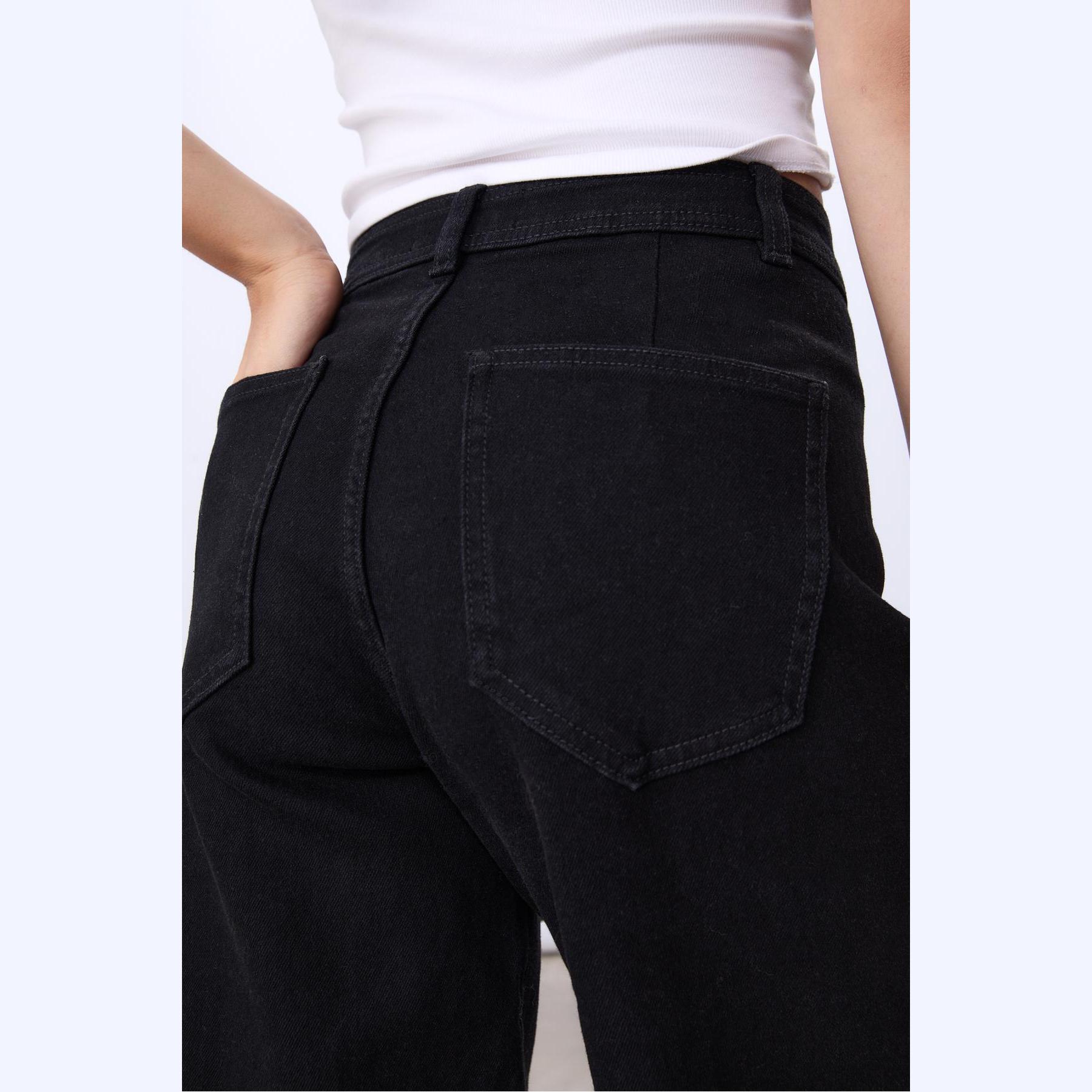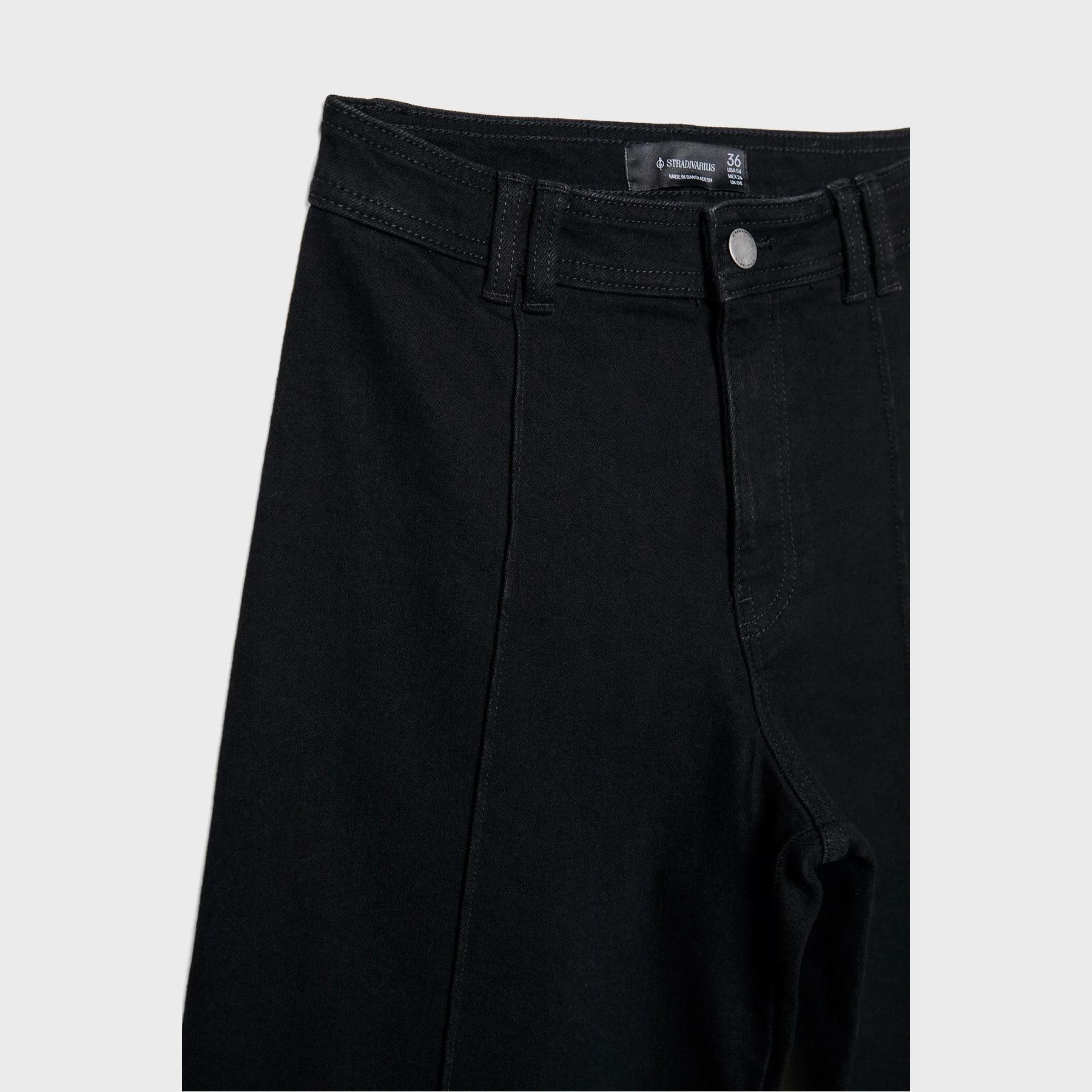 بنطال جينز D63 بقصة واسعة مع خصر عادي ودُرز أمامي – اسود من Stradivarius