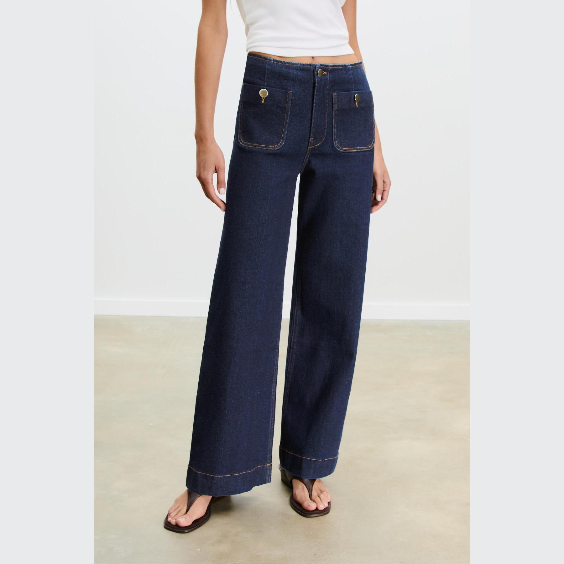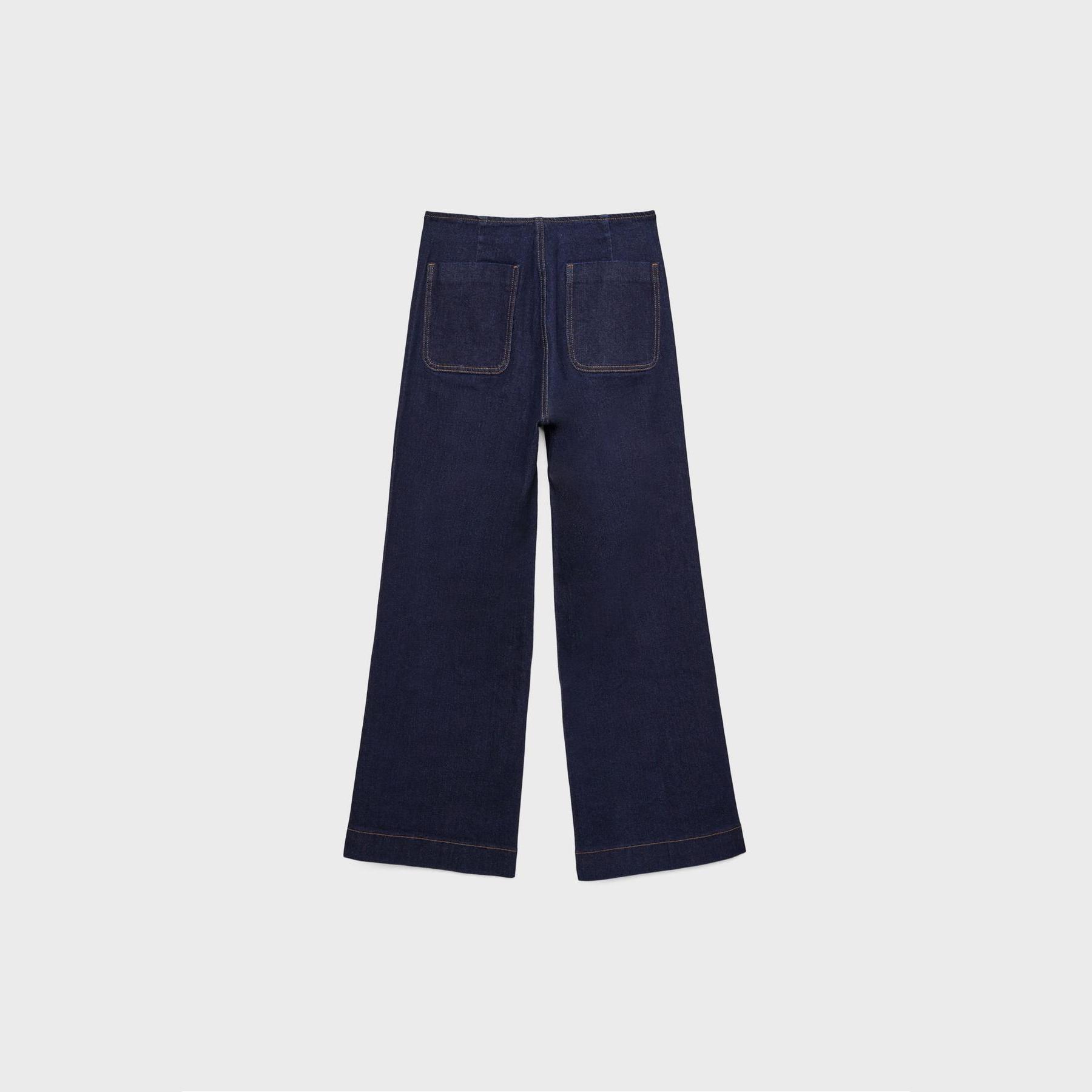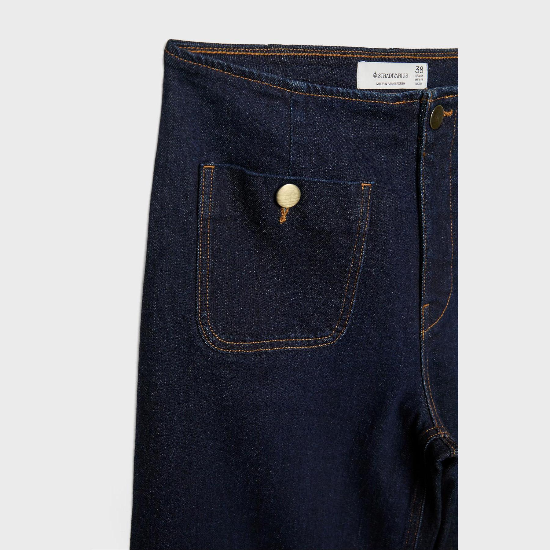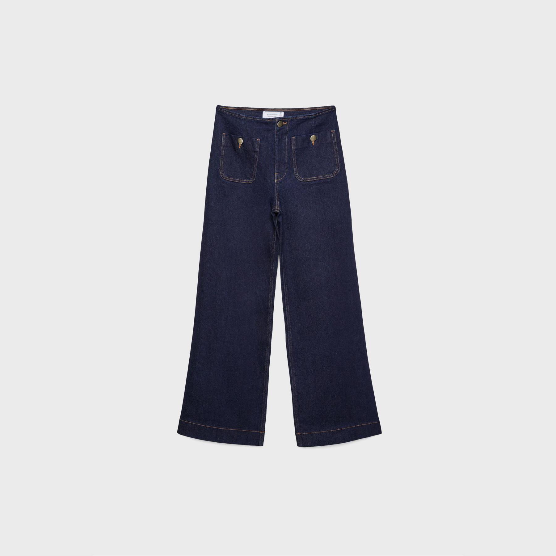 بنطال جينز D77 بقصة واسعة Minimal بخصر عالي وجيوب أمامية – كحلي مغسول من Stradivarius