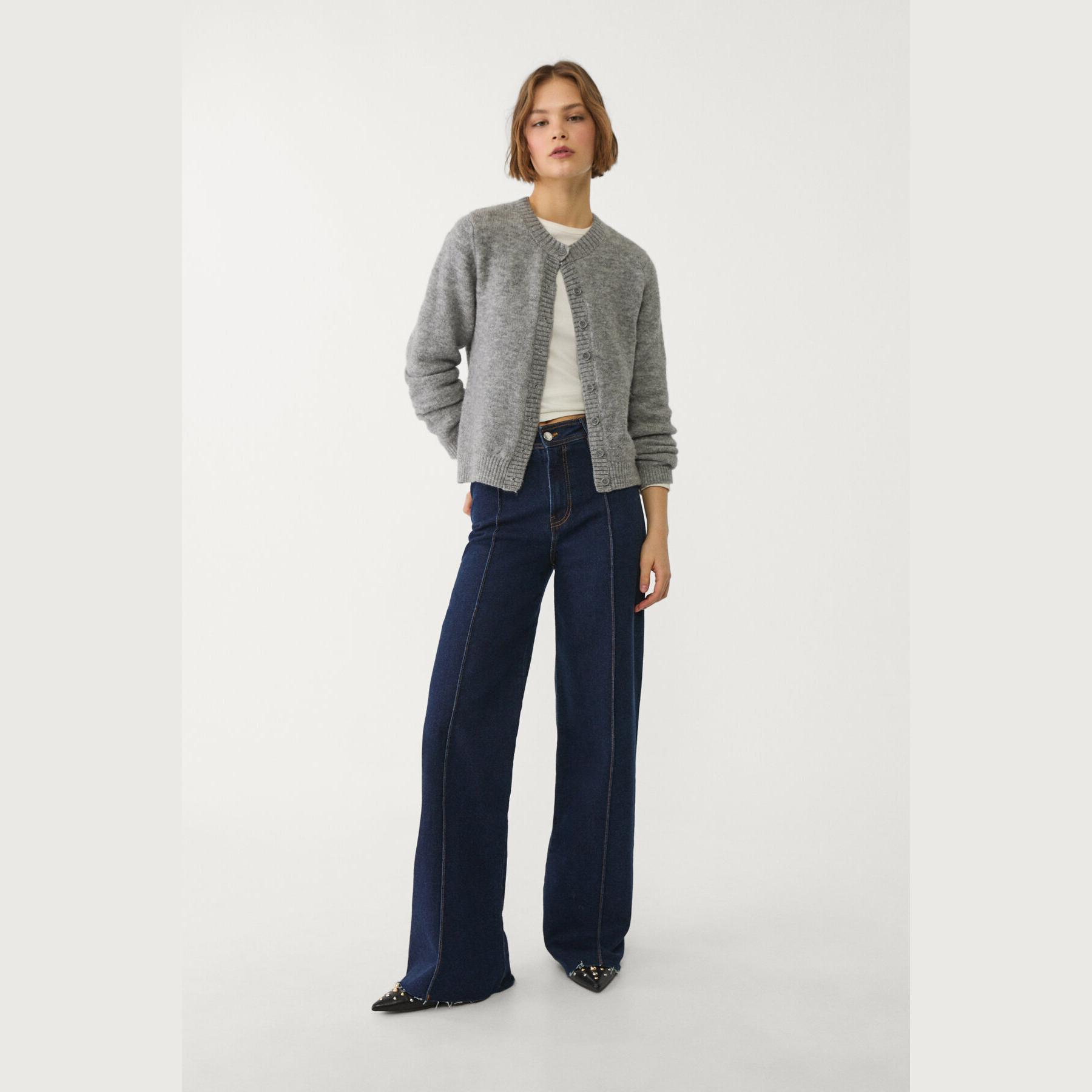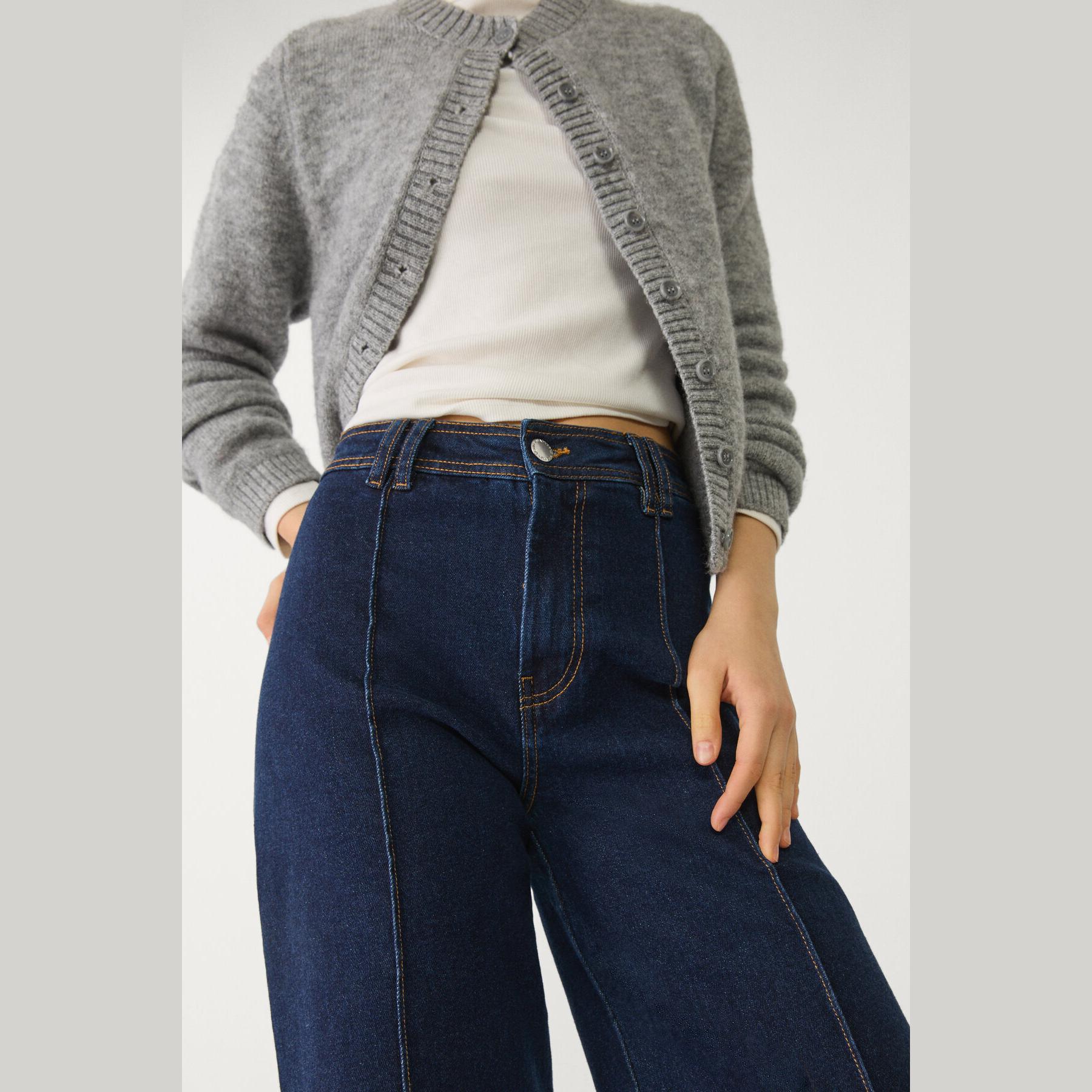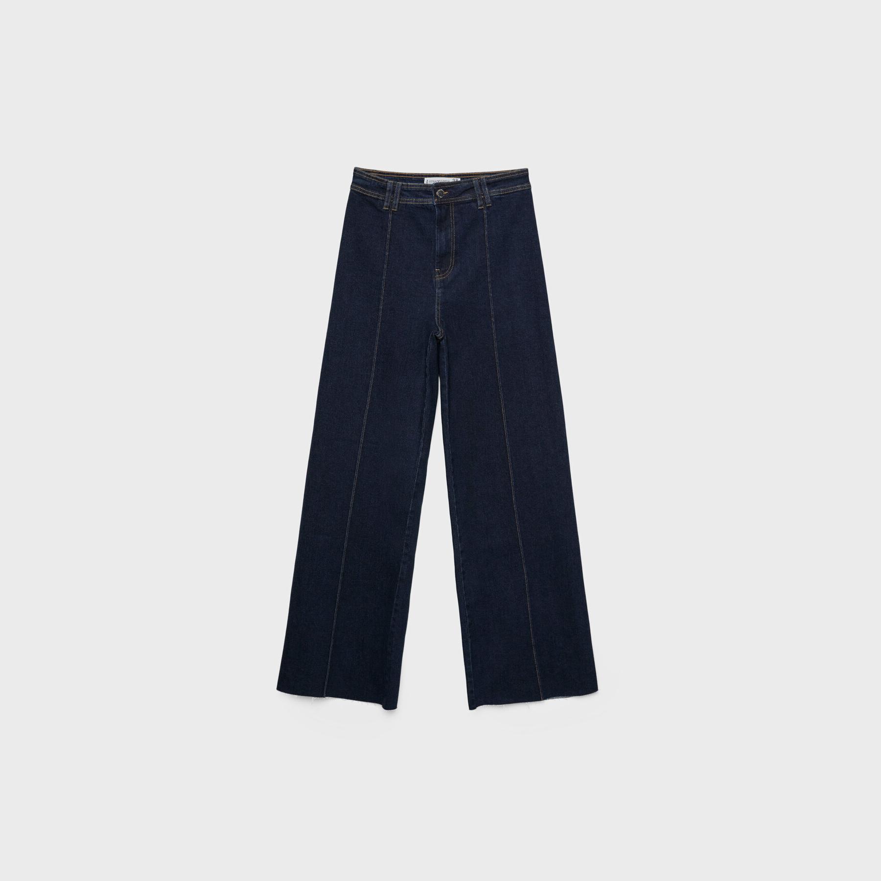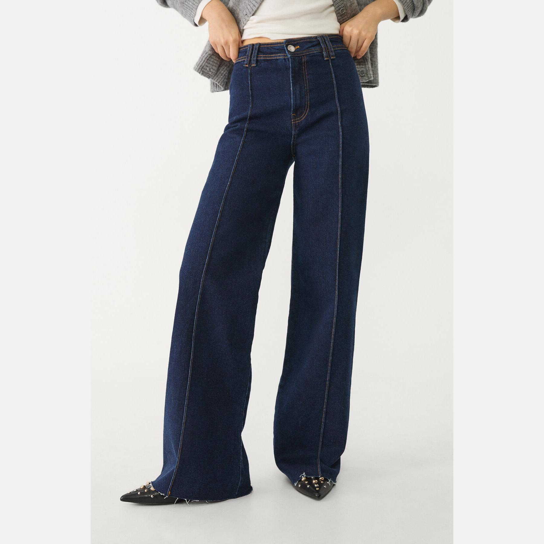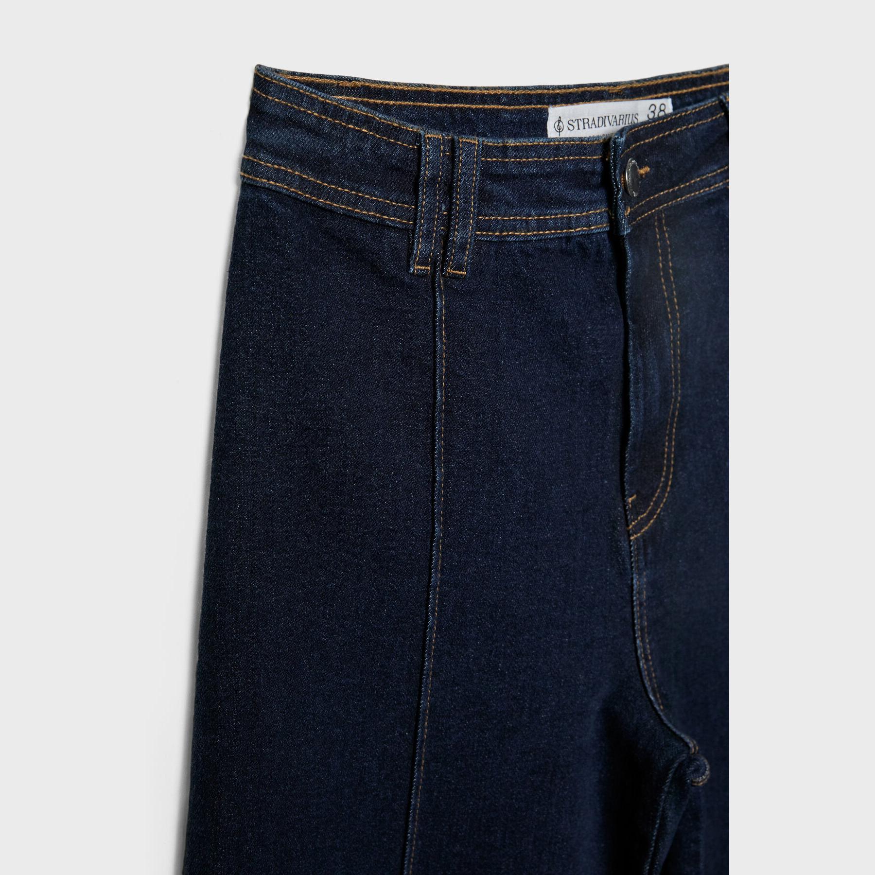 بنطال جينز Minimal بتفاصيل دُرز أمامي وخصر عالي – أزرق مغسول من Stradivarius