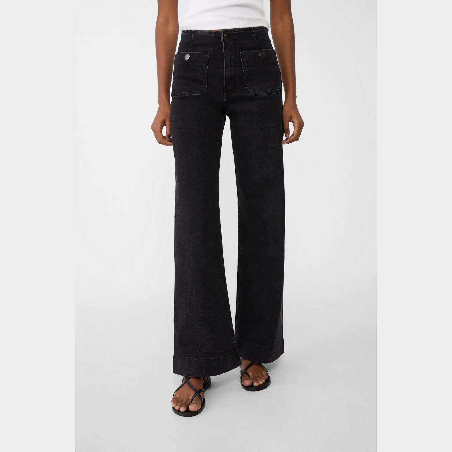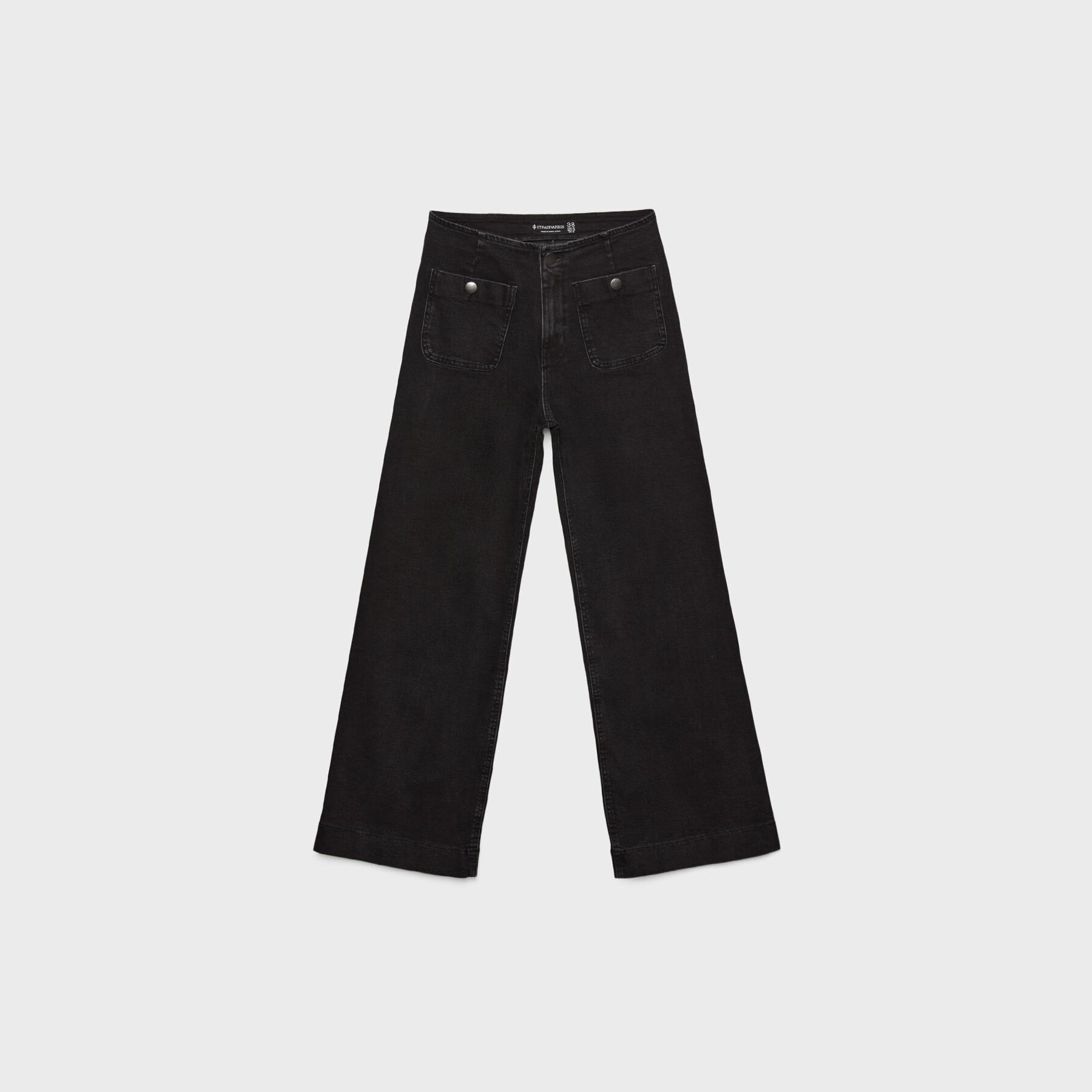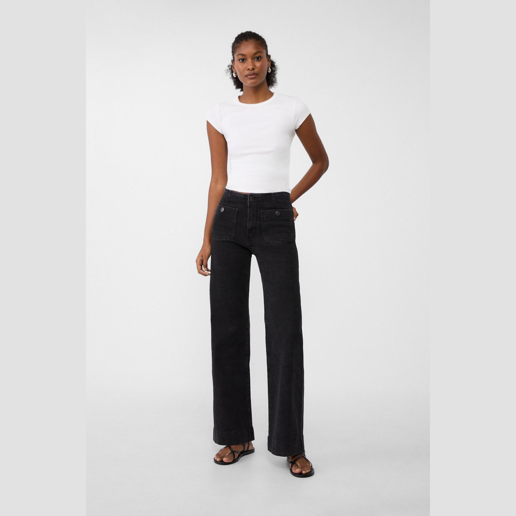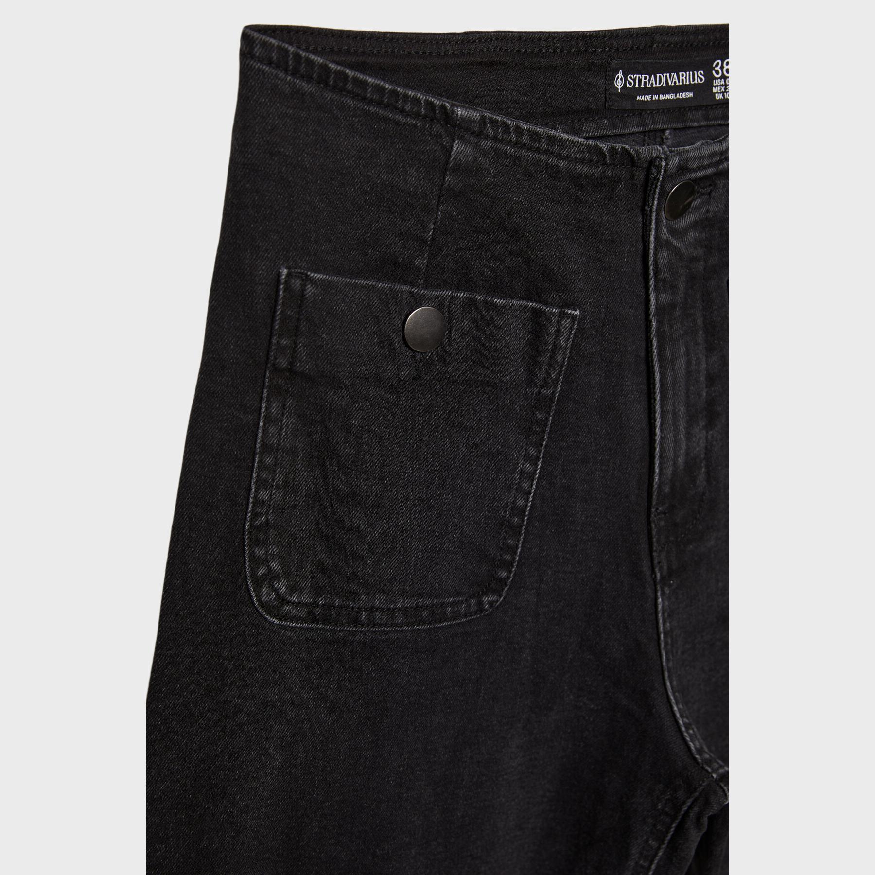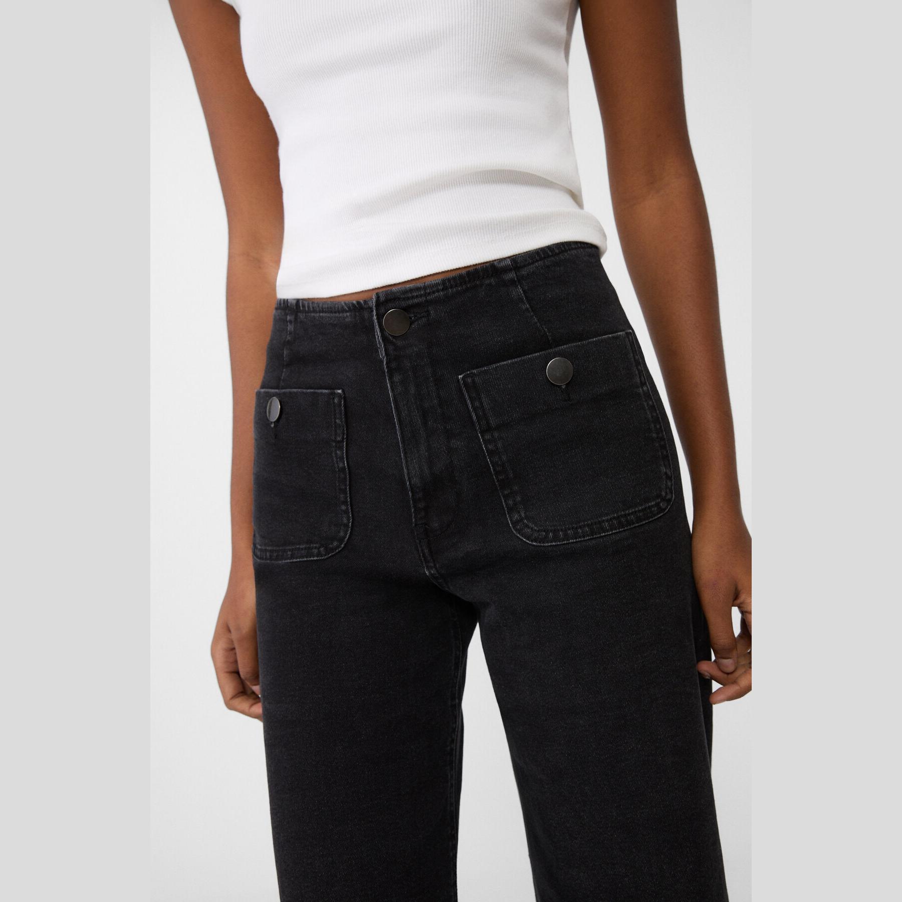 بنطال جينز Minimal بخصر عالي وقصة إسبانيول – أسود مغسول من Stradivarius