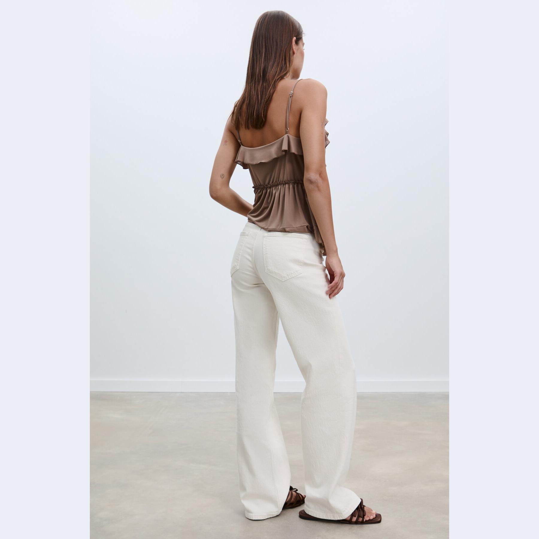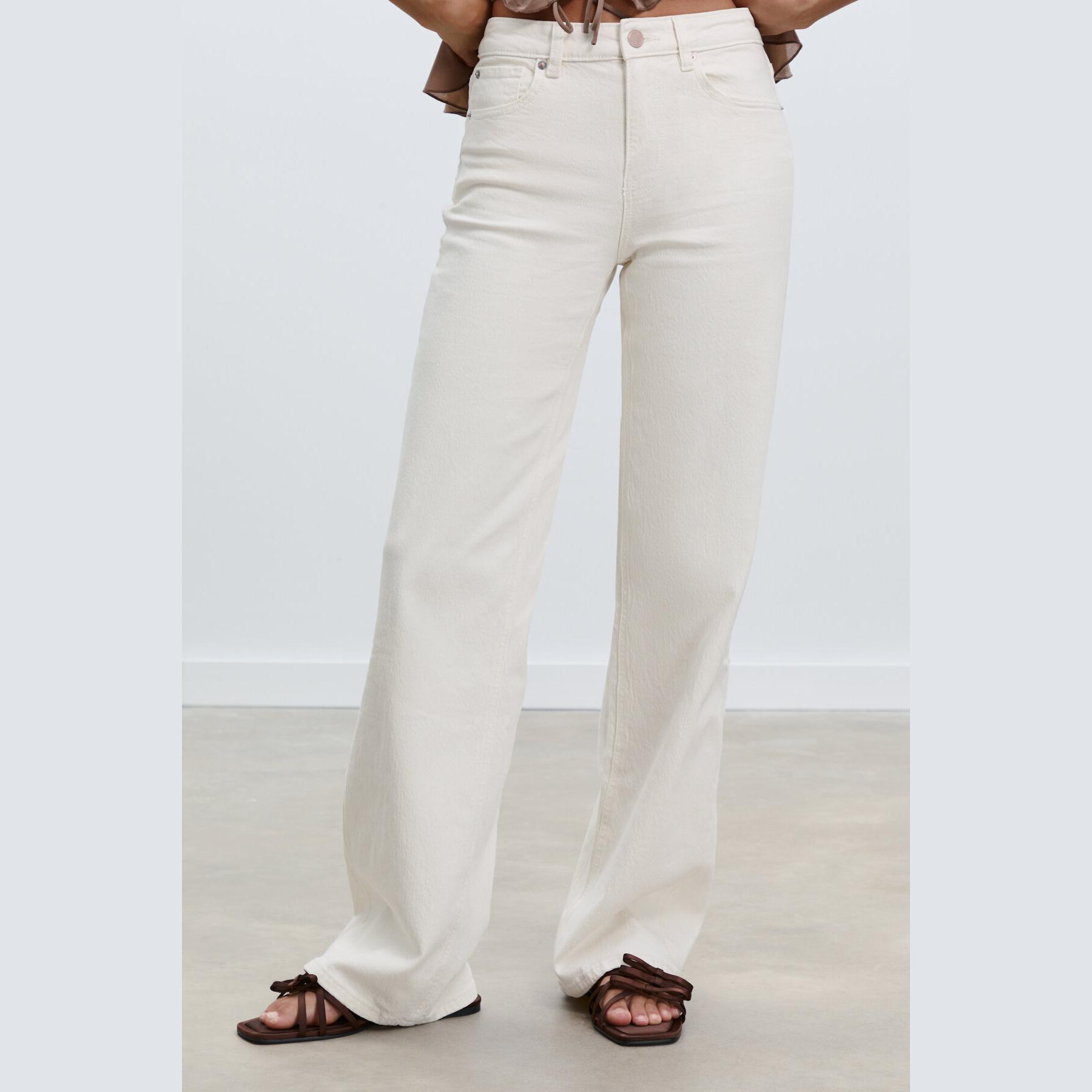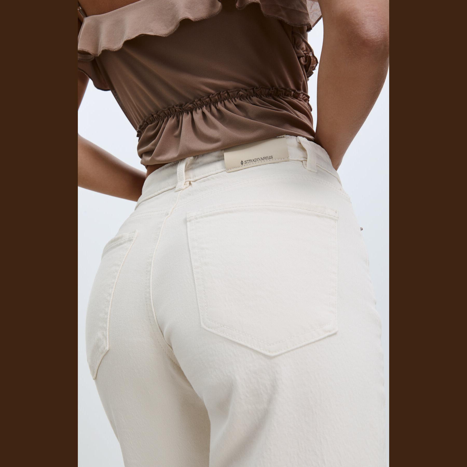 بنطال جينز بقصة مستقيمة مريحة وخصر عادي – إكرُو من Stradivarius