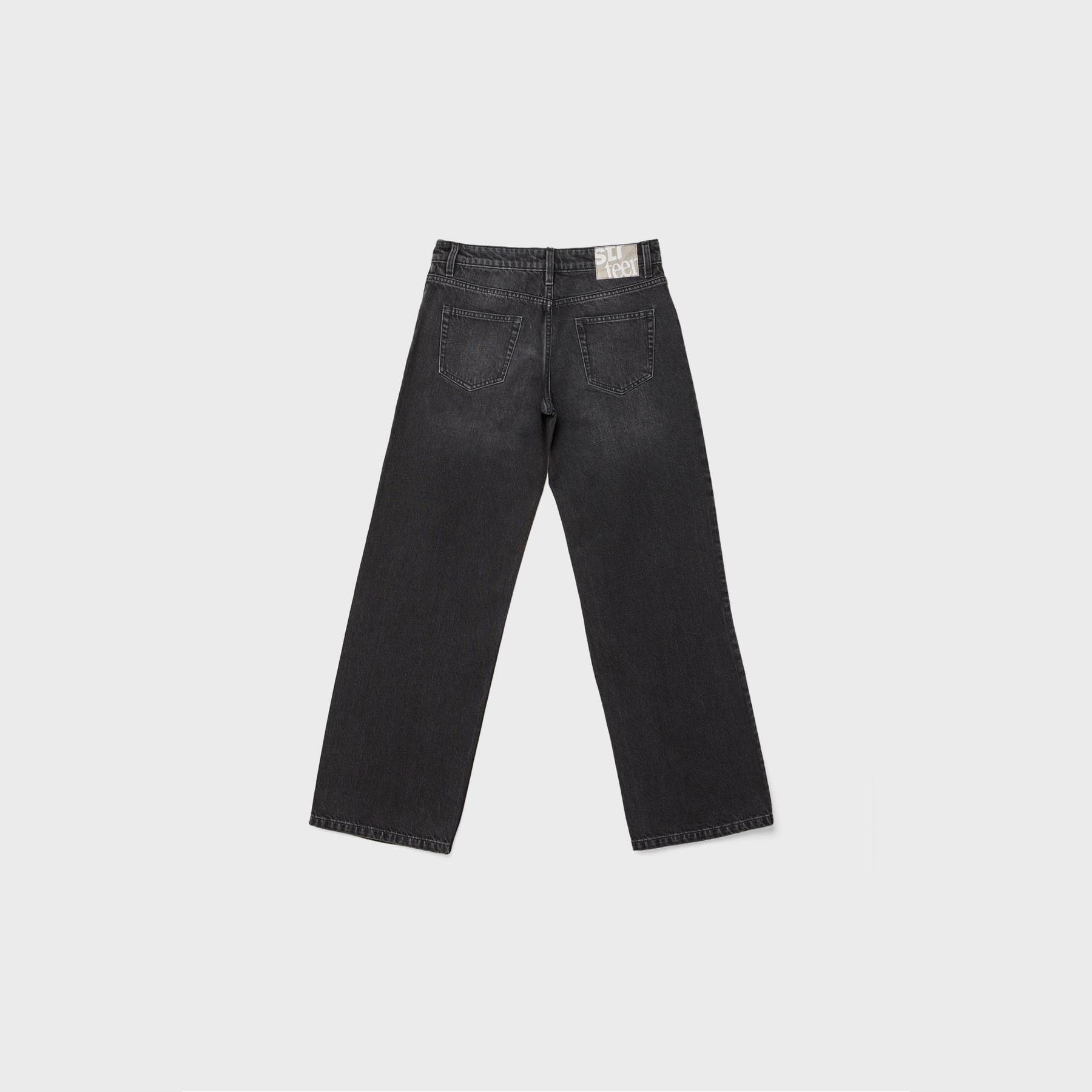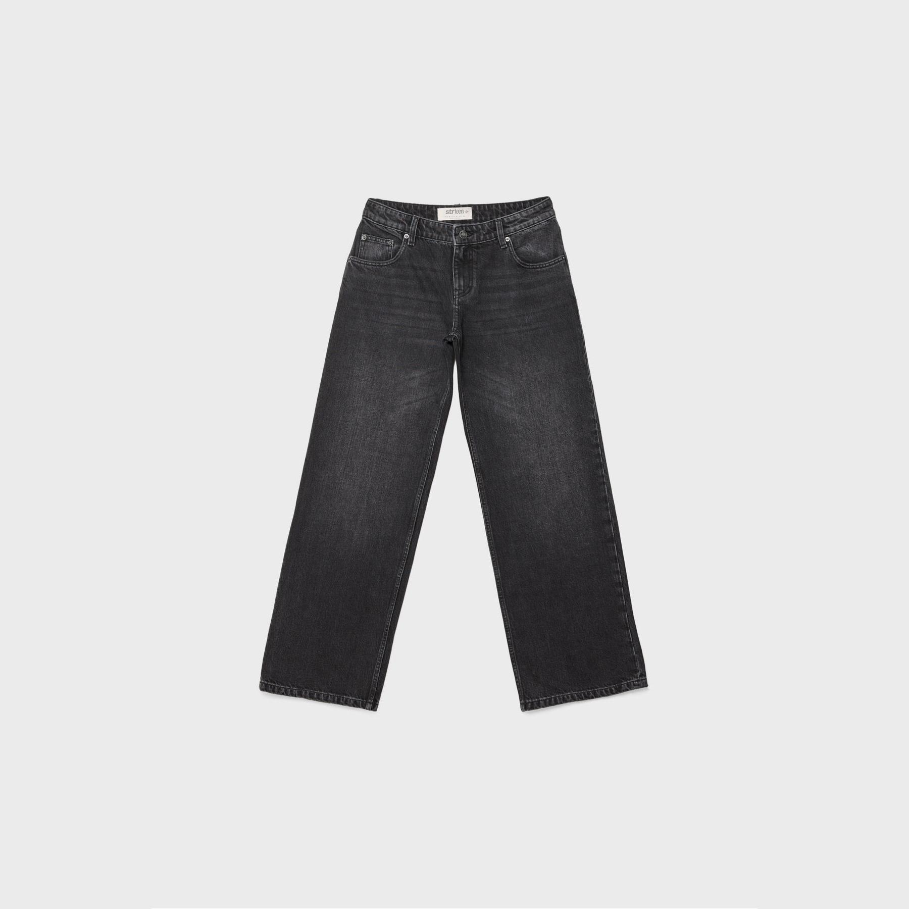 بنطال جينز Baggy بخصر متوسط وقصة فضفاضة – أسود باهت من Stradivarius