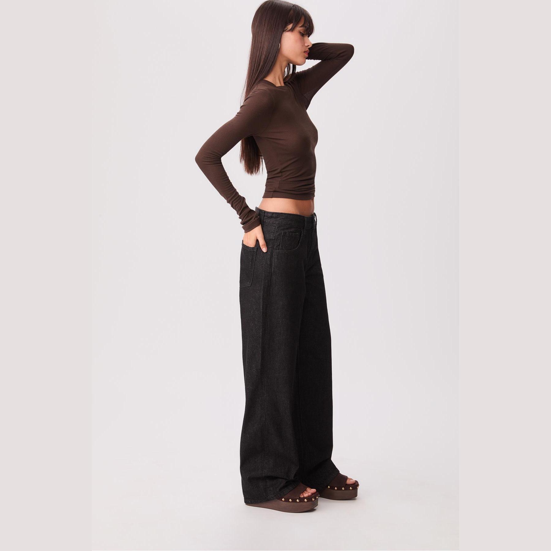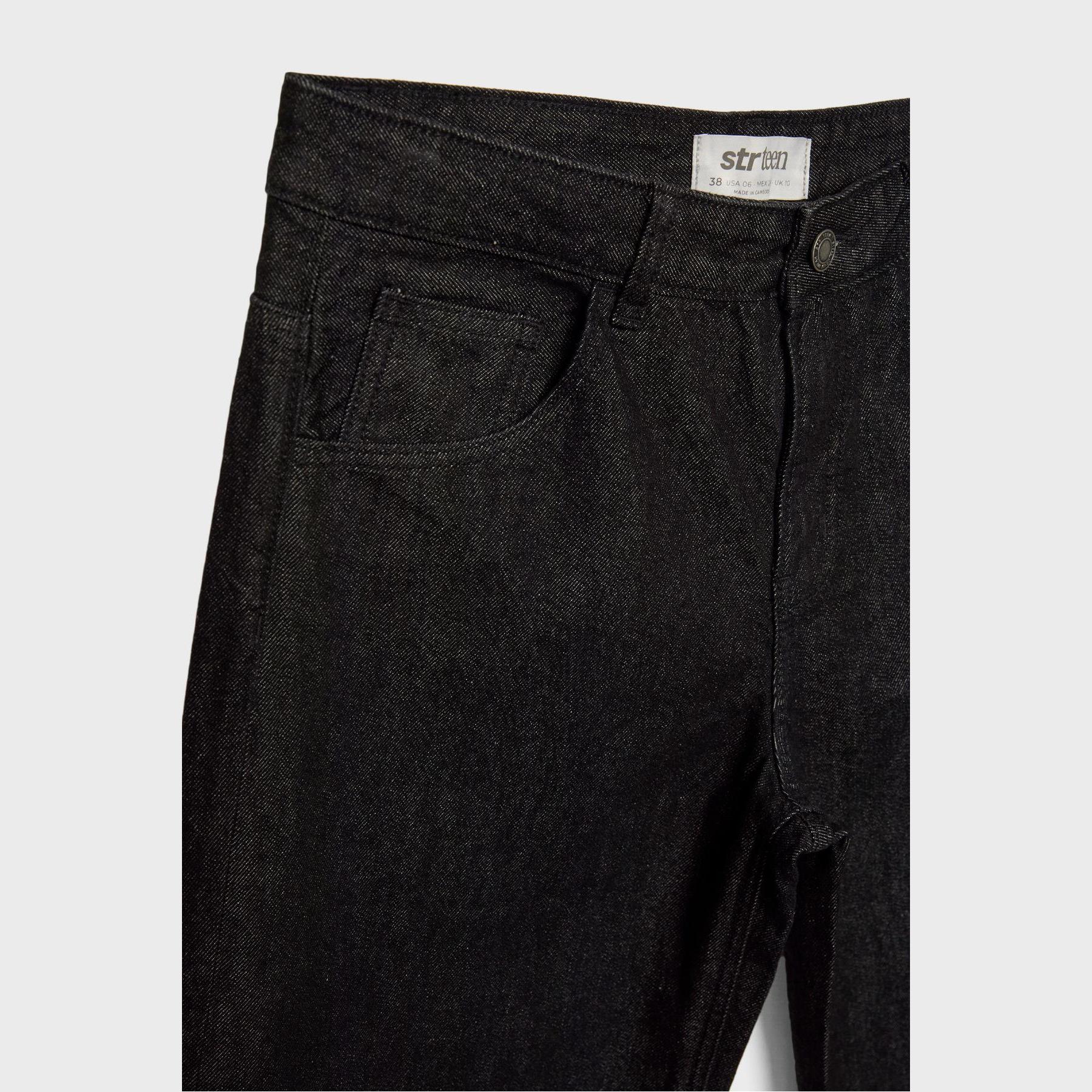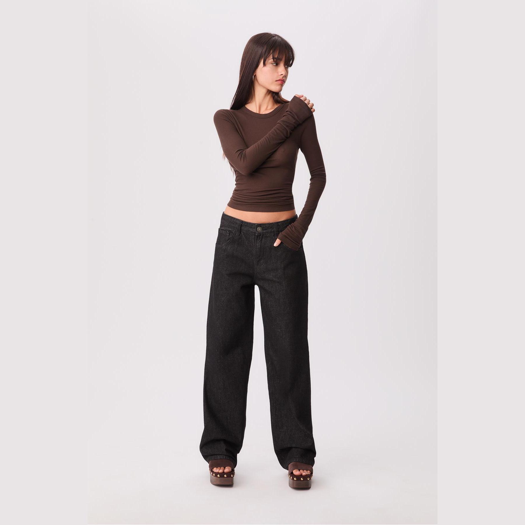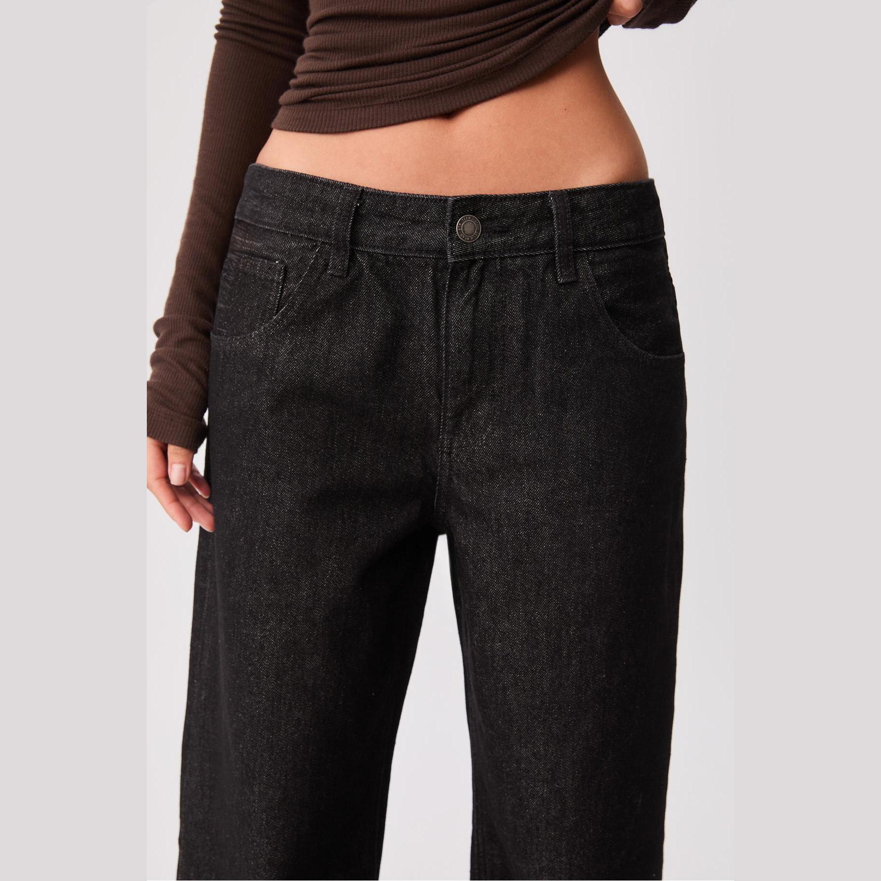بنطال جينز أنيق من Stradivarius بلون رمادي مغسول، مصنوع من خامة قطنية 100% بدون مطاط، يتميز بقصة Baggy واسعة الساق وخصر عادي، مزود بإغلاق أمامي بسحاب وزر معدني، تصميم بخمسة جيوب عملية (أمامية + خلفية)، حلقات حزام، ويأتي مع حزام بنفس اللون، وأطراف مستقيمة بطول قياسي، مثالي للتنسيق مع توبات قصيرة أو جاكيتات لإطلالة كاجوال مريحة وعصرية.