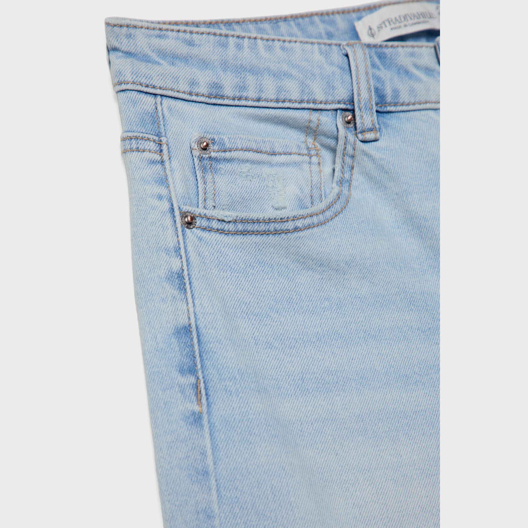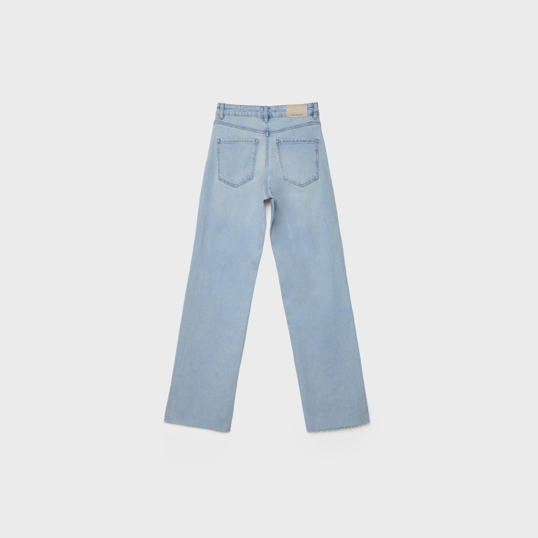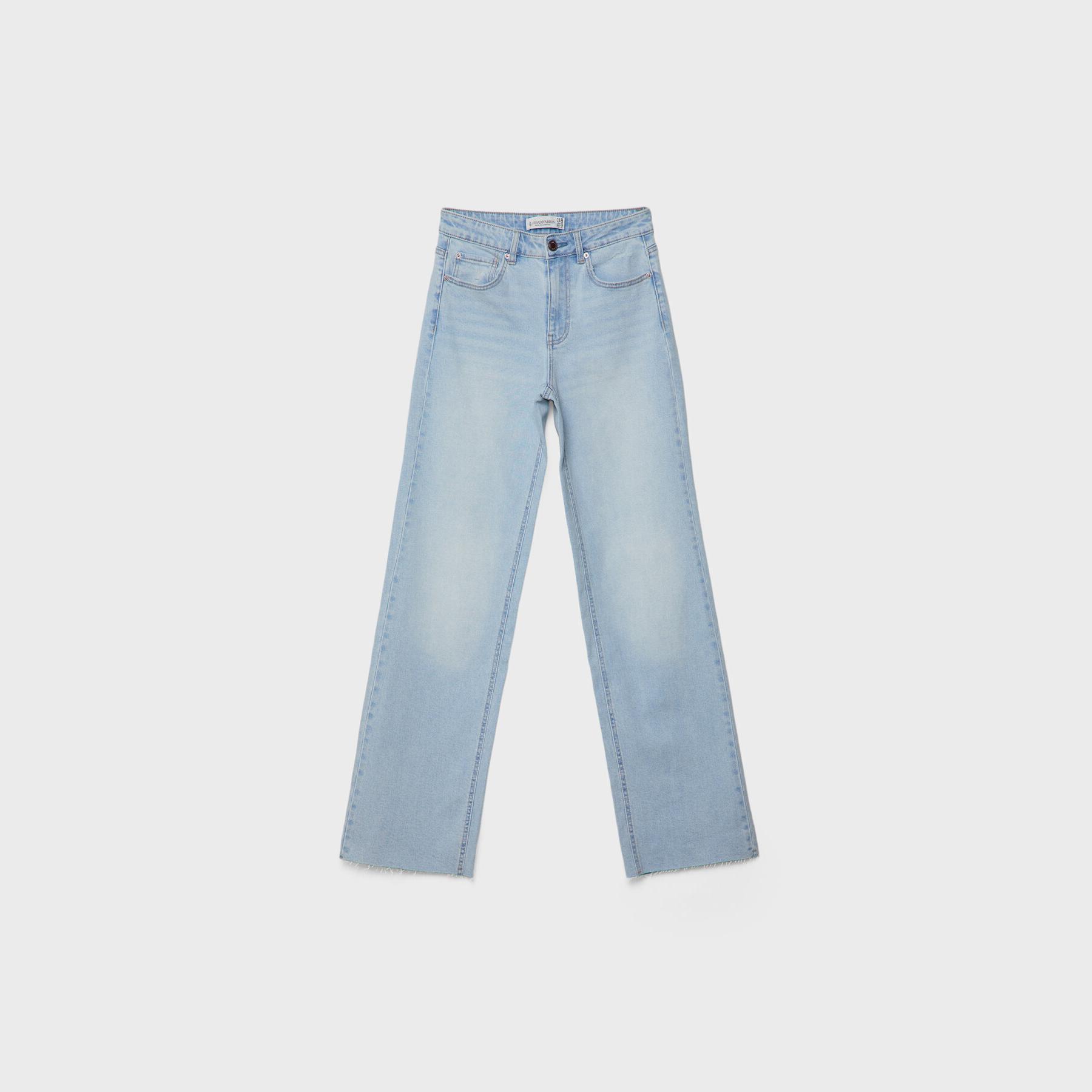 بنطال جينز بقصة مستقيمة مريحة وخصر عادي مع حزام – أزرق فاتح دنيم من Stradivarius