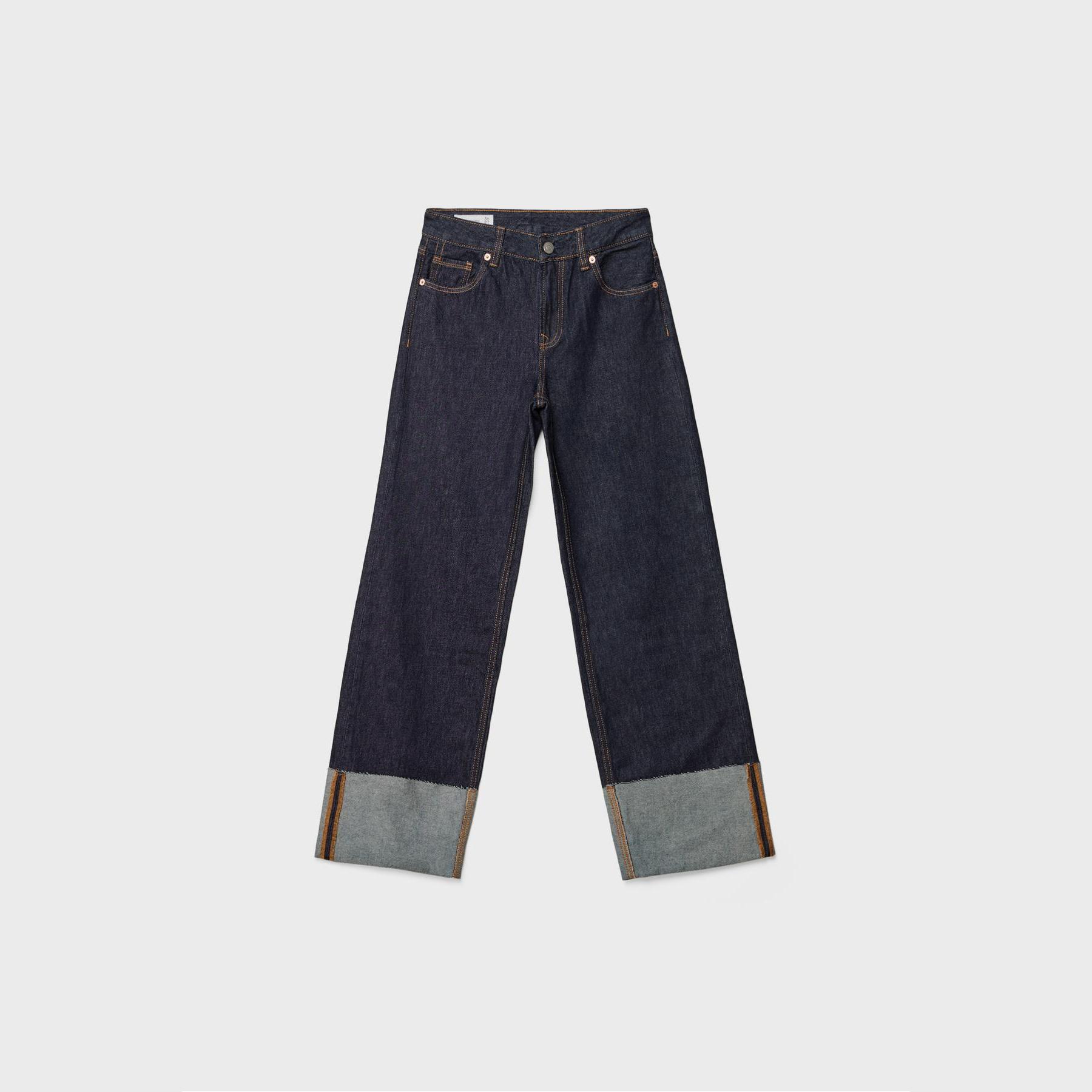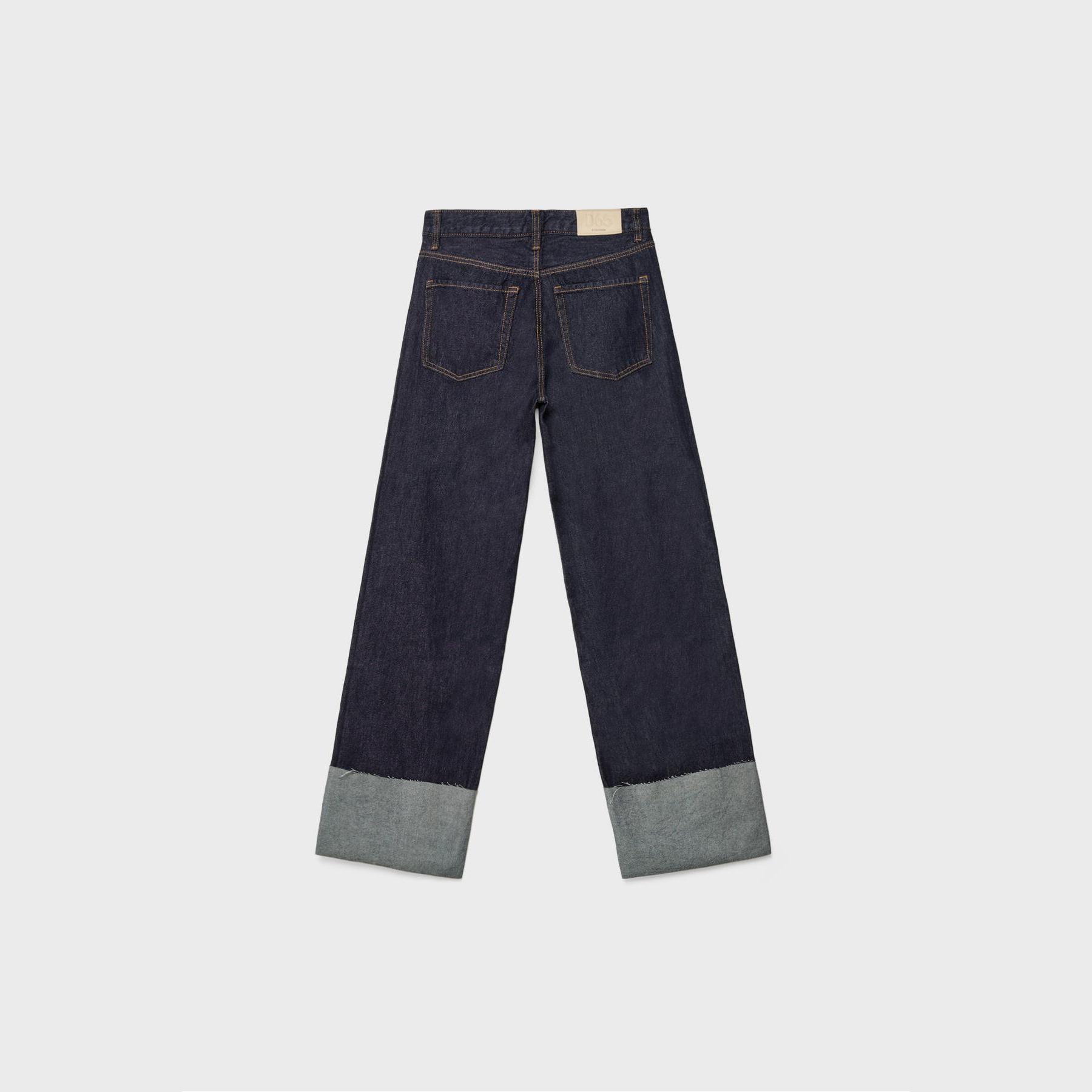 بنطال جينز D65 بقصة مستقيمة وأطراف كُسرات – كحلي داكن من Stradivarius
