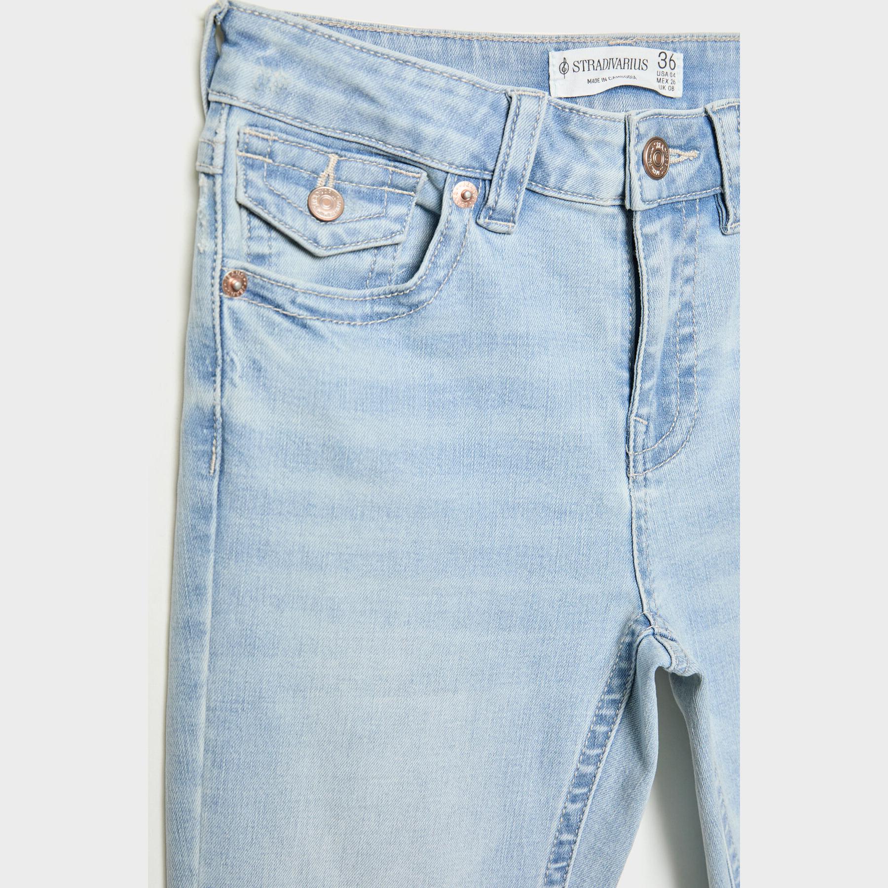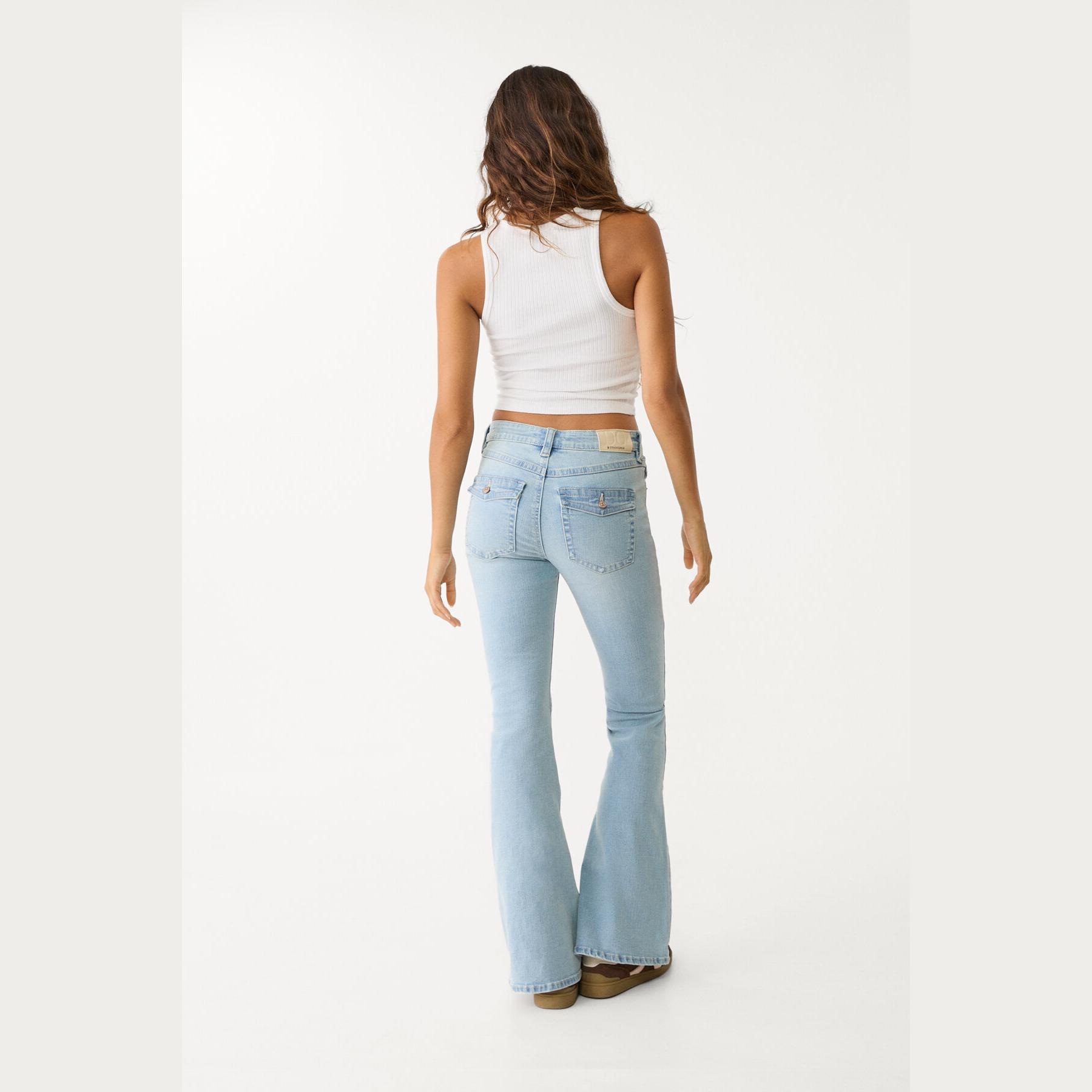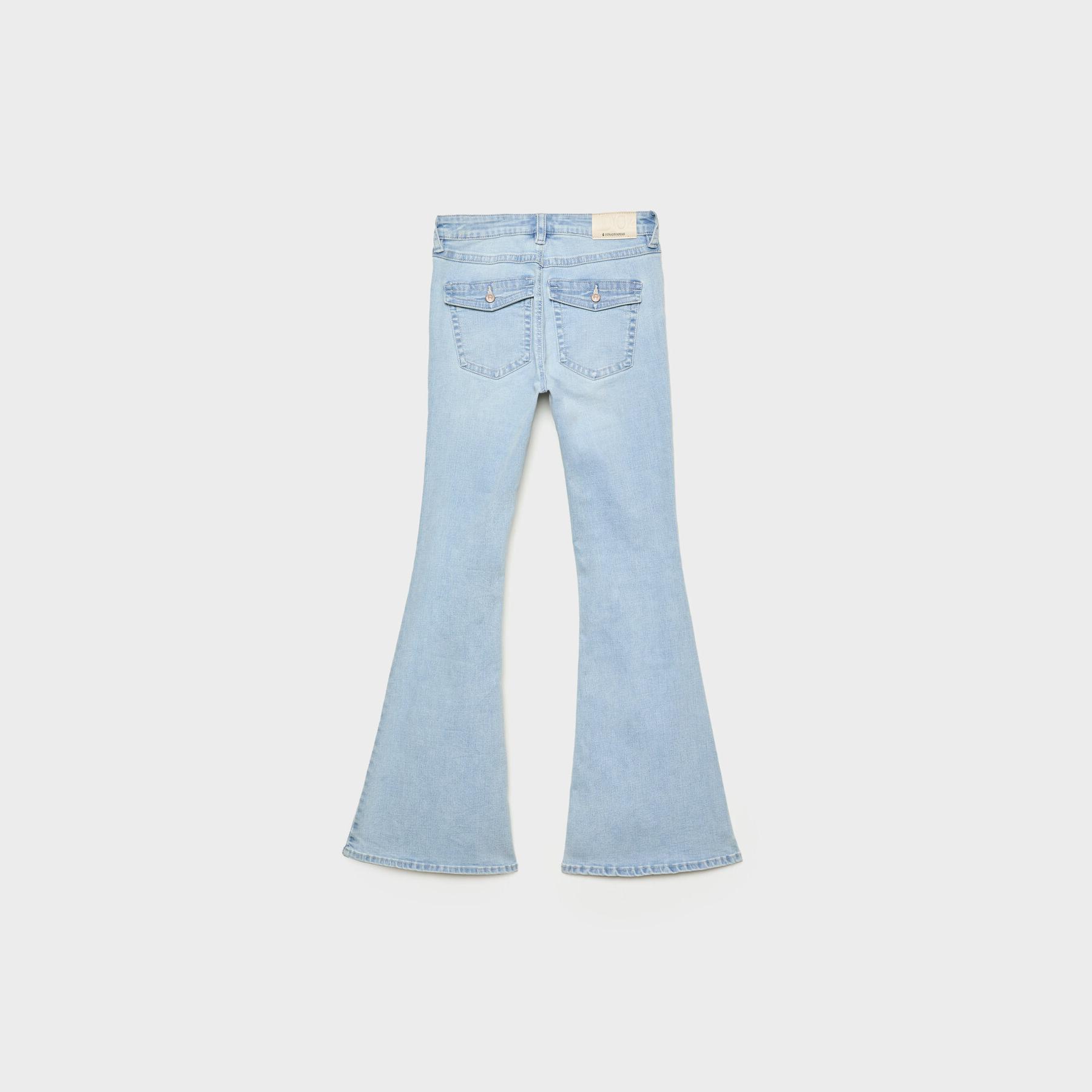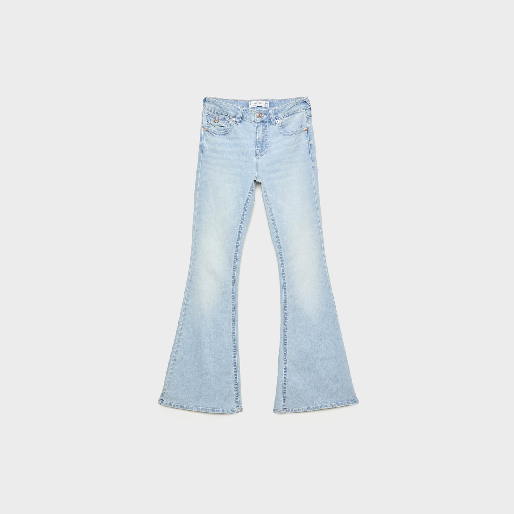 بنطال جينز D04 بقصة إسبانيول وخصر منخفض – دنيم مائل للرمادي من Stradivarius