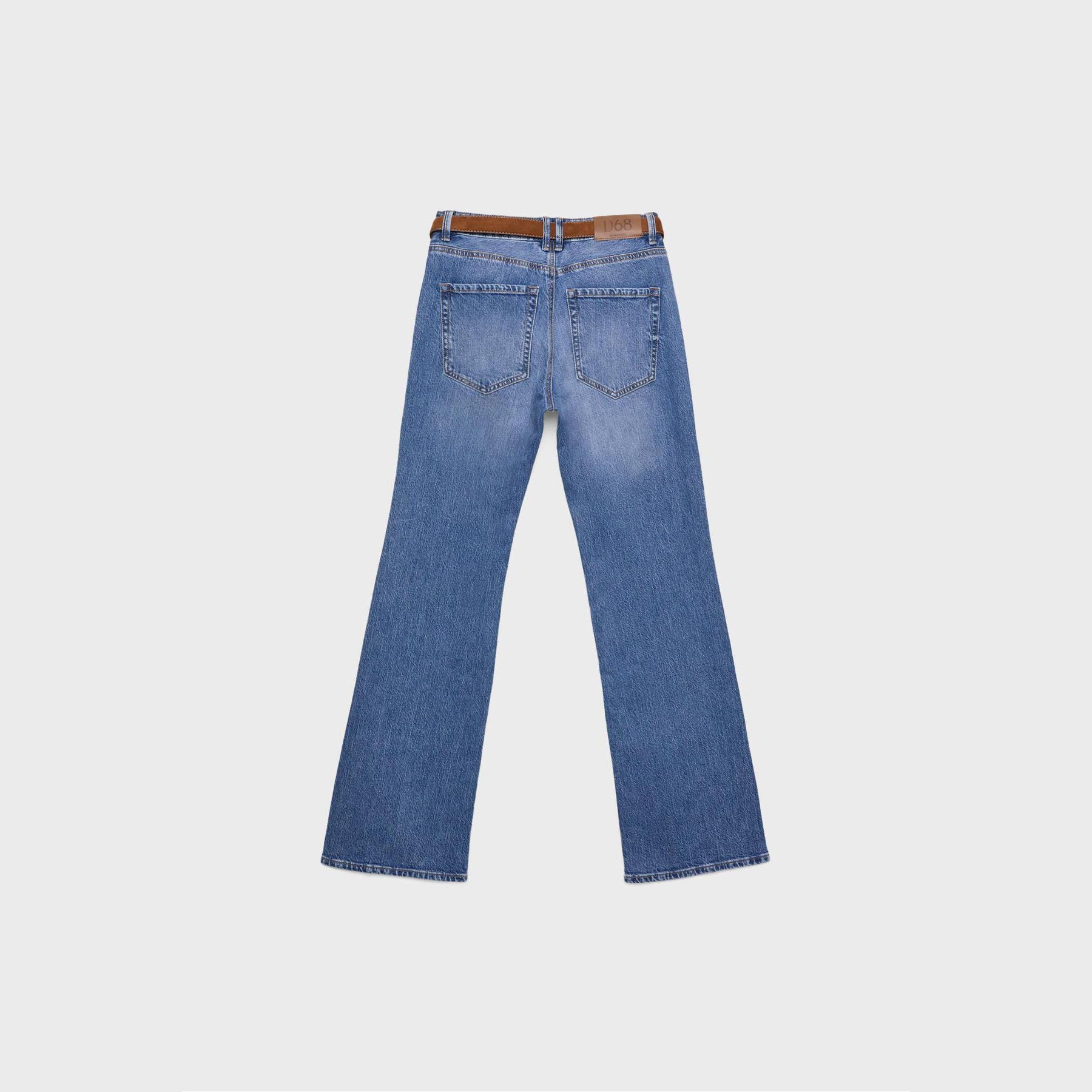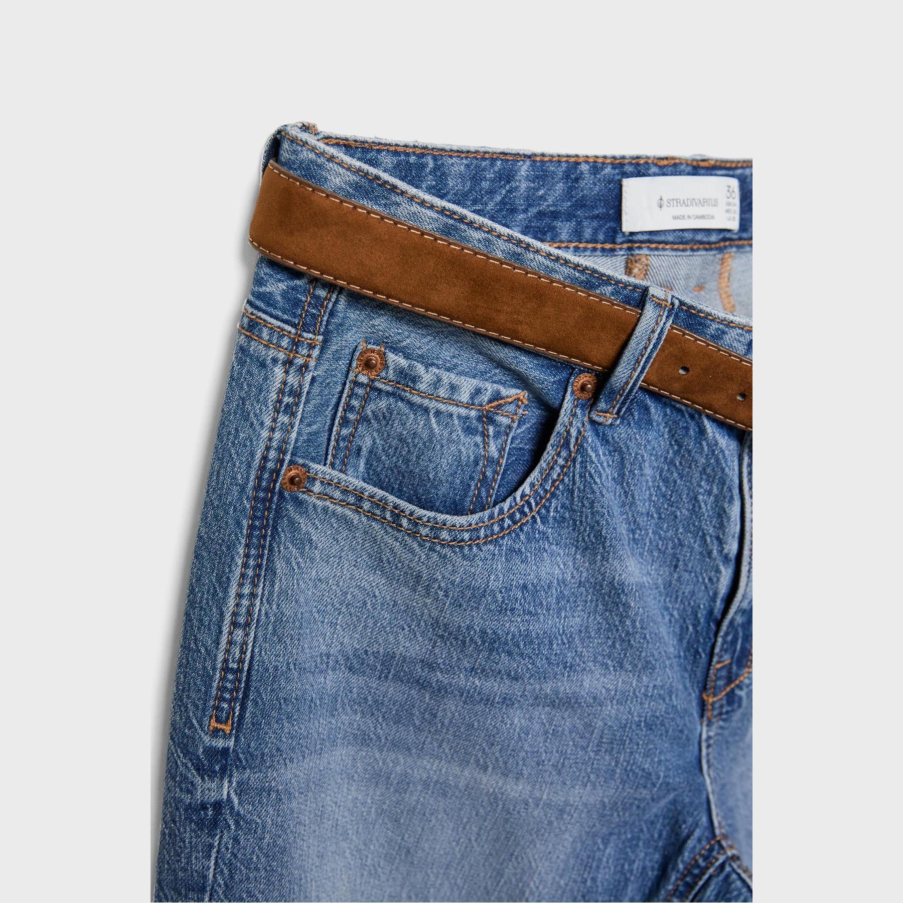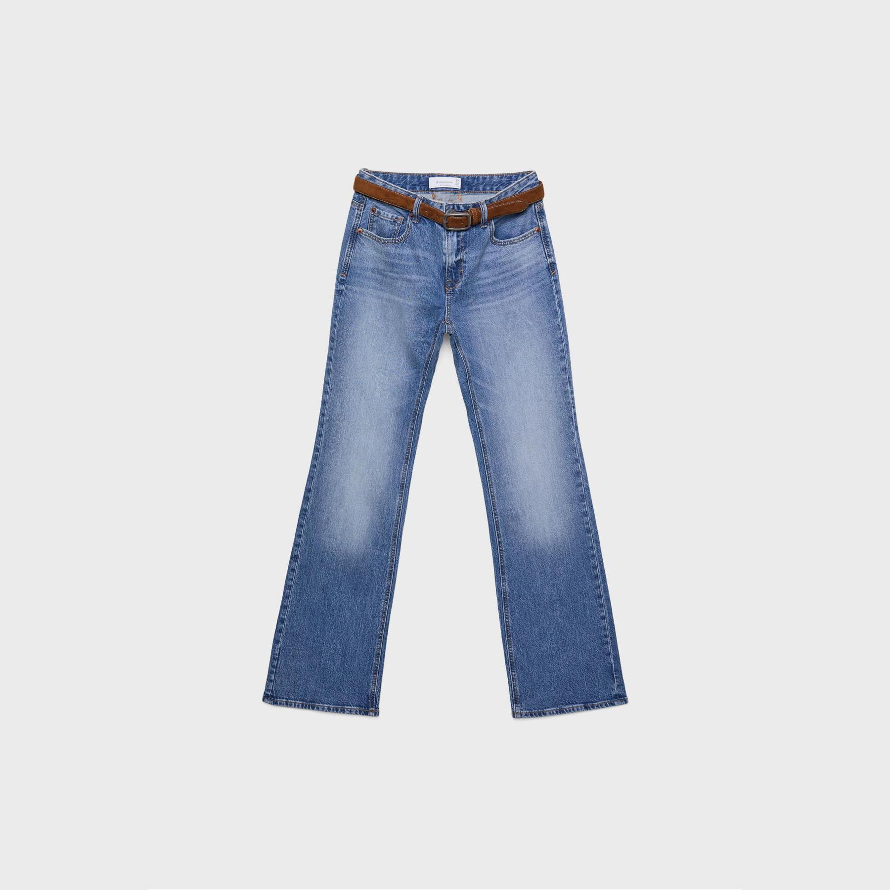 بنطال جينز D68 بقصة Bootcut وخصر عادي مع حزام – أزرق متوسط مغسول من Stradivarius