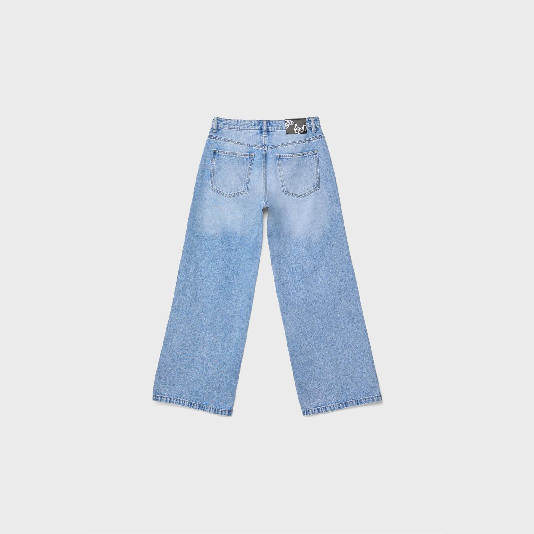 - اللون: أزرق متوسط مغسول بتأثير باهت