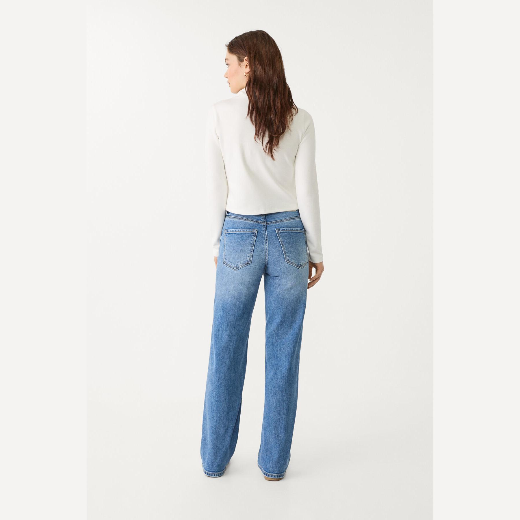 بنطال جينز بقصة مستقيمة مريحة وخصر عادي مع حزام – أزرق دنيم من Stradivarius