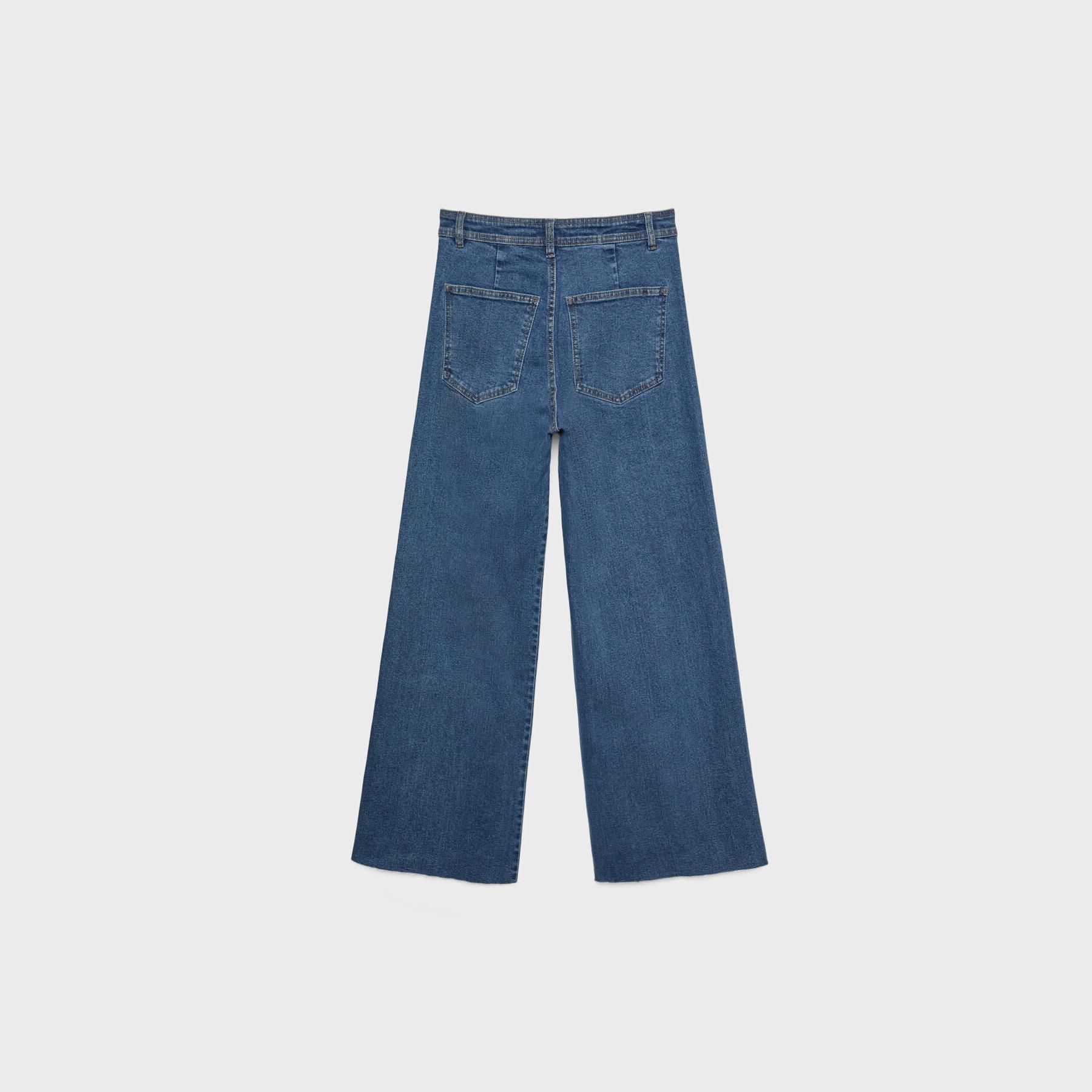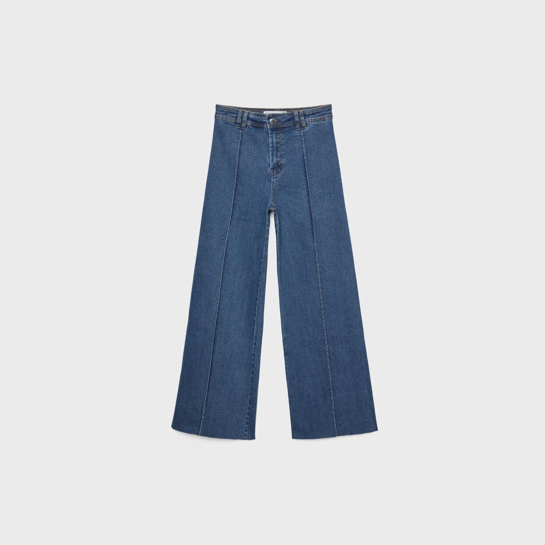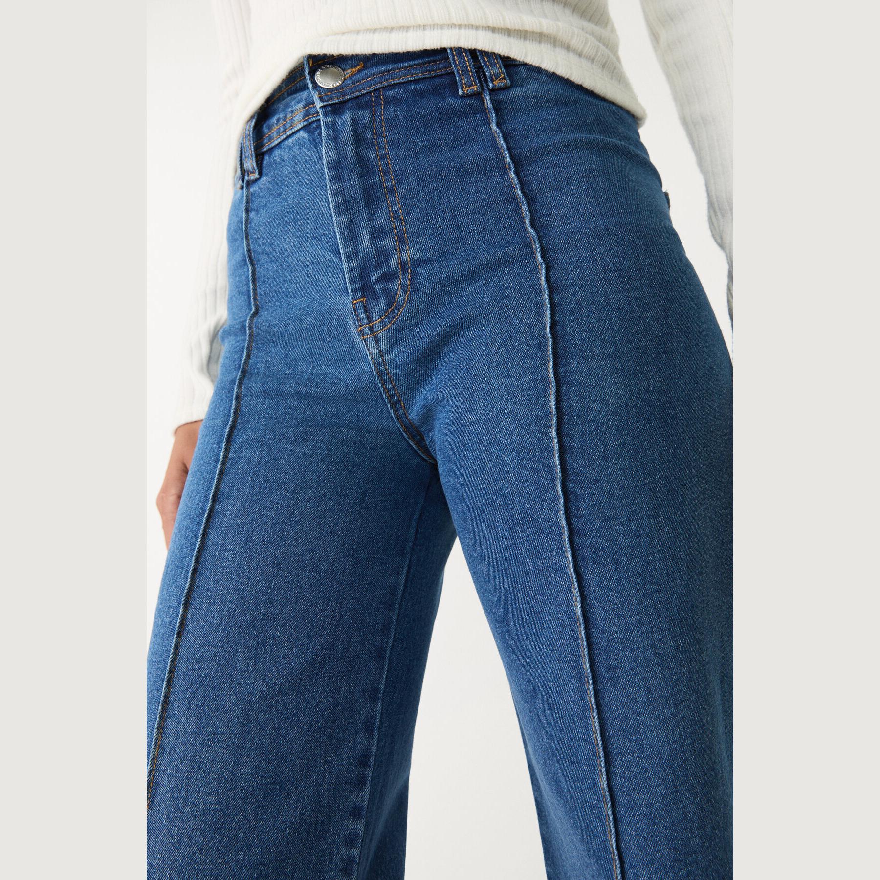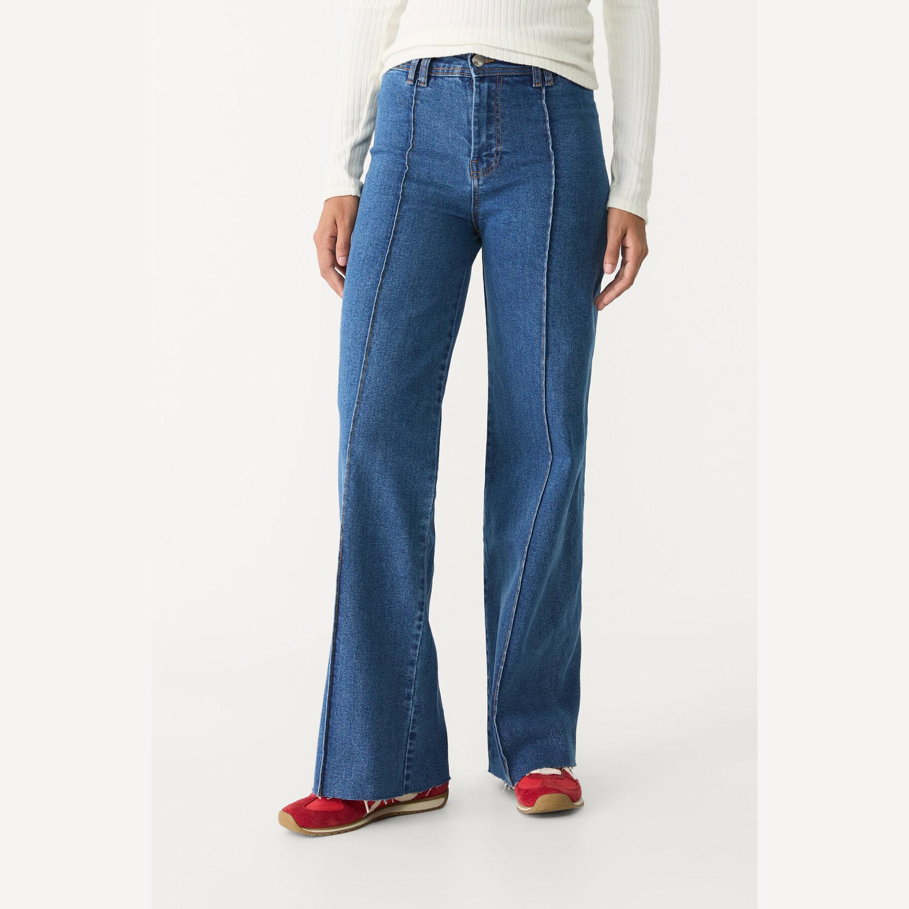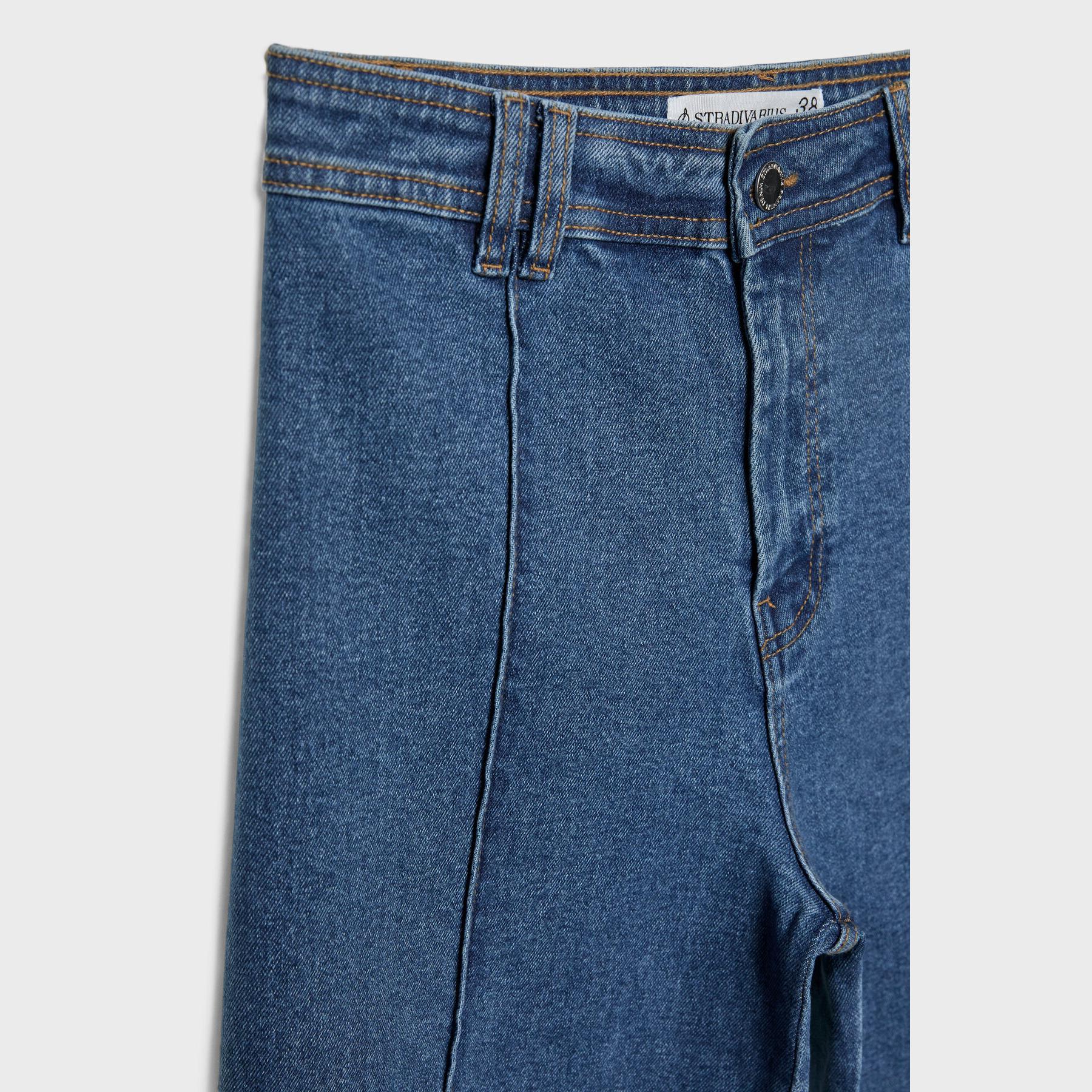 بنطال جينز Minimal بتفاصيل دُرز أمامي وخصر عالي – أزرق دنيم من Stradivarius