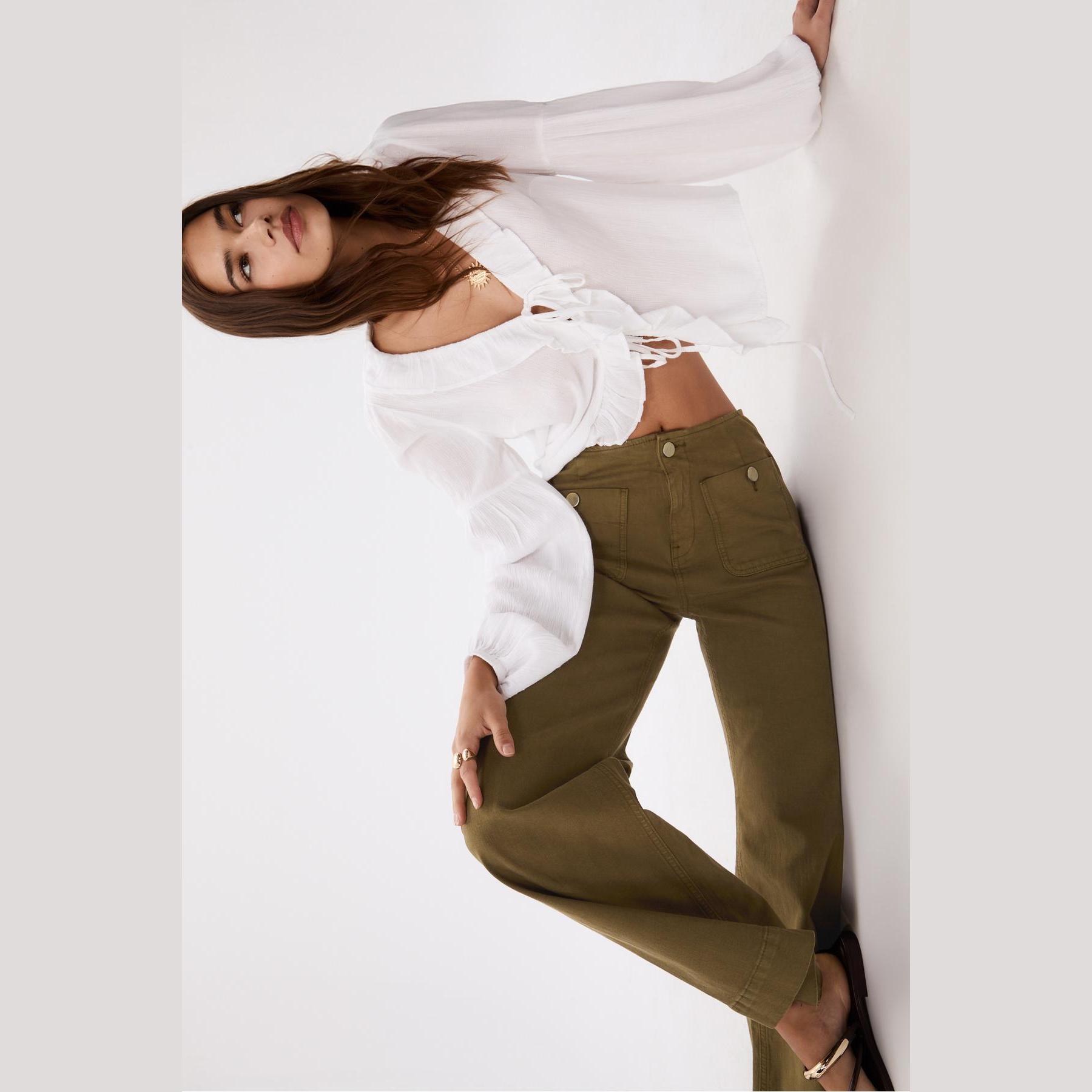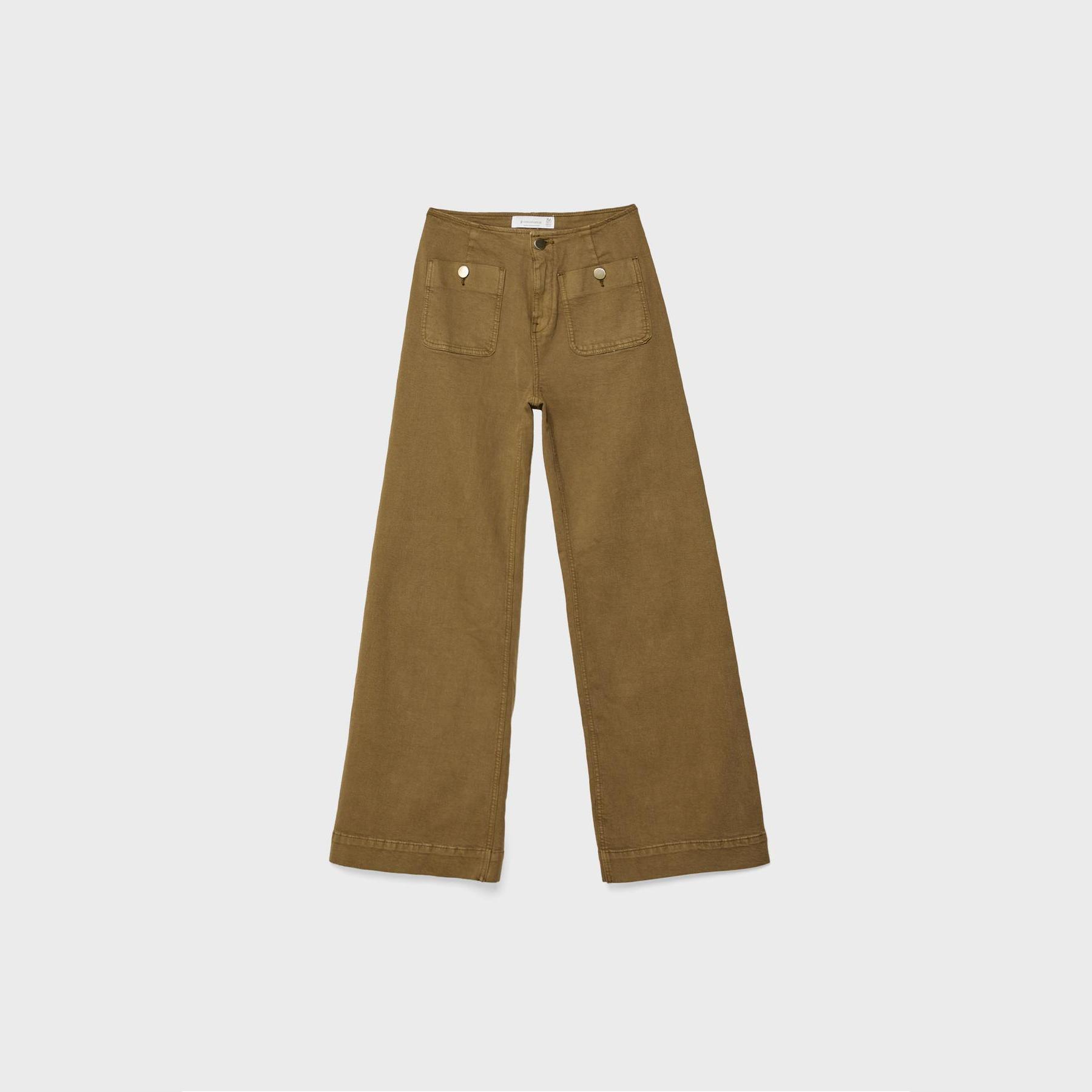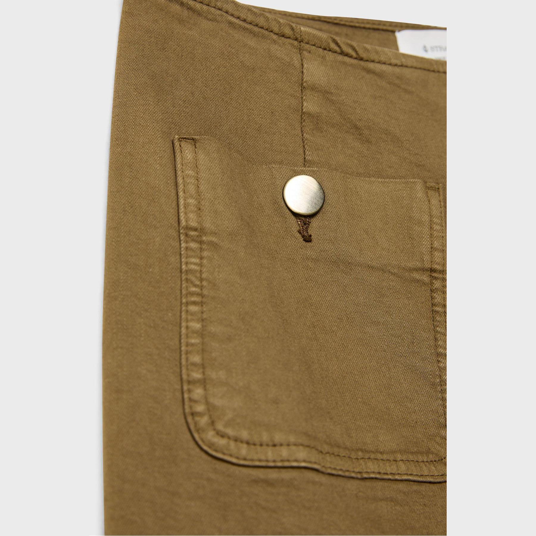 بنطال جينز D77 Minimal بخصر عادي وتفاصيل جيوب – زيتي من Stradivarius
