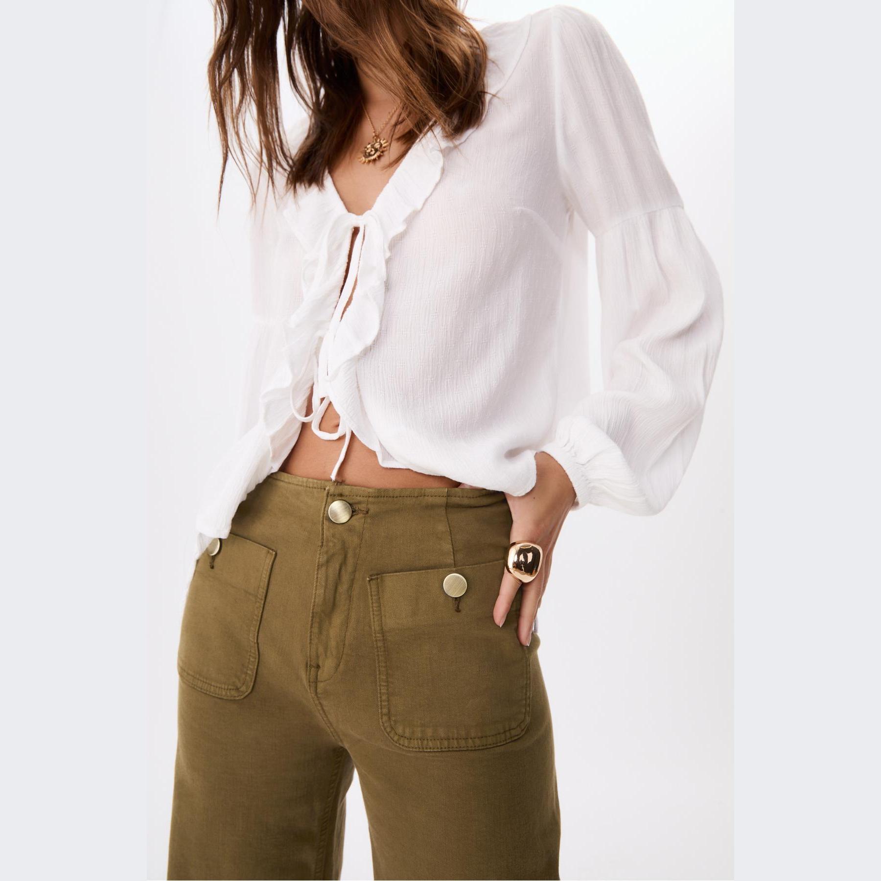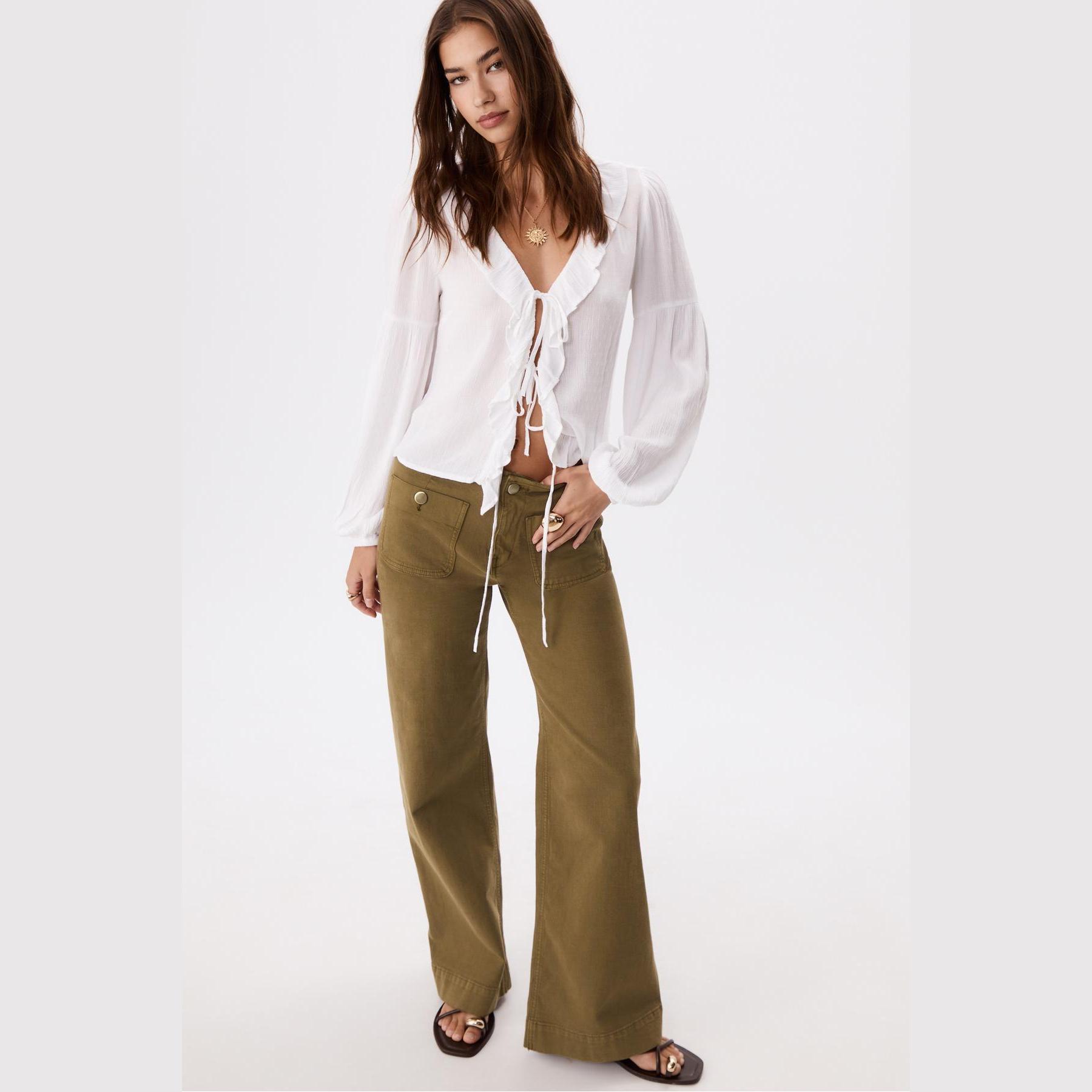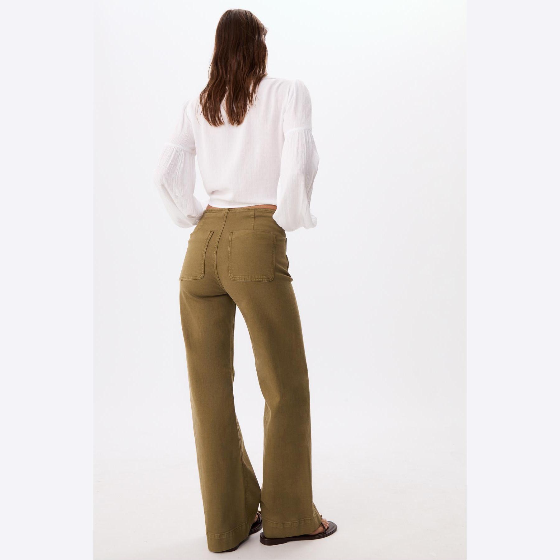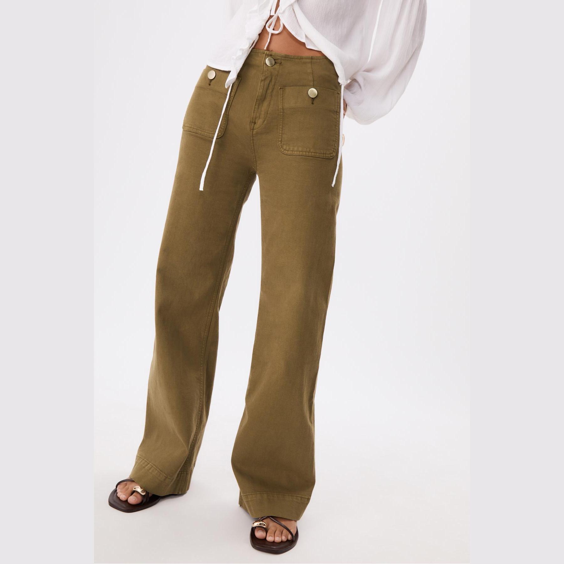 بنطال جينز D77 Minimal بخصر عادي وتفاصيل جيوب – زيتي من Stradivarius