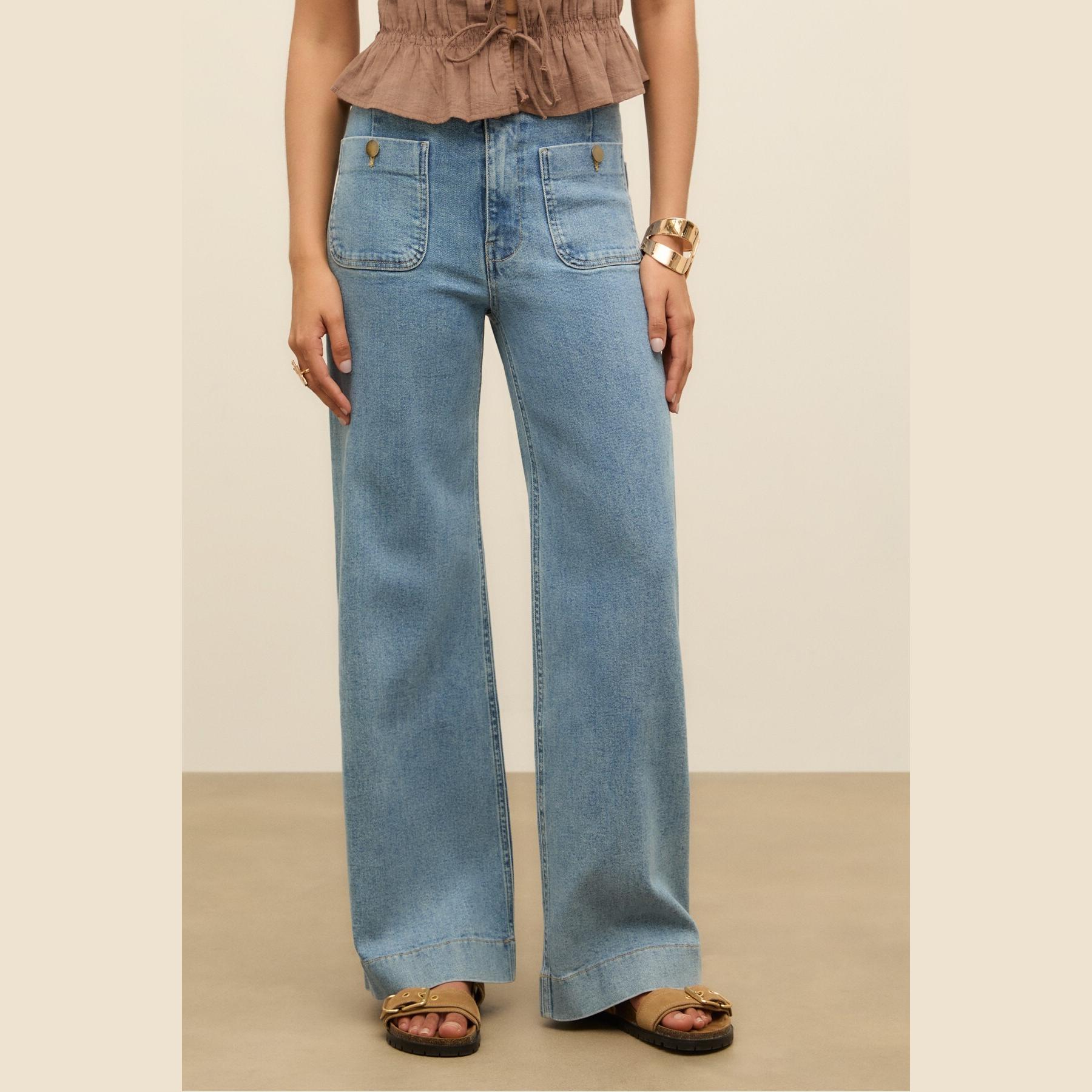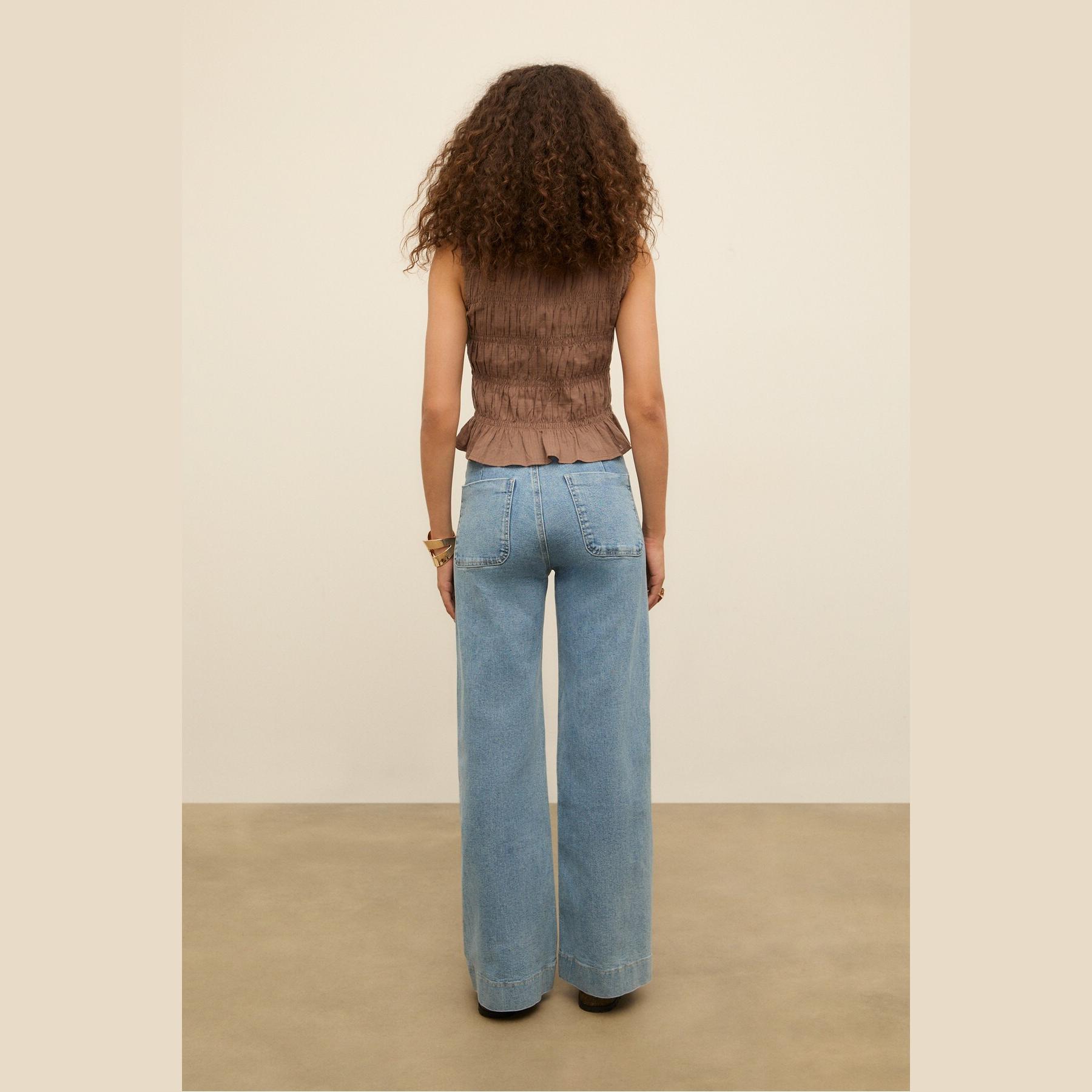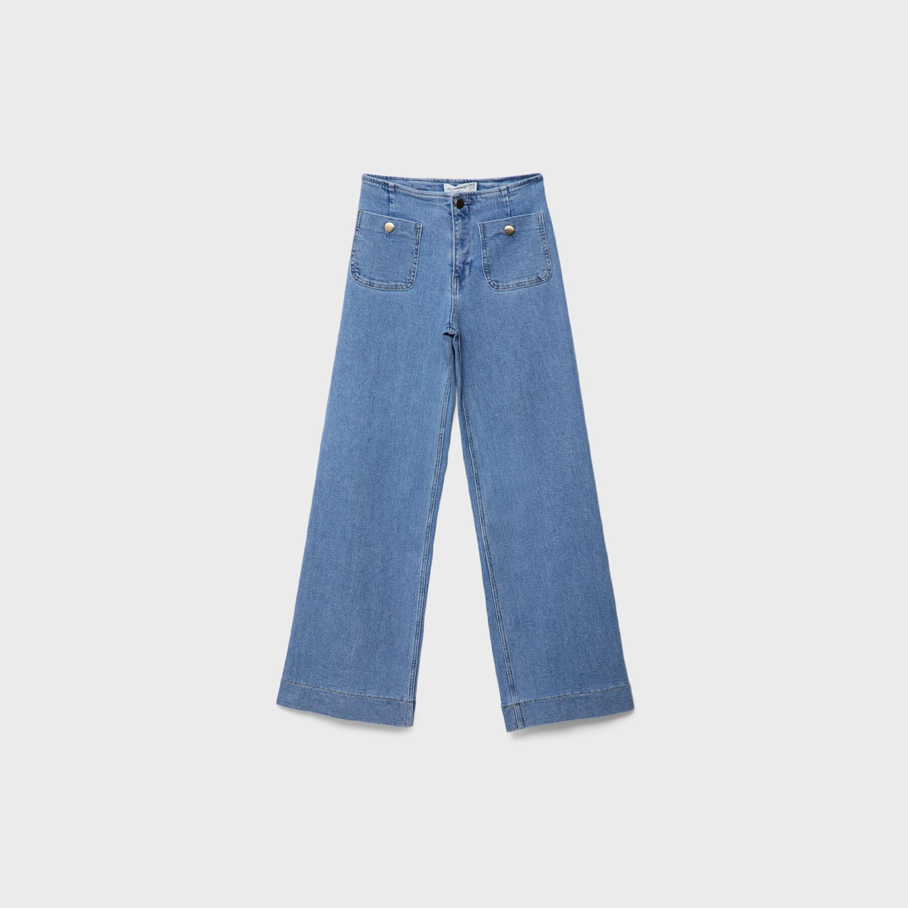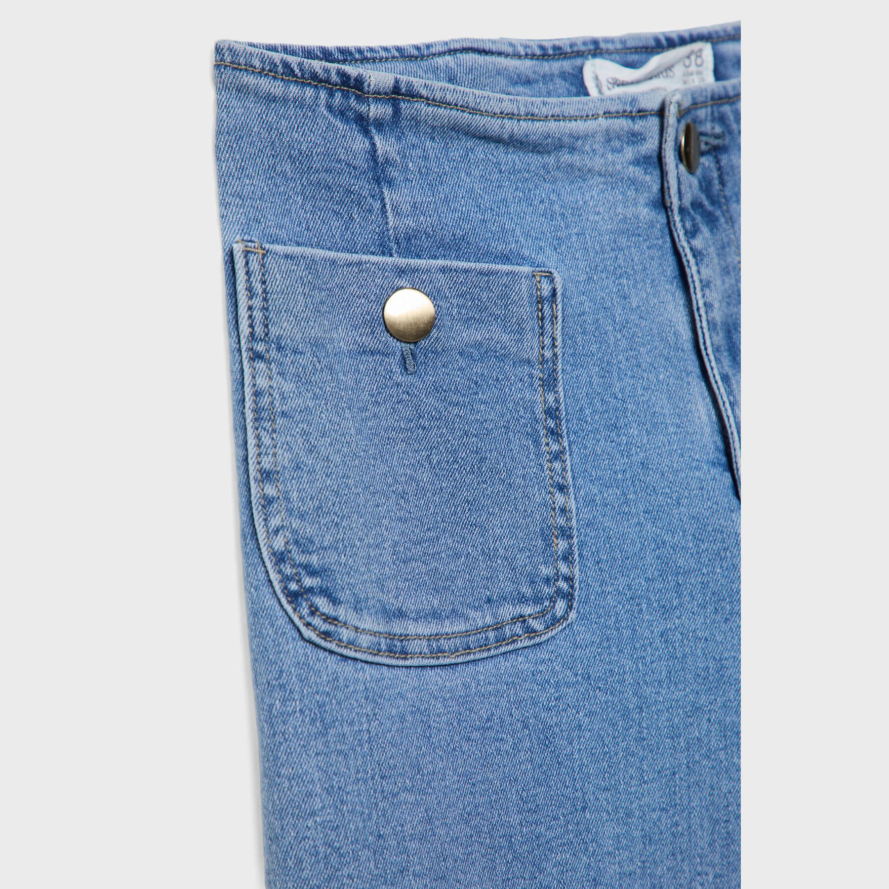 بنطال جينز Minimal بخصر عالي وقصة إسبانيول – أزرق فاتح من Stradivarius