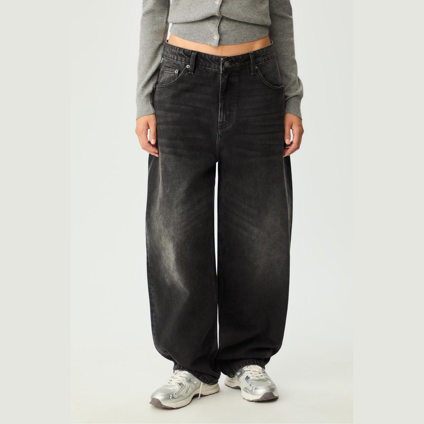 بنطال جينز Baggy بقصة واسعة وخصر عادي – رمادي من Stradivarius