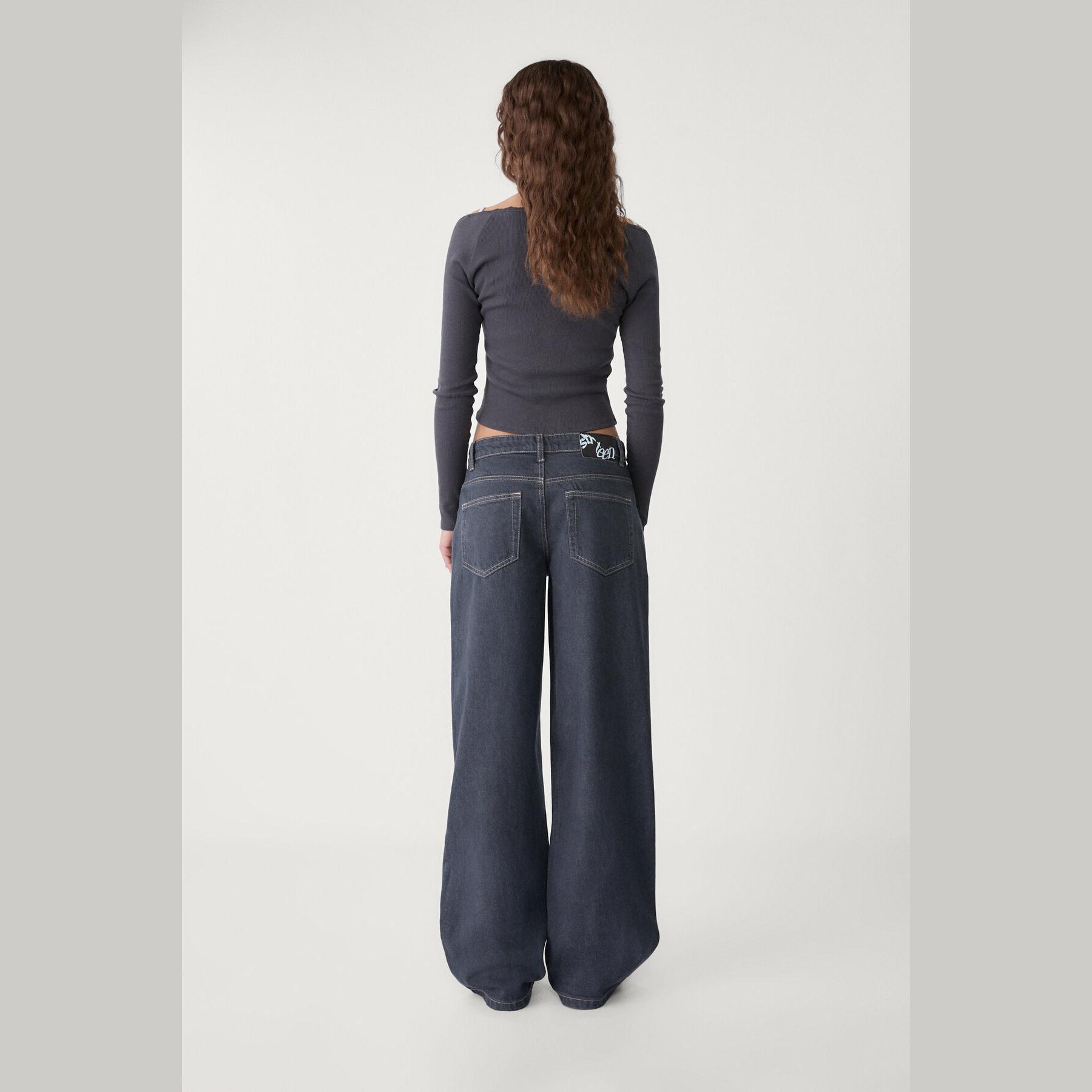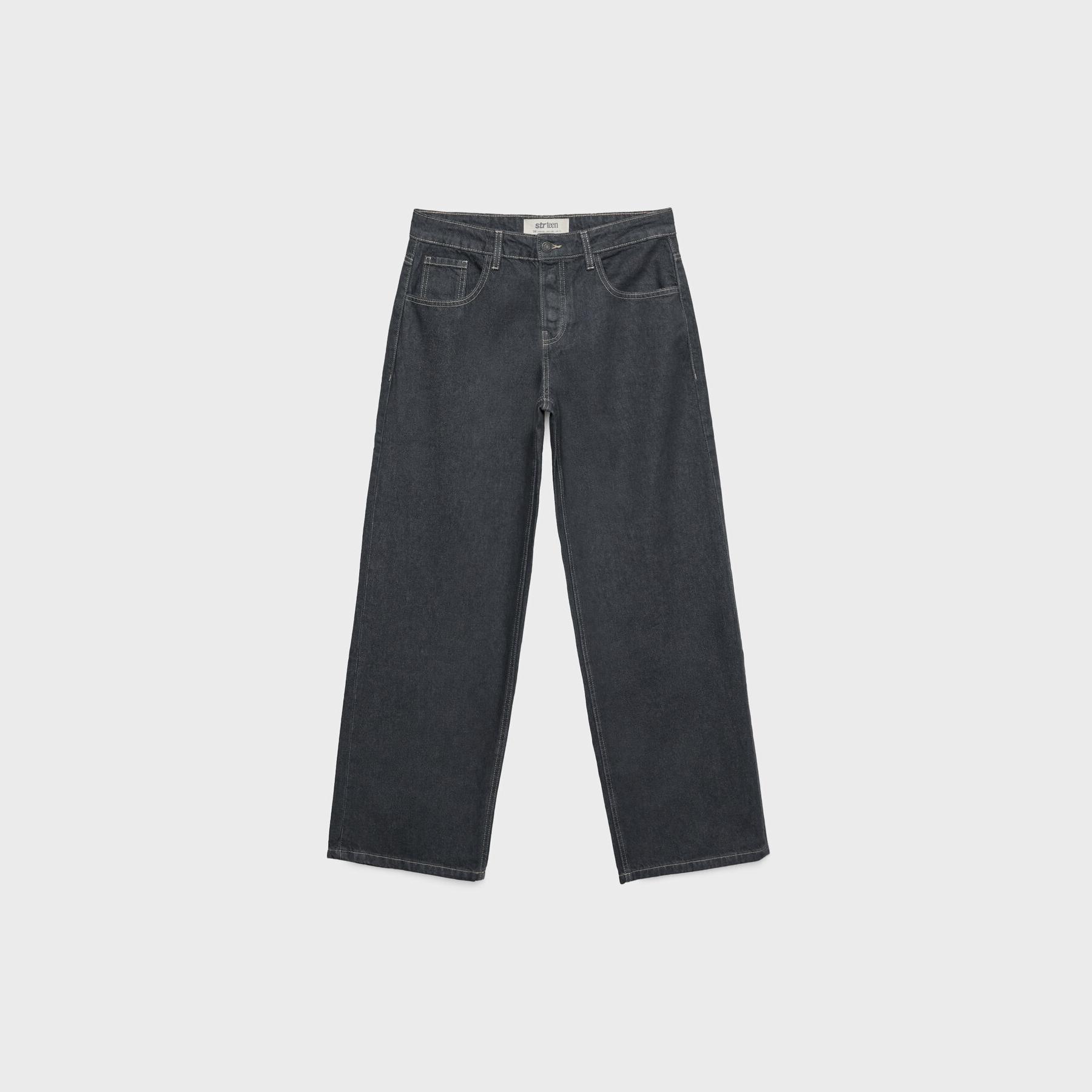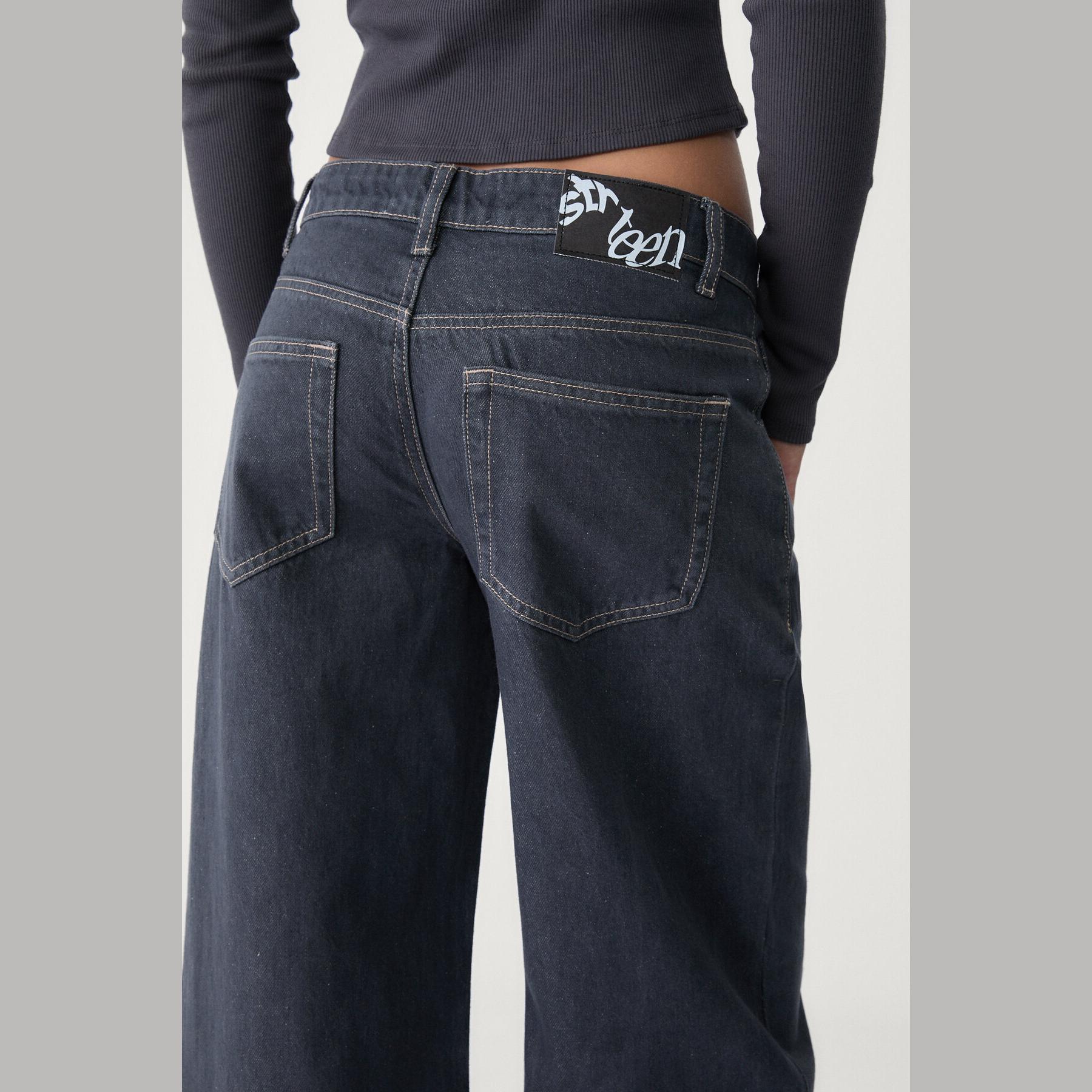 بنطال جينز أنيق من Stradivarius بلون أزرق دنيم، مصنوع من خامة قطنية 100% بدون مطاط، يتميز بقصة مستقيمة واسعة (Straight Fit – Loose Baggy) وخصر عادي، مزود بإغلاق أمامي بسحاب وزر معدني، تصميم بخمسة جيوب عملية (أمامية + خلفية)، حلقات حزام، ويأتي مع حزام بنفس اللون، وأطراف بطول قياسي، مثالي للتنسيق مع توبات قصيرة أو جاكيتات لإطلالة كاجوال مريحة وعصرية.