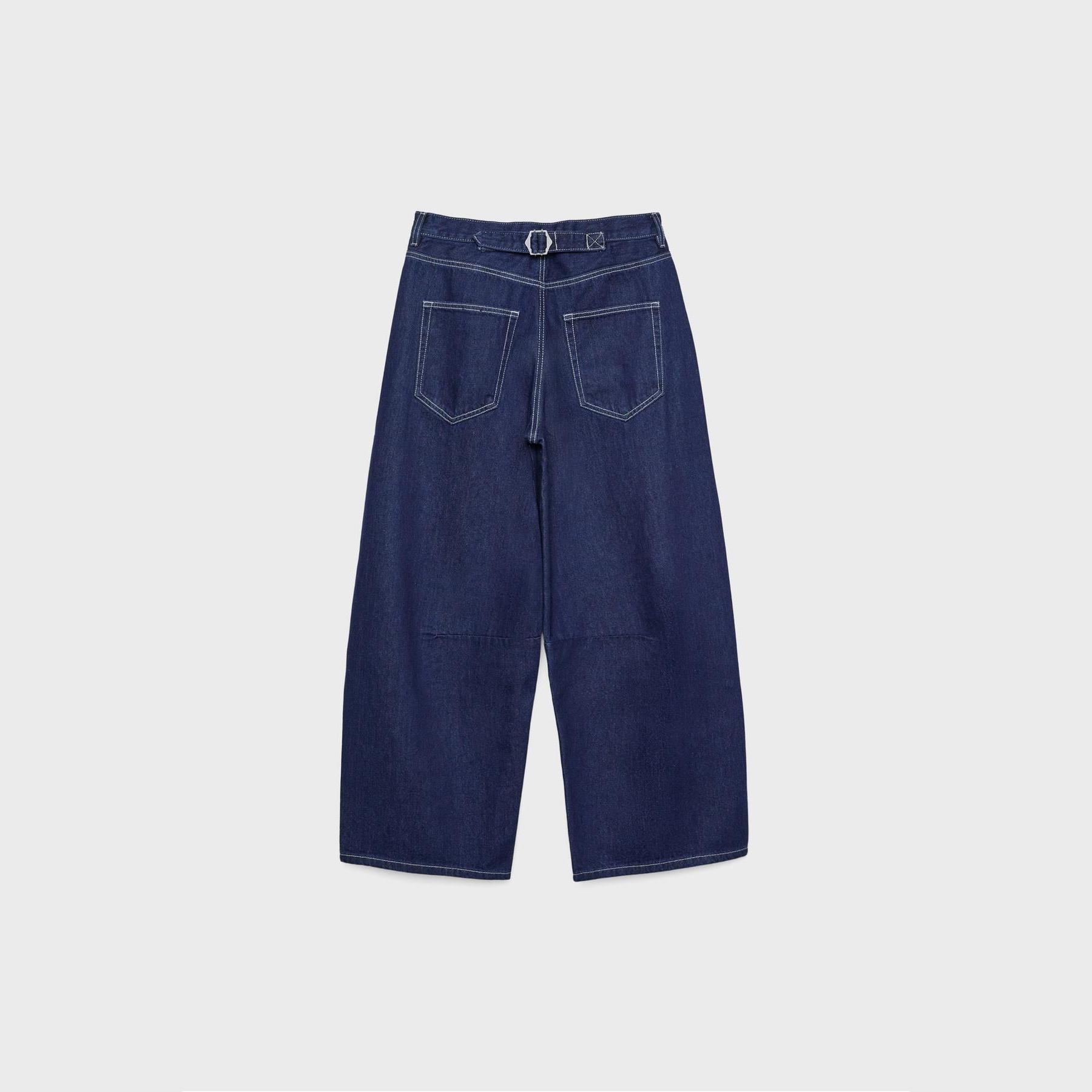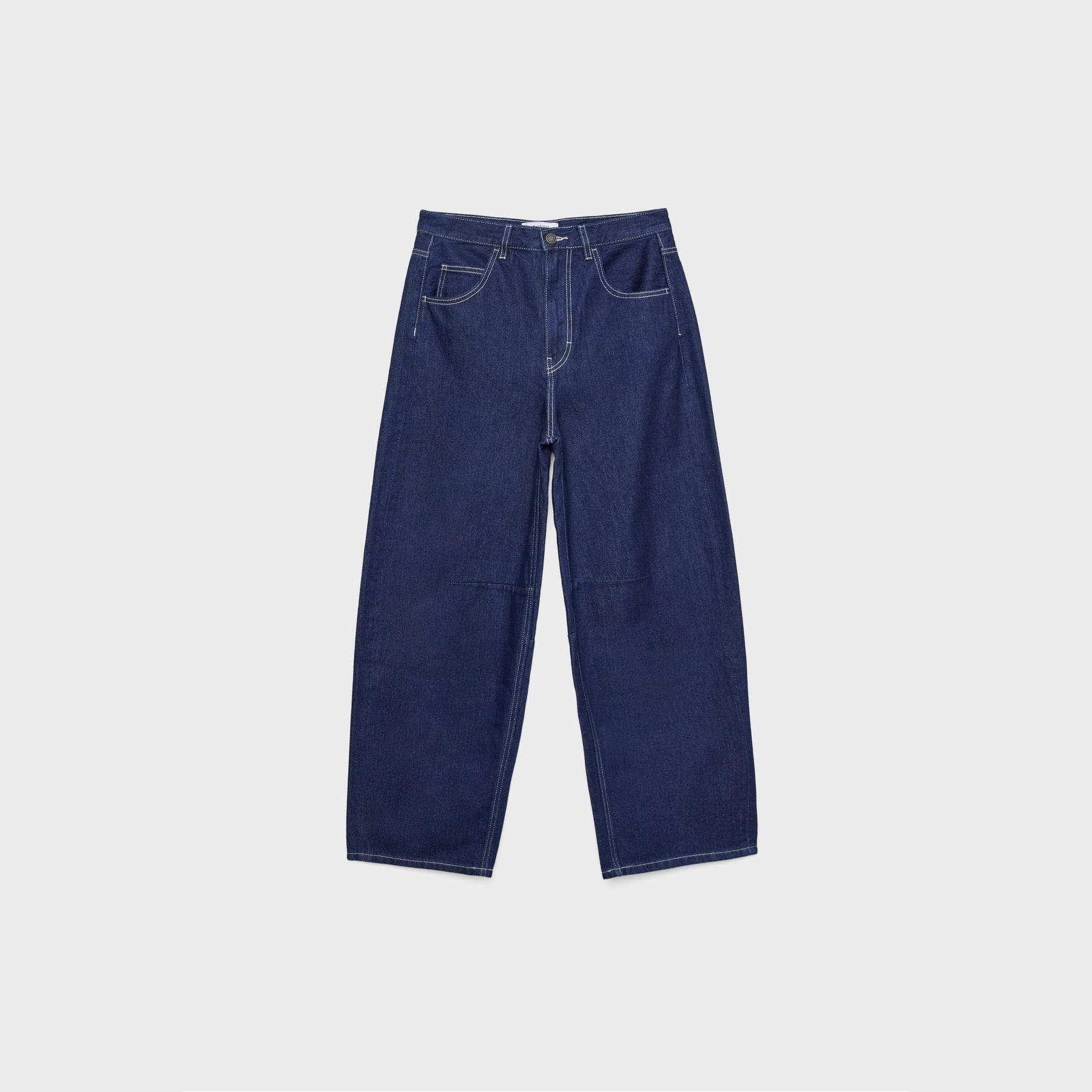 بنطال جينز Barrel بخصر متوسط وقصة قابلة للتعديل – كحلي من Stradivarius