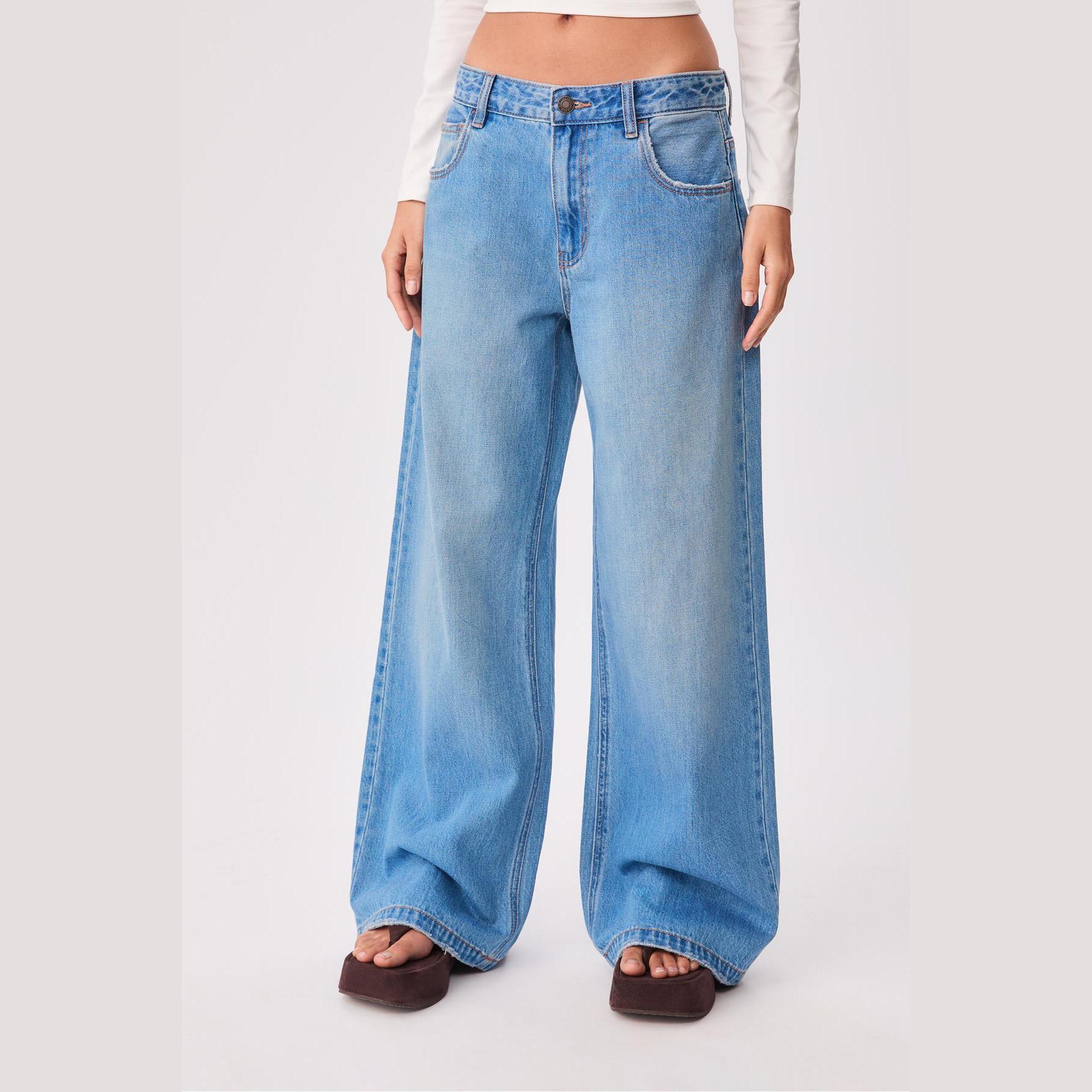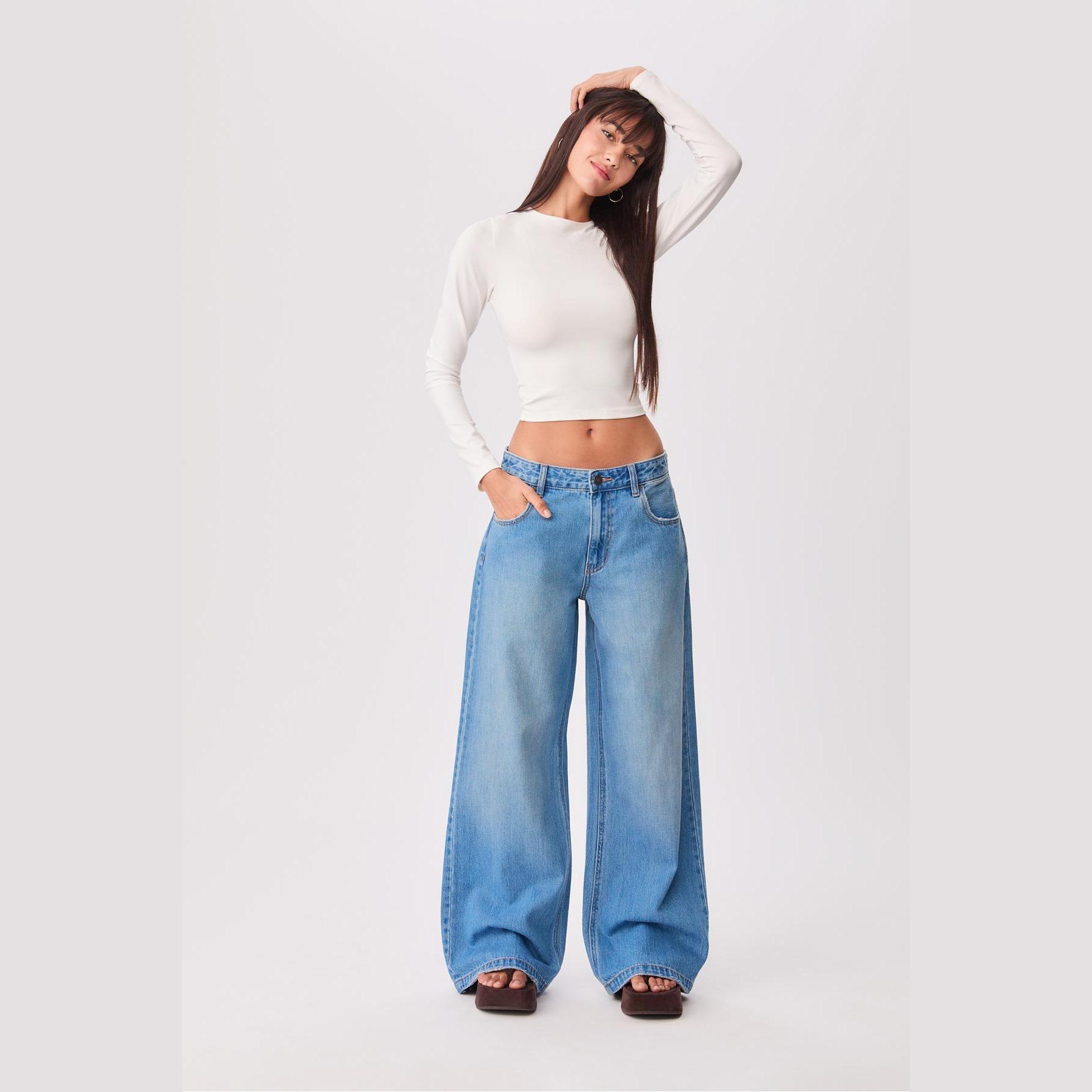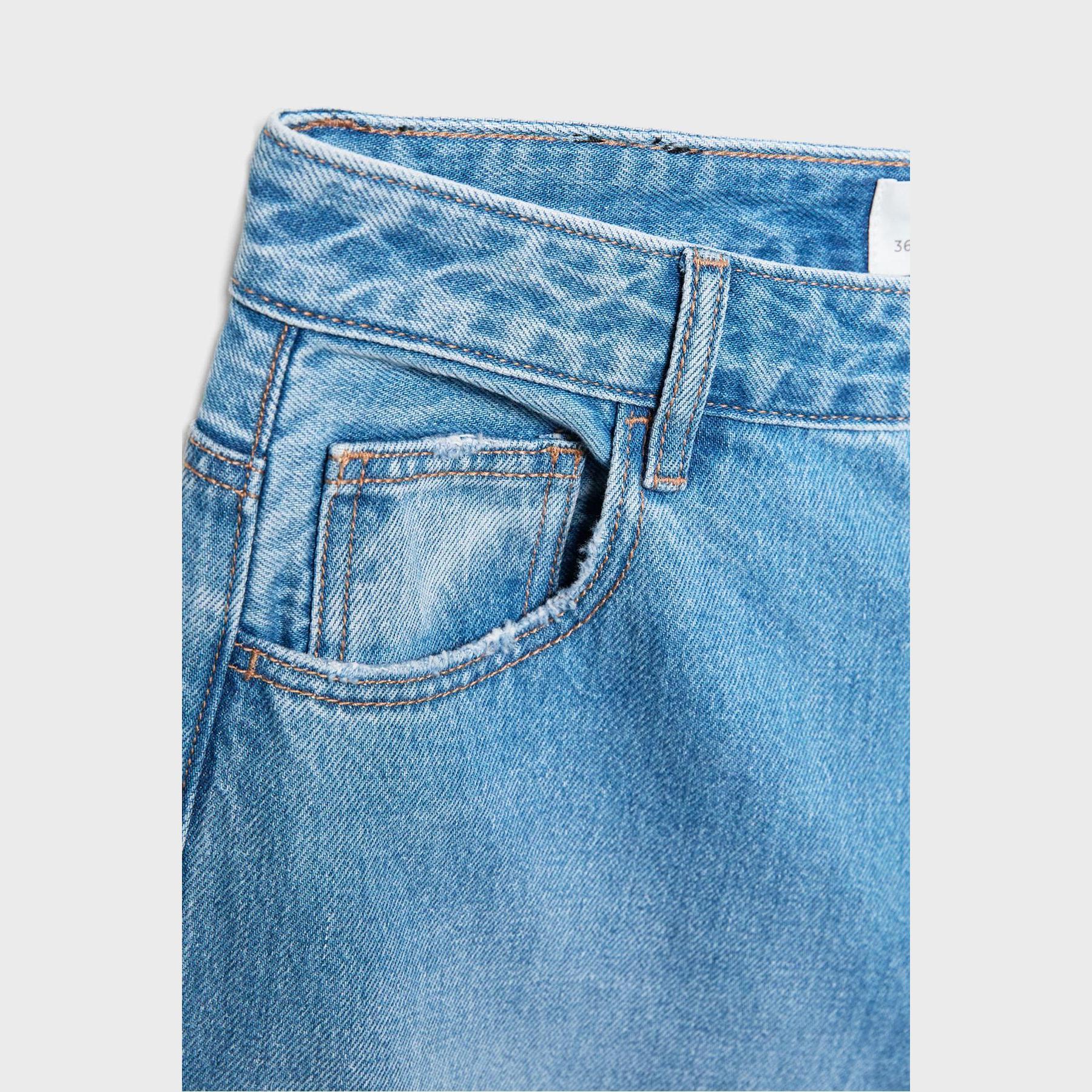 بنطال جينز أنيق من Stradivarius بلون دنيم أزرق متوسط بتأثير باهت (Soluk Efektli Orta Mavi Denim)، مصنوع من خامة قطنية 100% بدون مطاط، يتميز بقصة واسعة الساق (Wide Leg) وخصر عادي، مزود بإغلاق أمامي بسحاب وزر معدني، تصميم بخمسة جيوب عملية (أمامية + خلفية)، حلقات حزام، ويأتي مع حزام بنفس اللون، وأطراف بطول قياسي، مثالي للتنسيق مع توبات قصيرة أو جاكيتات لإطلالة كاجوال مريحة وعصرية.