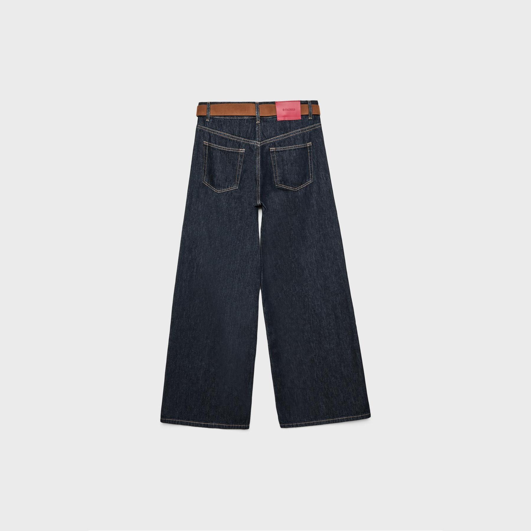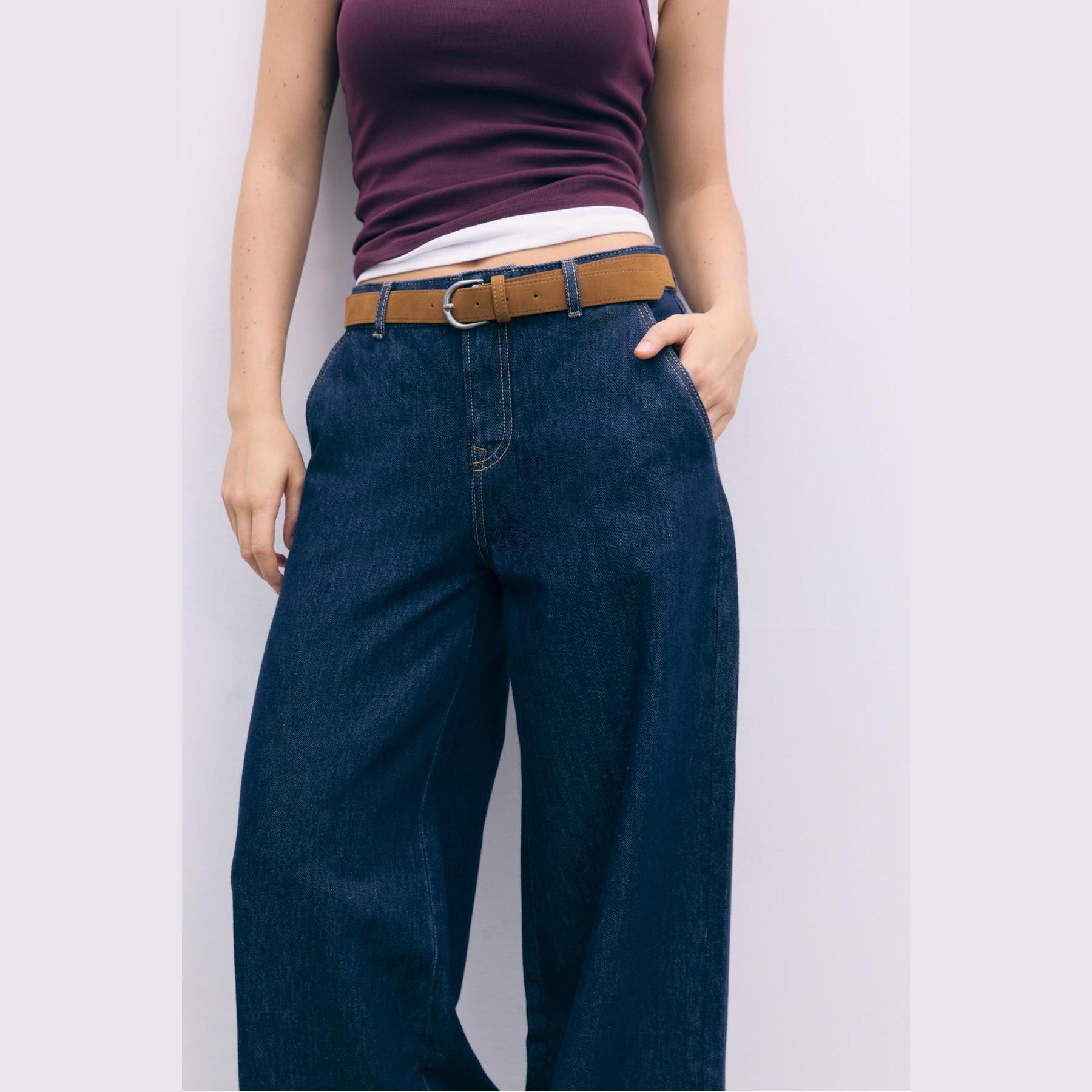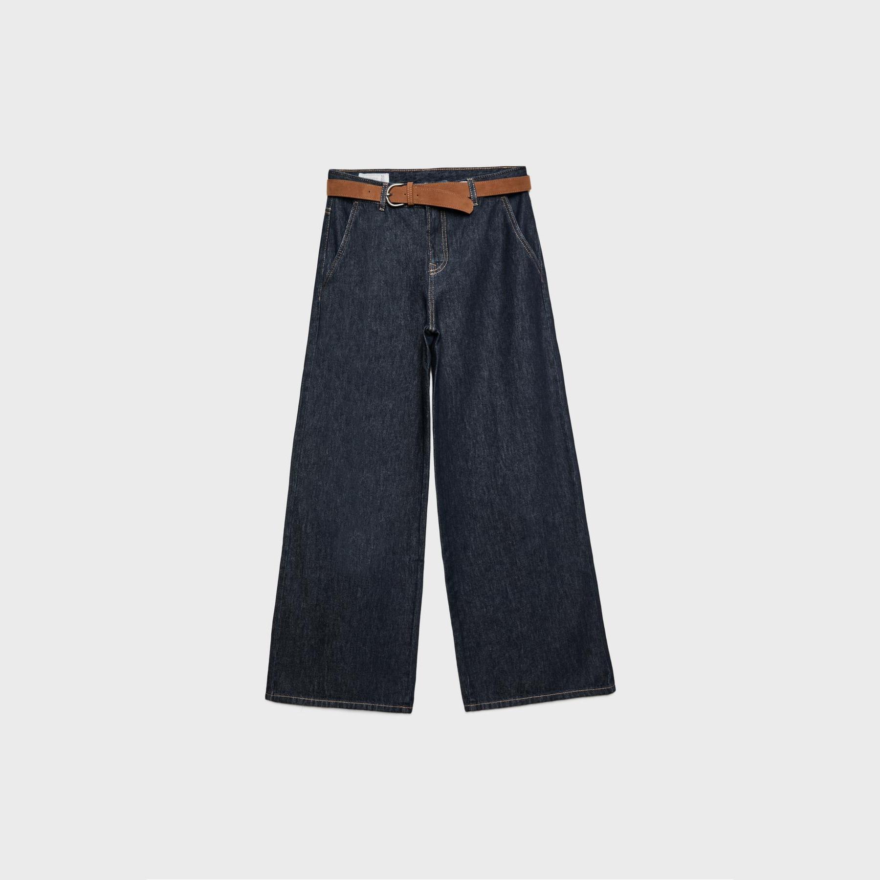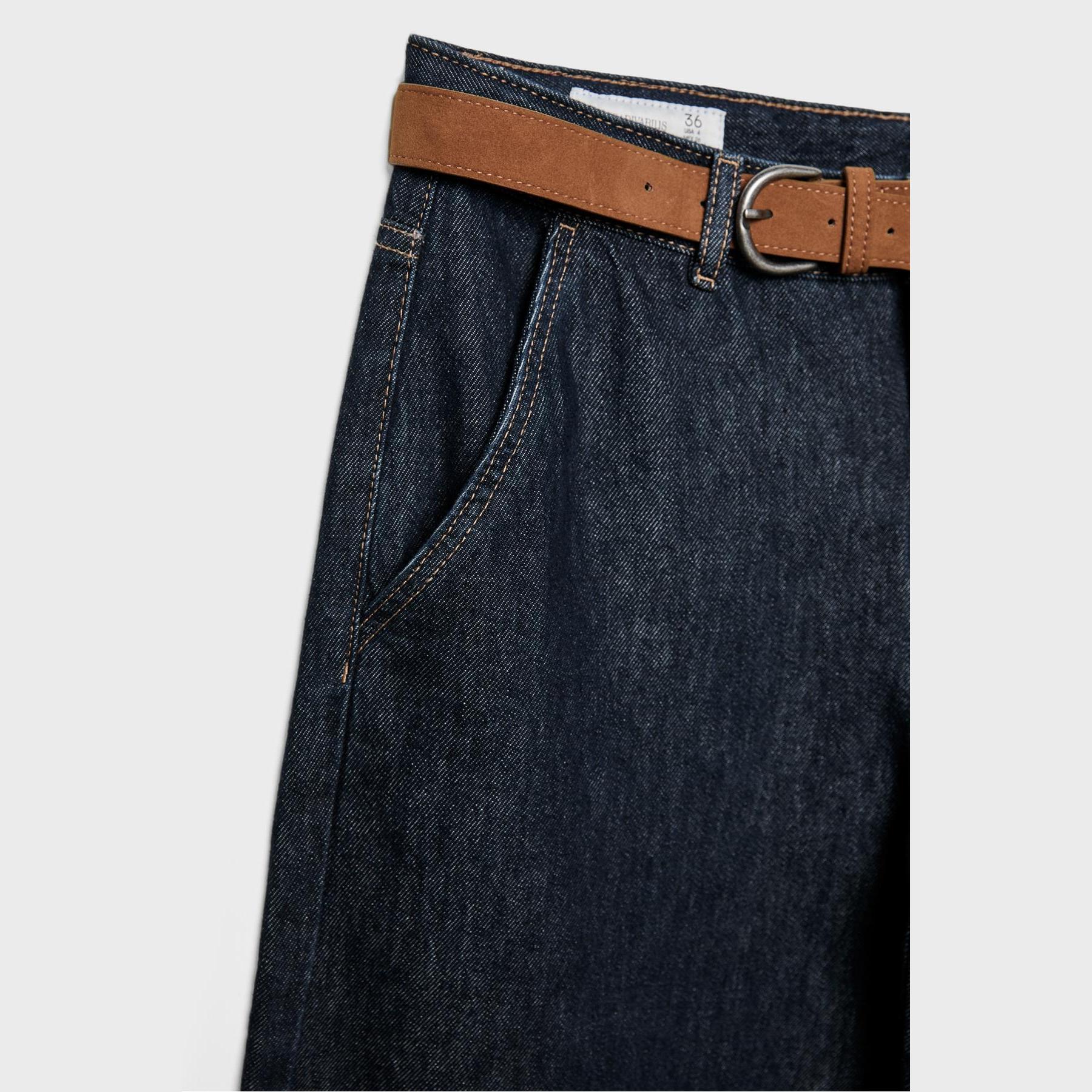 بنطال جينز واسع مريح بخصر عادي وحزام قابل للإزالة – كحلي من Stradivarius