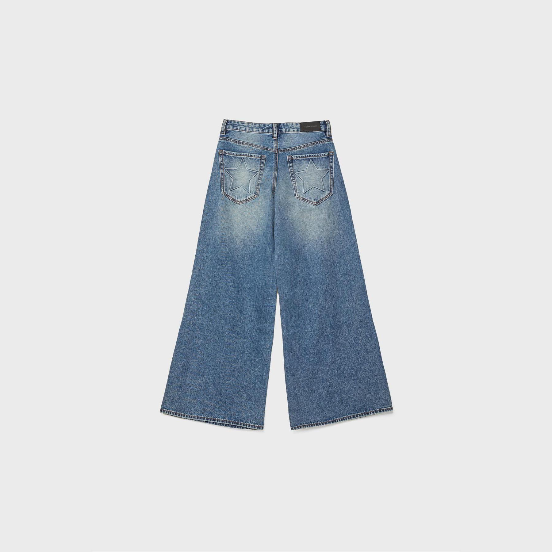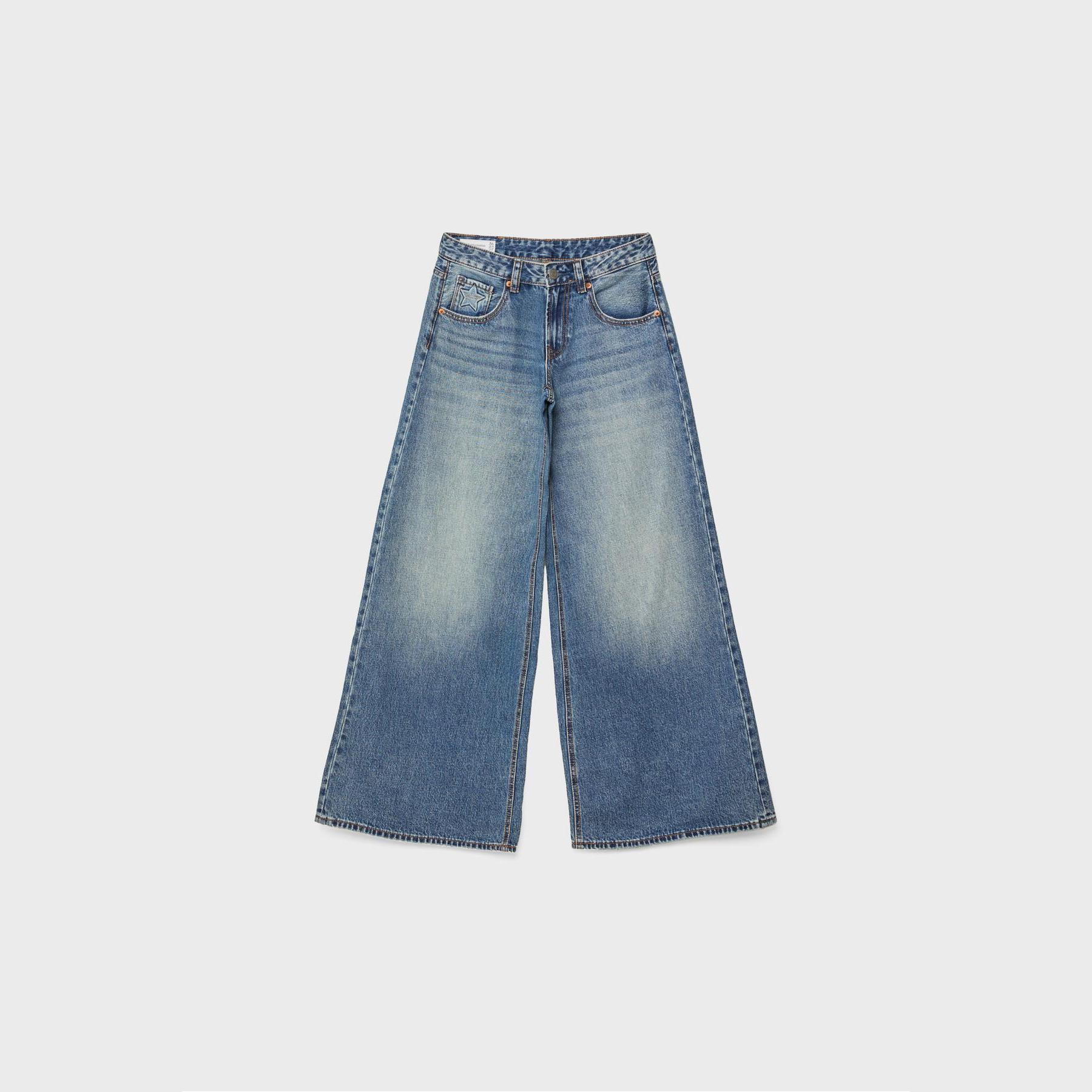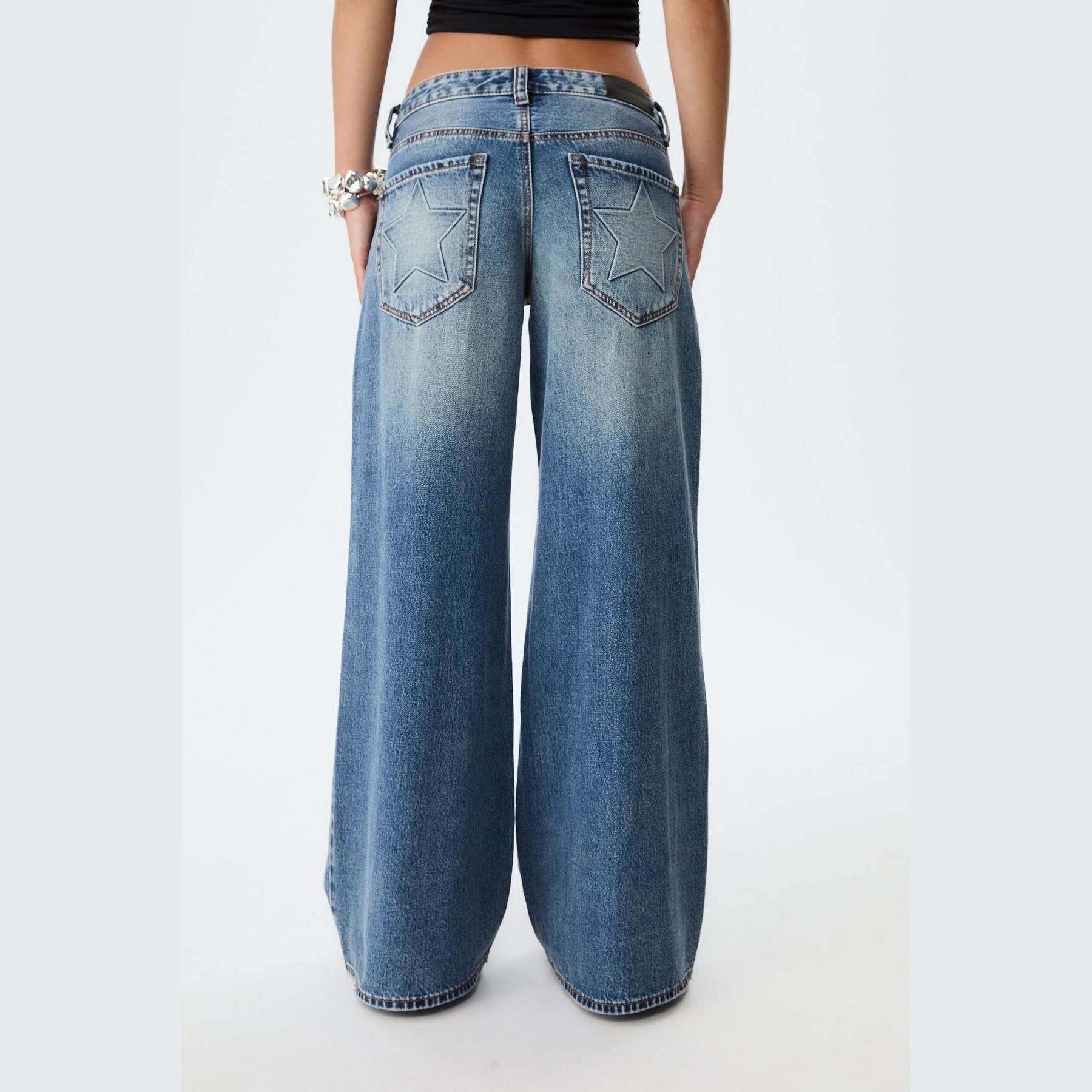 بنطال جينز بخصر منخفض وقصة واسعة مع تطريز نجوم – دنيم أزرق من Stradivarius