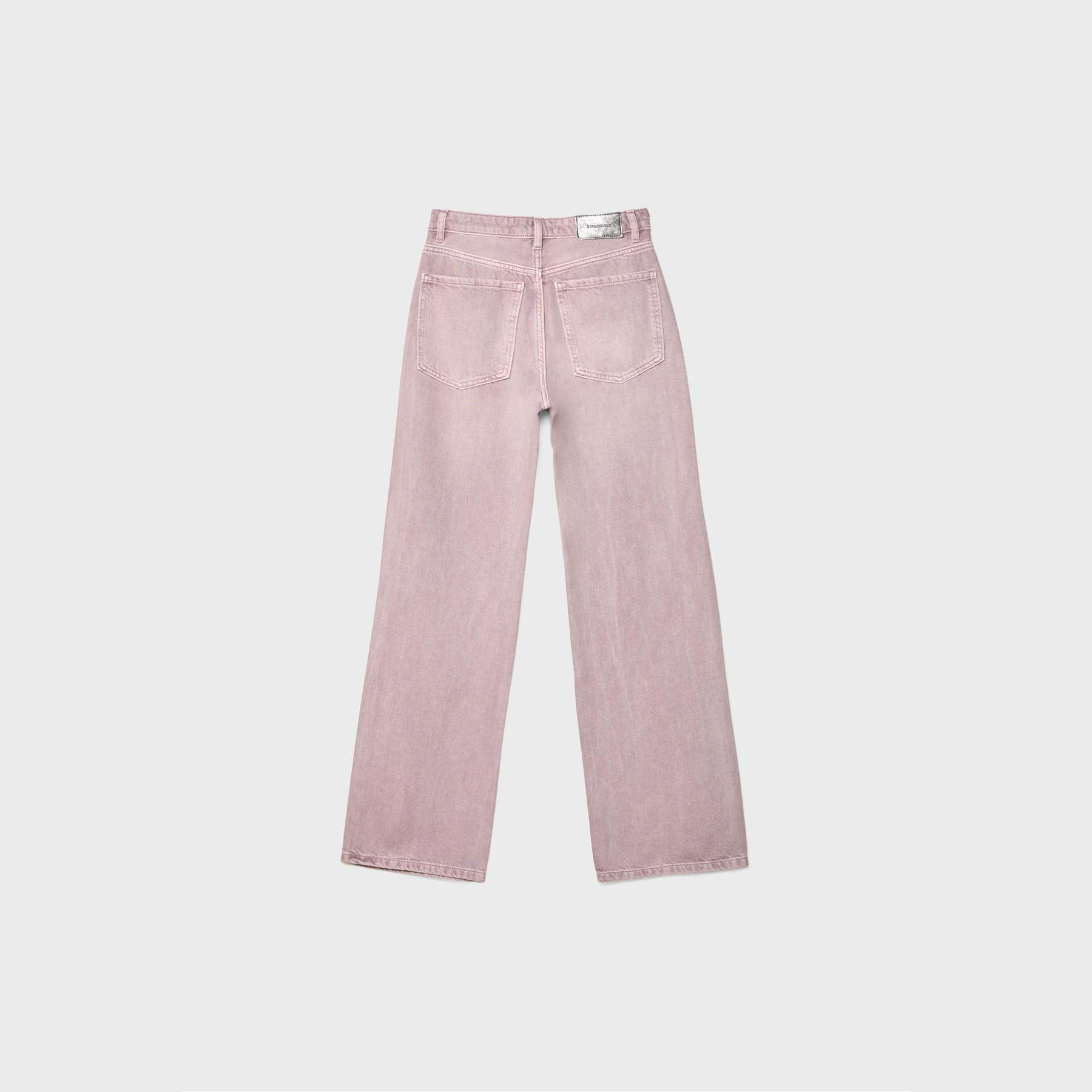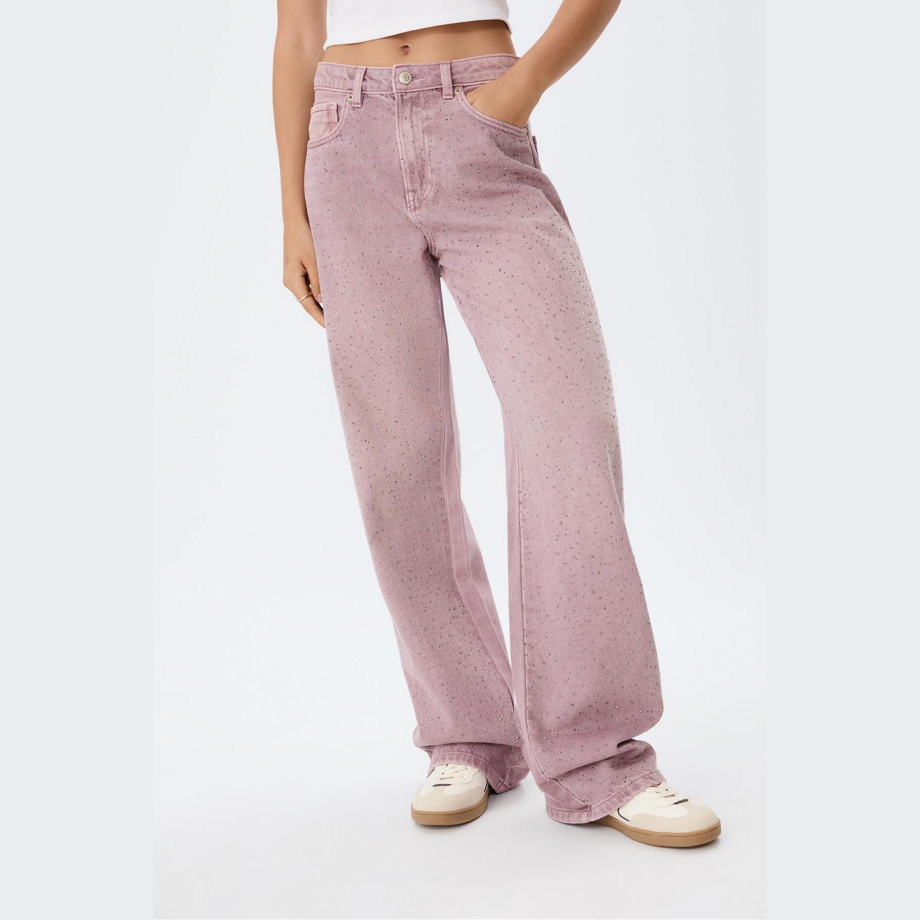بنطال جينز Parıltılı بقصة مستقيمة وخصر عادي – زهر لامع من Stradivarius