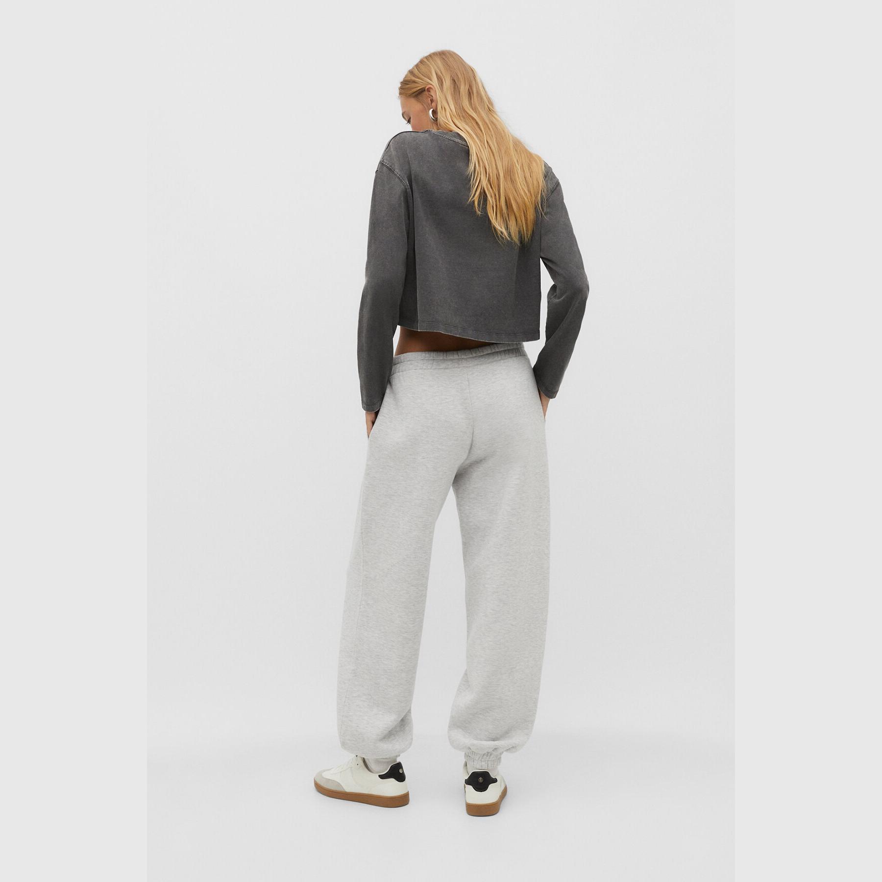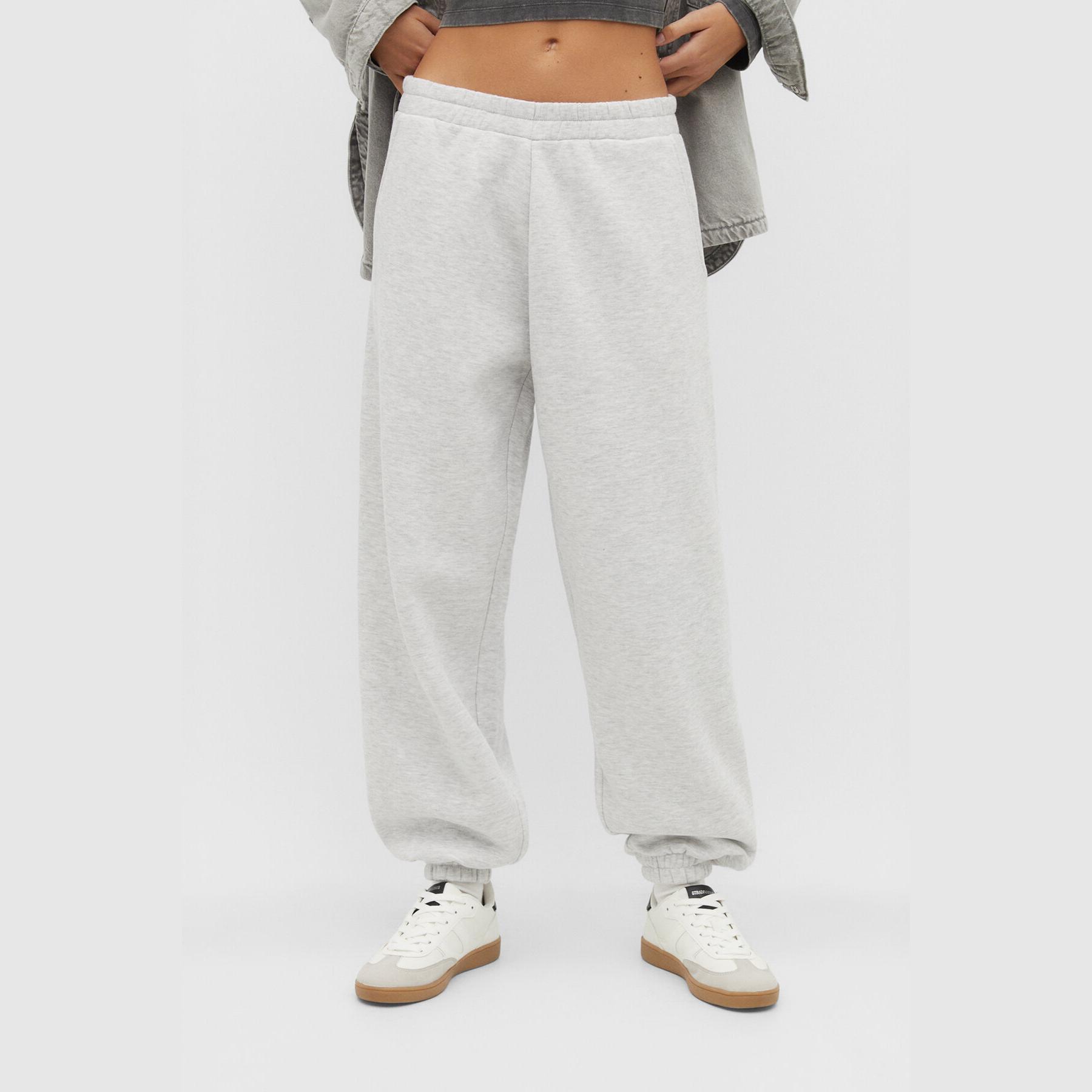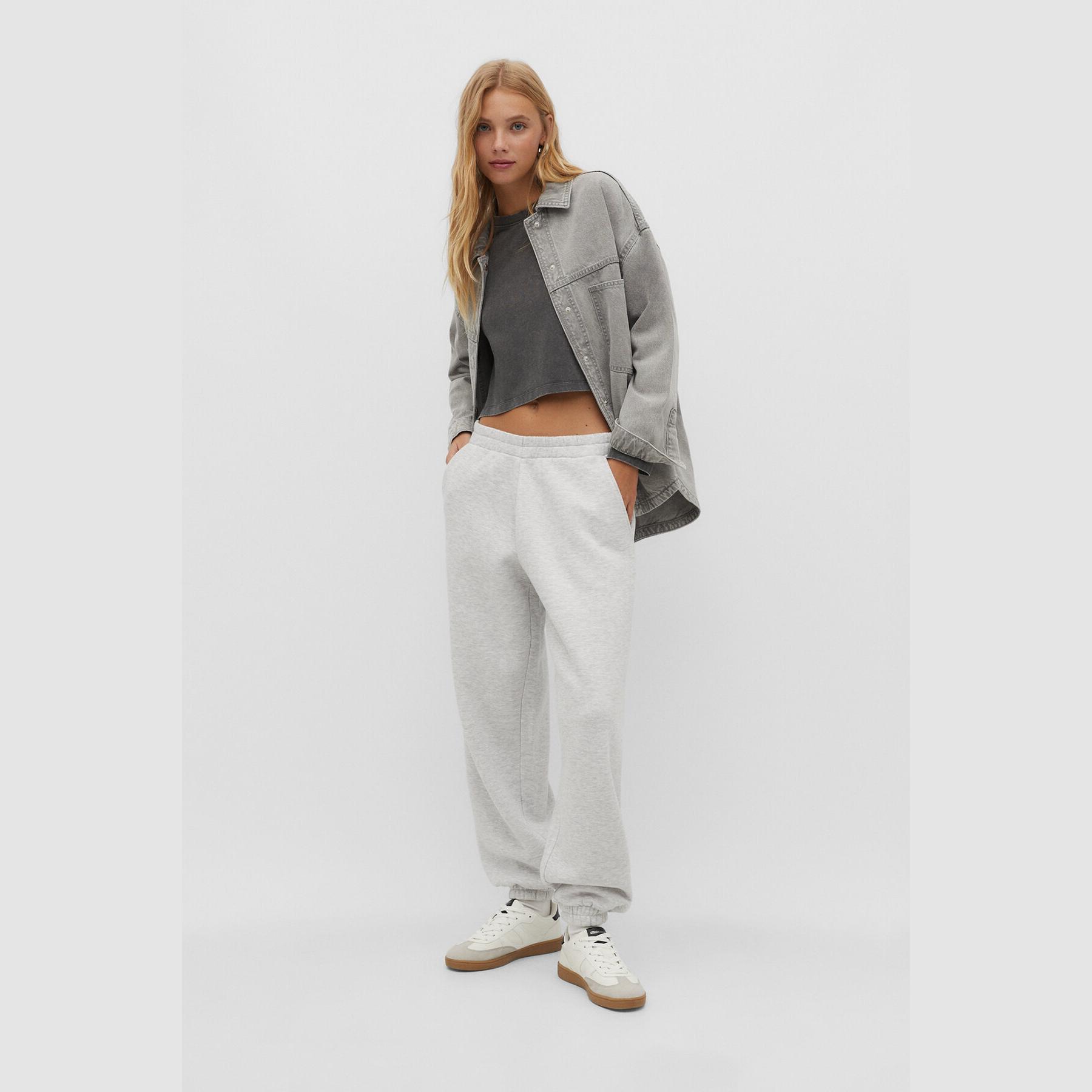 بنطال عملي من Stradivarius بلون رمادي فاتح، مصنوع من خامة متينة بتركيبة 55% بوليستر، 45% قطن، يتميز بقصة Relaxed مريحة، خصر مرتفع، أرجل بقصة Jogger مع أطراف مطاطية، تصميم سادة بدون طبعات، مزود بجيبين جانبيين، بدون أزرار أو سحاب، ملمس داخلي ناعم، مثالي للتنسيق مع سويت شيرت أو تيشيرت لإطلالة كاجوال يومية.