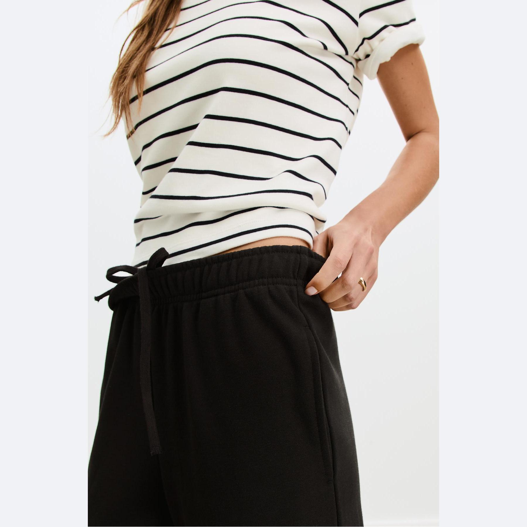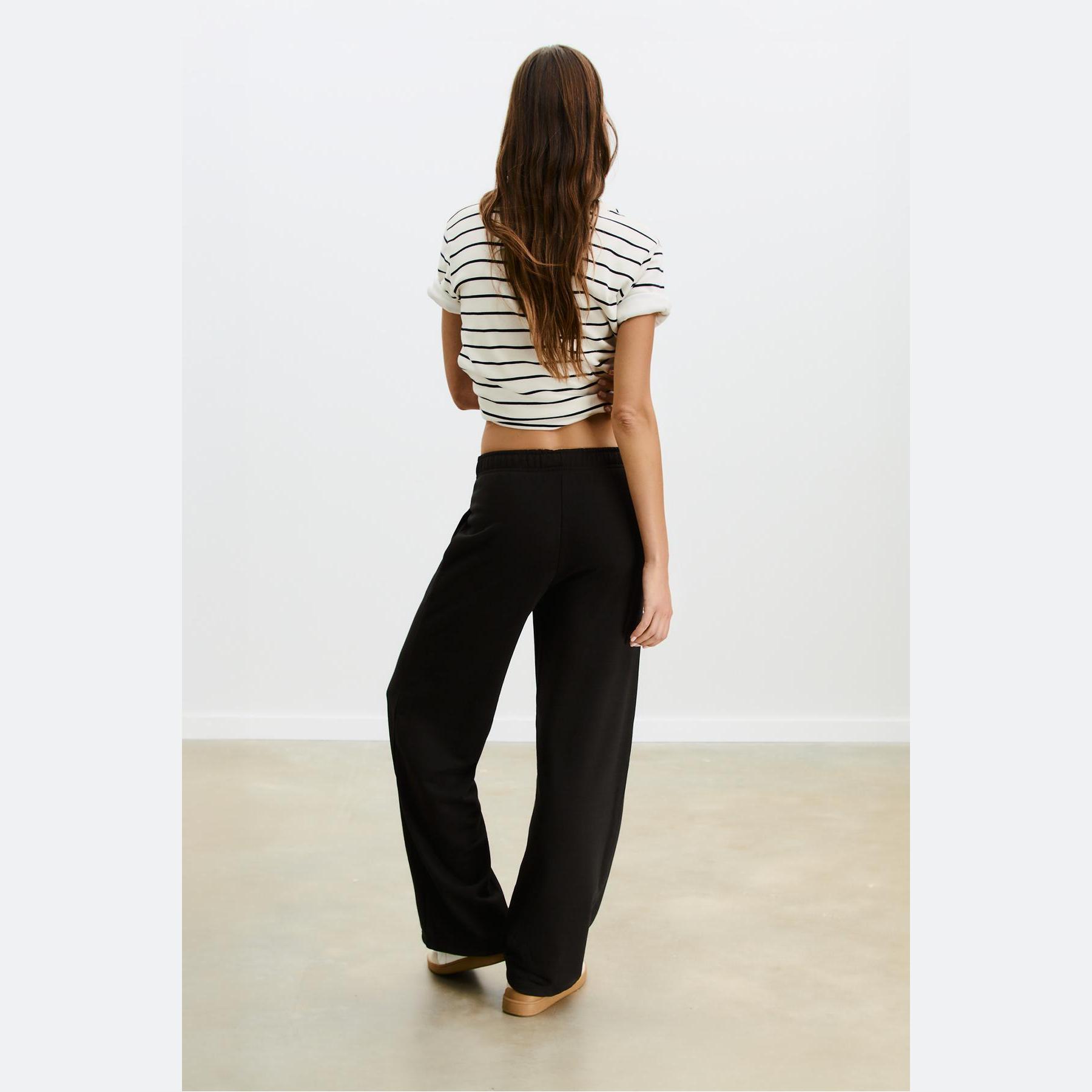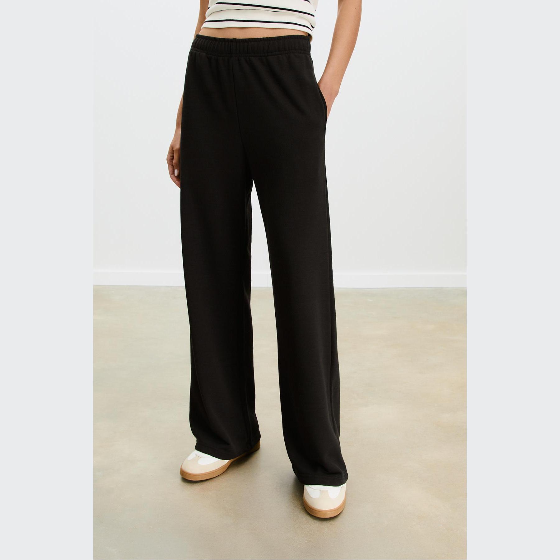 بنطال Jogger واسع الأرجل بخصر متوسط – أسود من Stradivarius