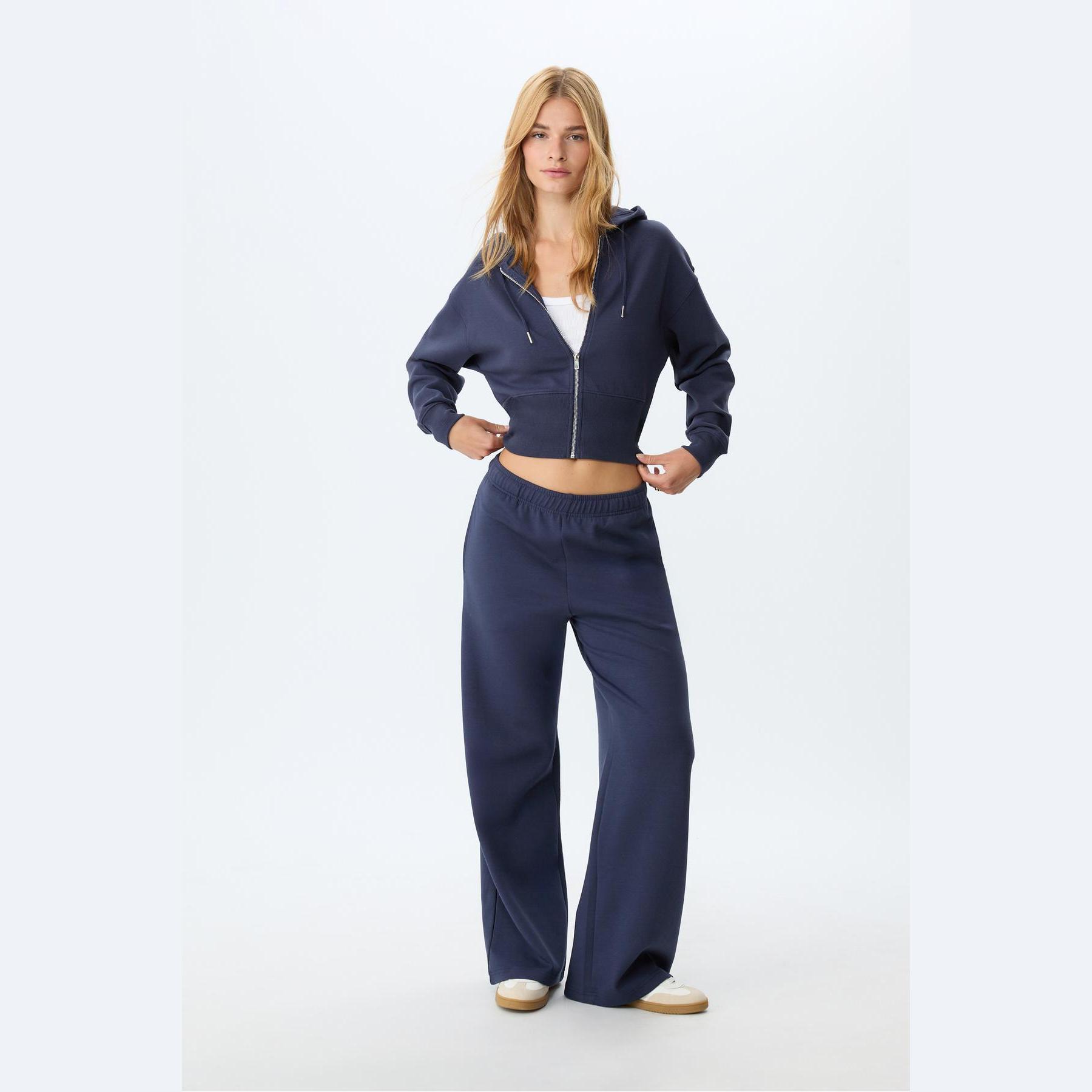 بنطال Jogger واسع الأرجل بخصر متوسط – كحلي من Stradivarius