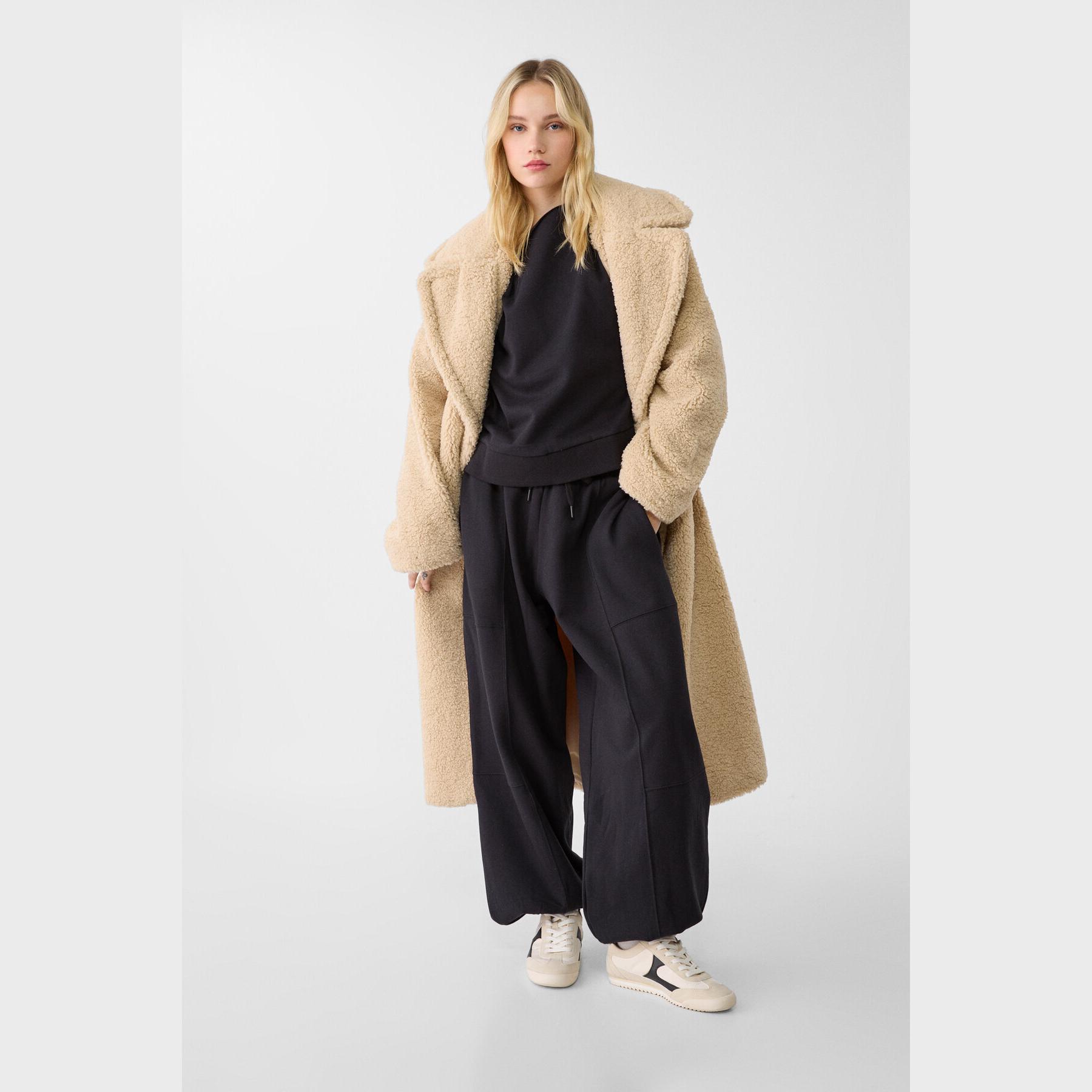 بنطال عملي من Stradivarius بلون أسود، مصنوع من خامة متينة بتركيبة 89% قطن، 11% بوليستر، يتميز بقصة Balloon Fit مريحة، خصر متوسط بخصر مطاطي ورباط داخلي قابل للتعديل، أرجل واسعة تنتهي بأساور مطاطية، تصميم سادة بدون طبعات، مزود بجيبين جانبيين، ملمس داخلي ناعم، بدون بطانة، مع خياطة أمامية تضيف لمسة تصميمية، مثالي للتنسيق مع سويت شيرت أو تيشيرت لإطلالة كاجوال يومية.