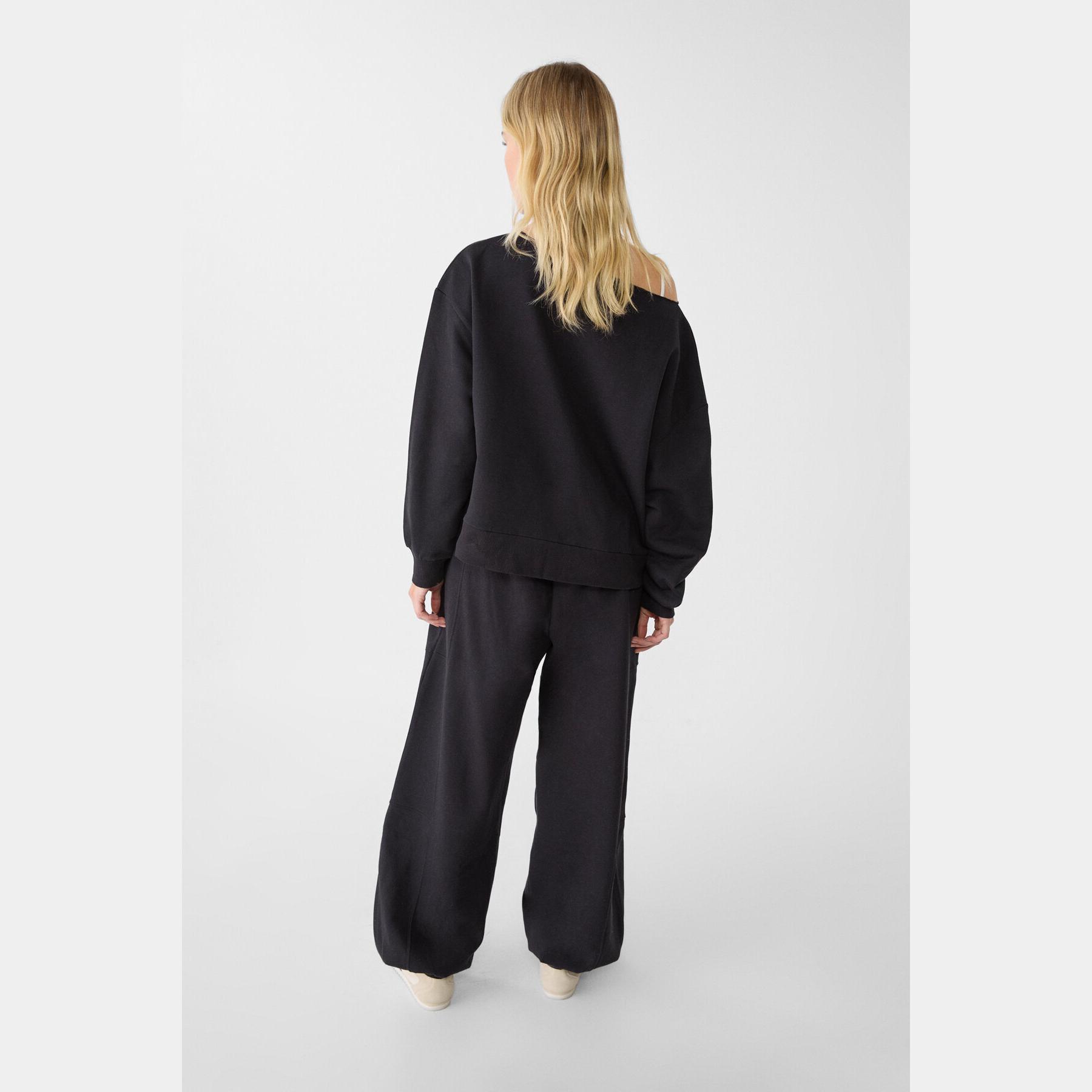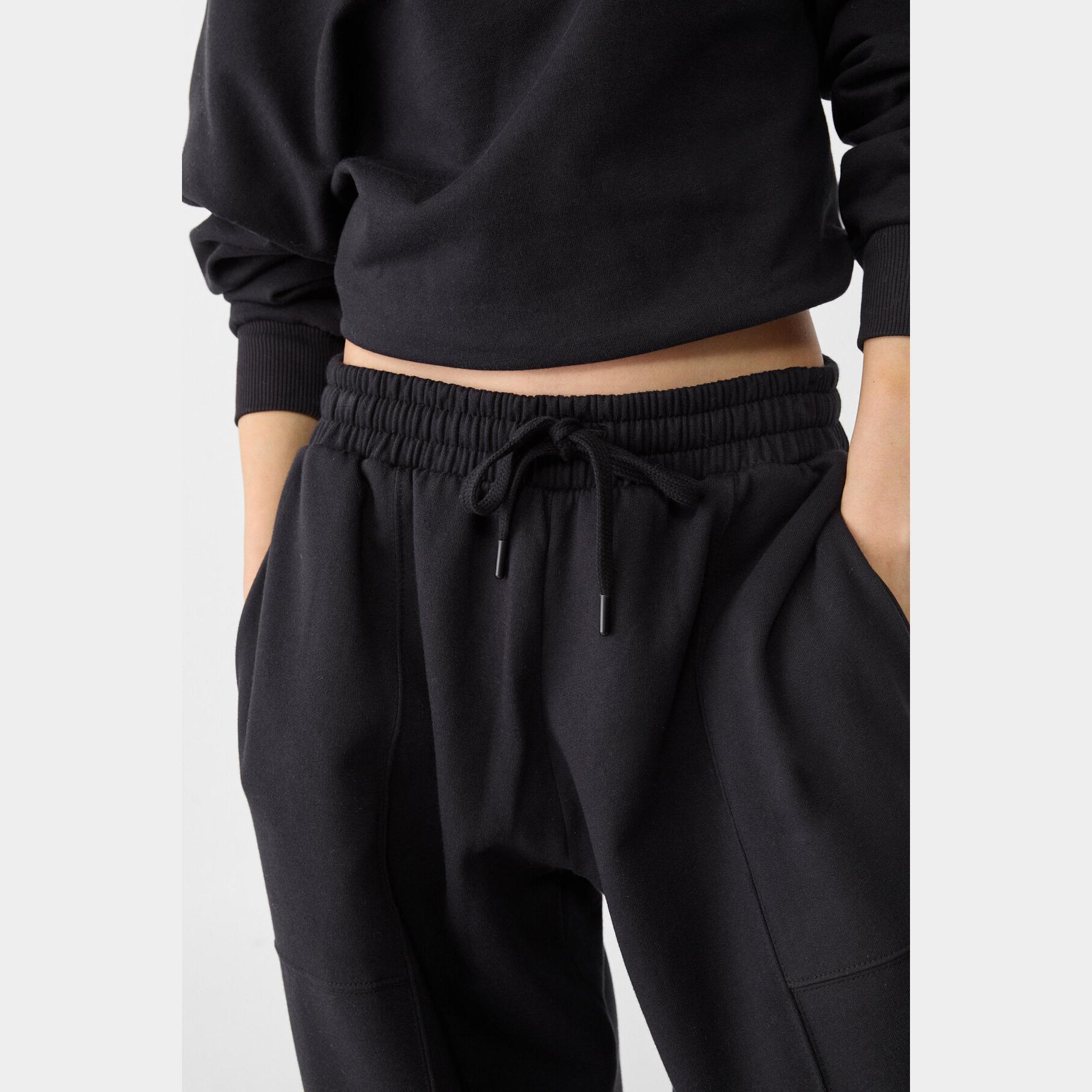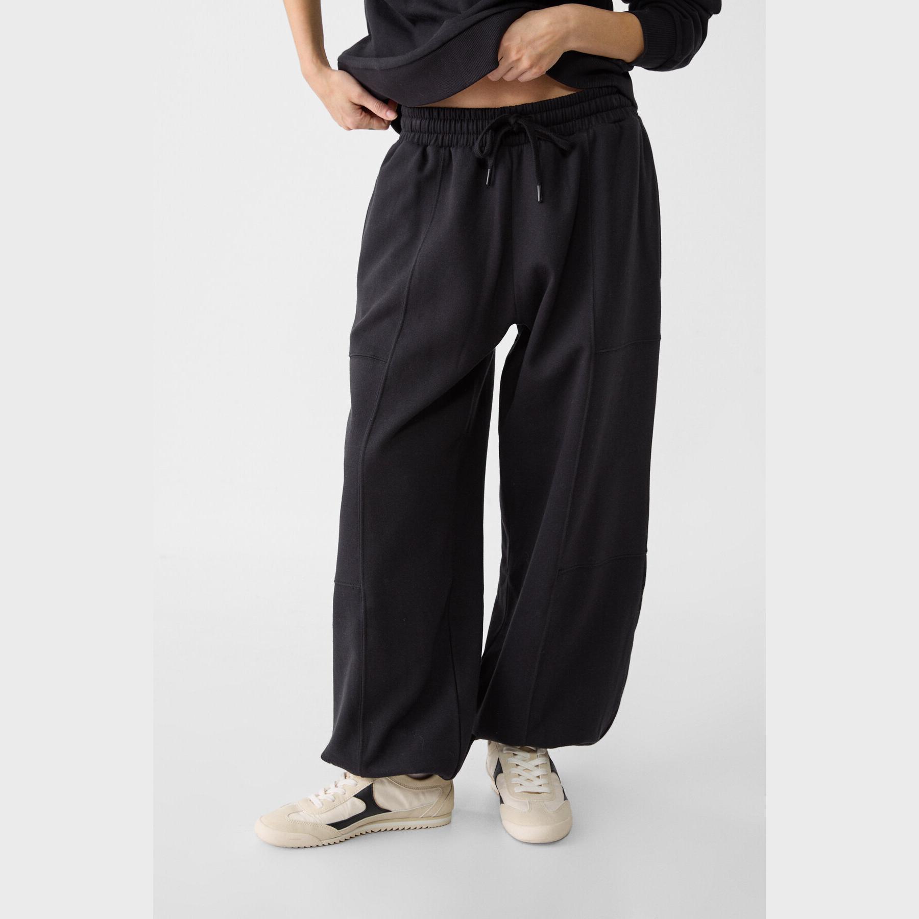 بنطال Jogger بقصة بالون وخامة قطنية – أسود من Stradivarius