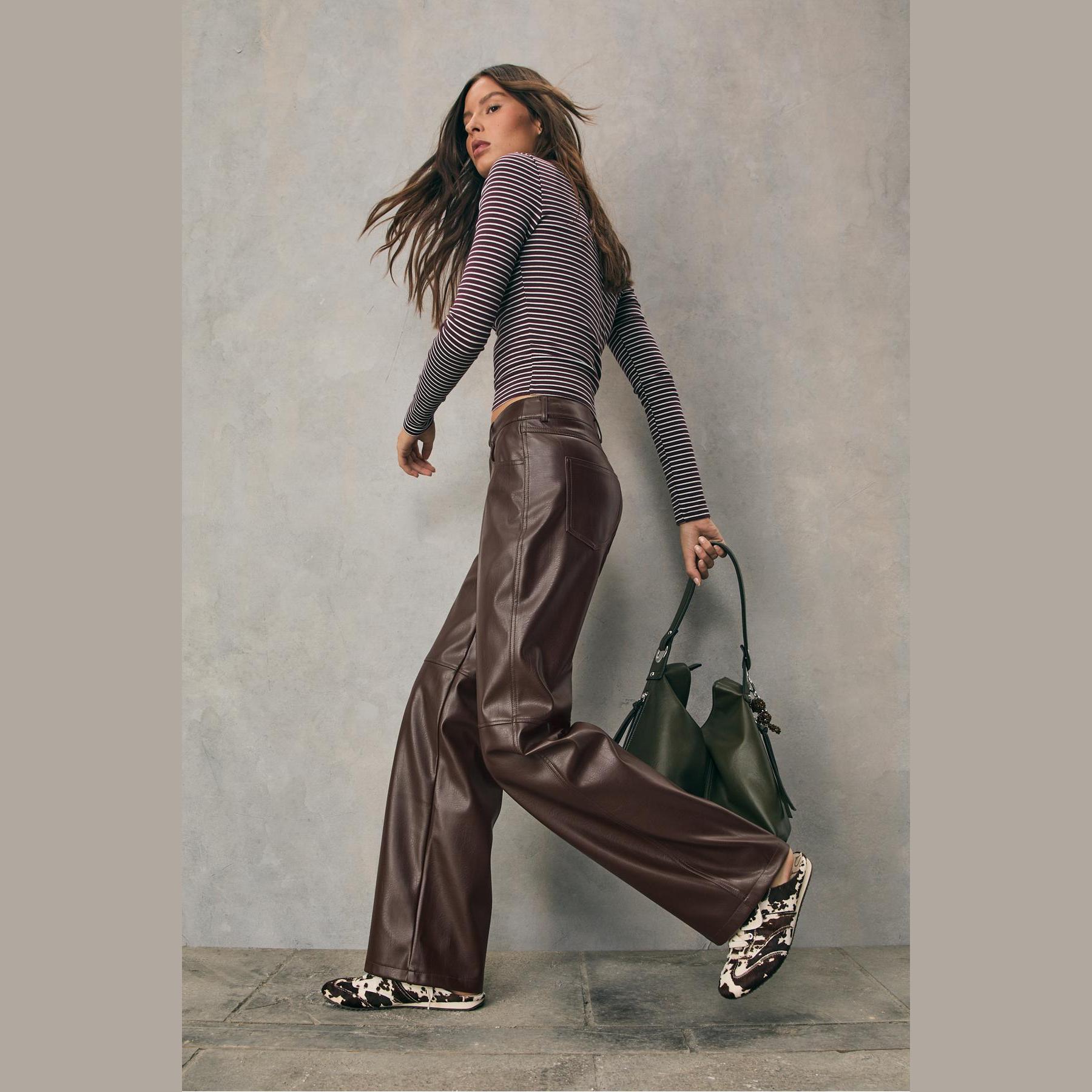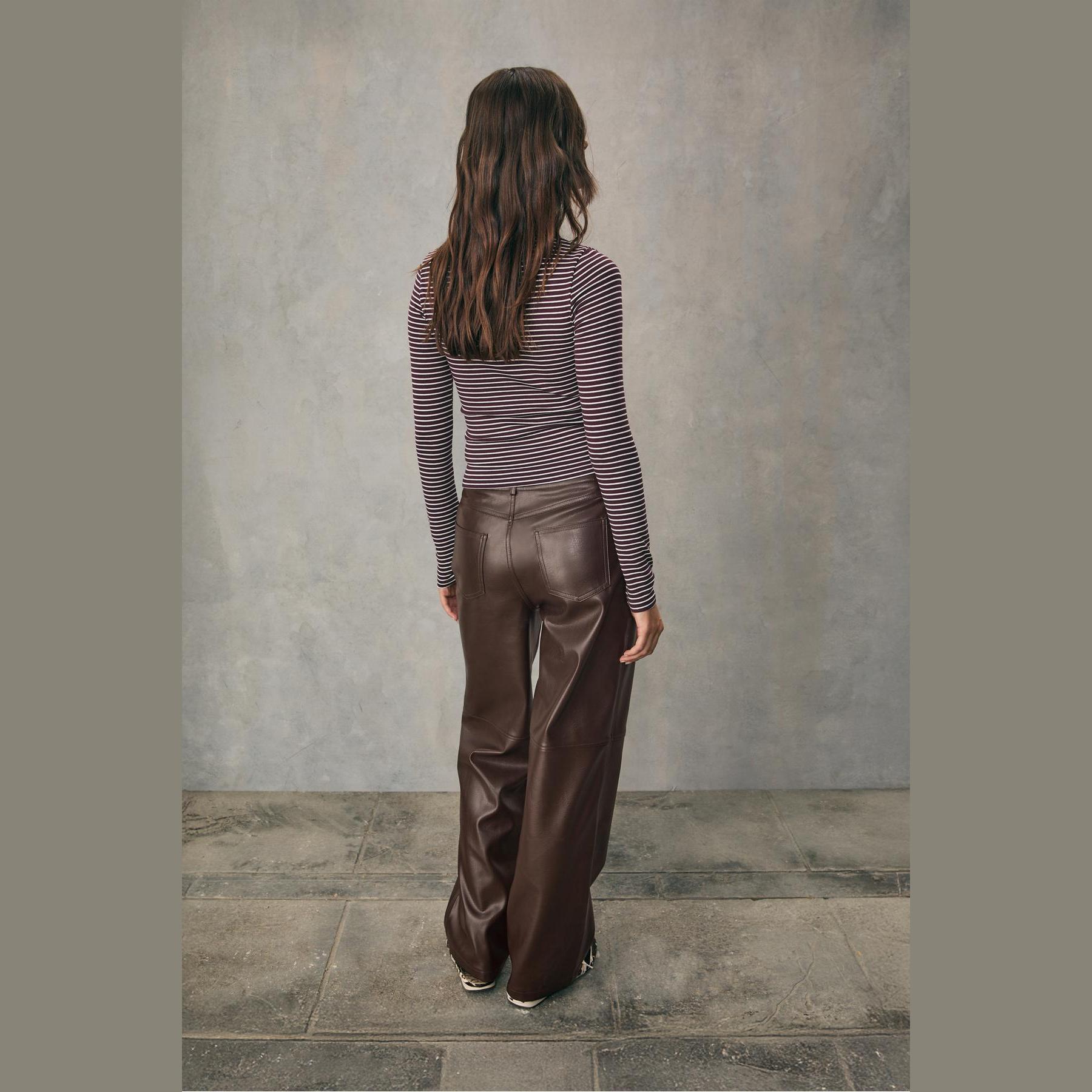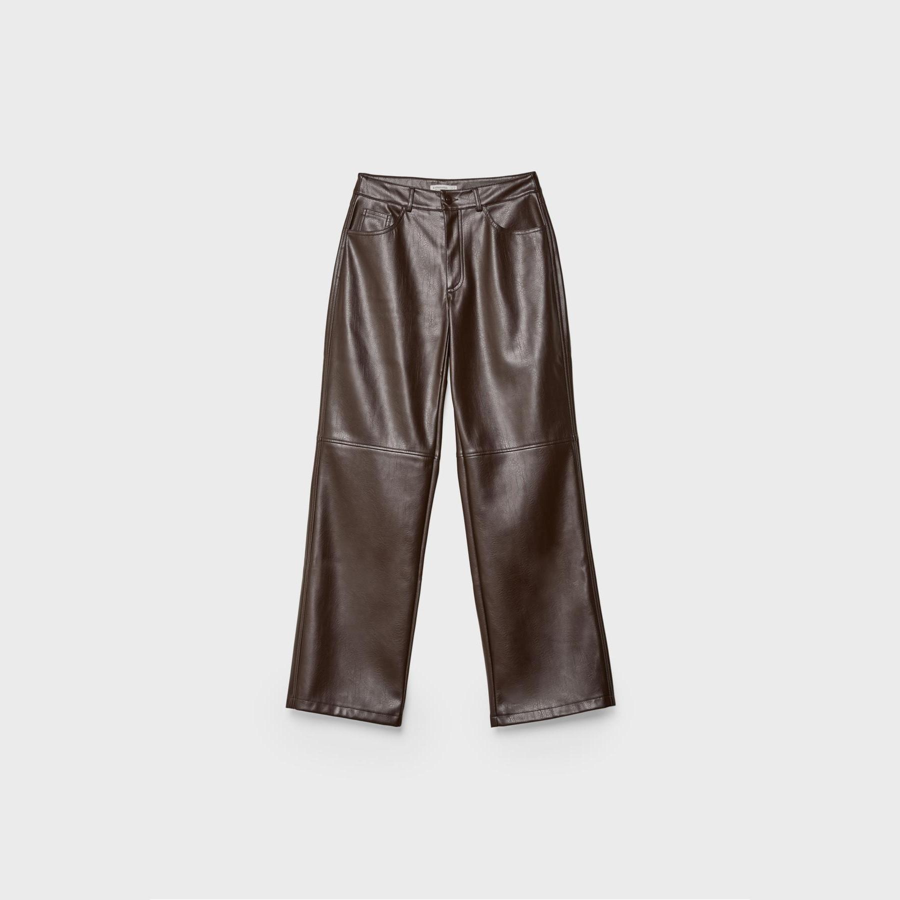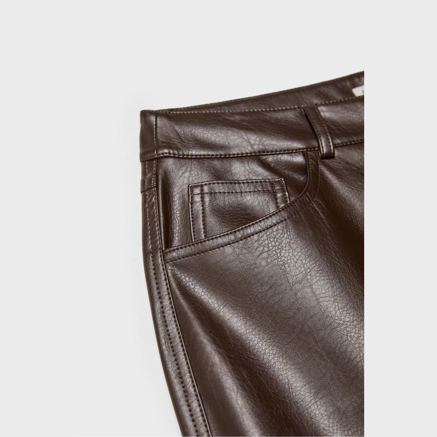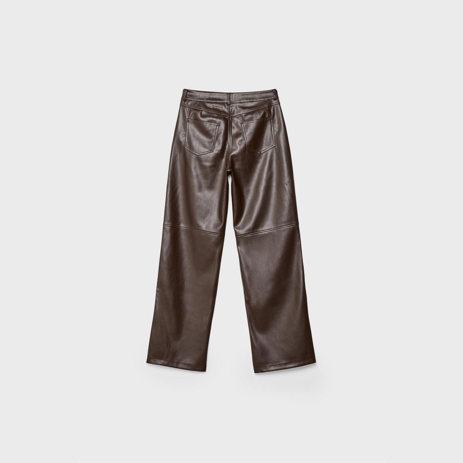 بنطال مستقيم بقماش سني جلد محبب – بني من Stradivarius