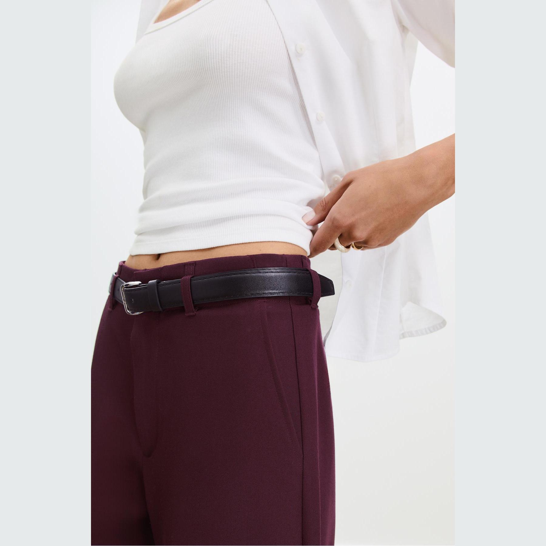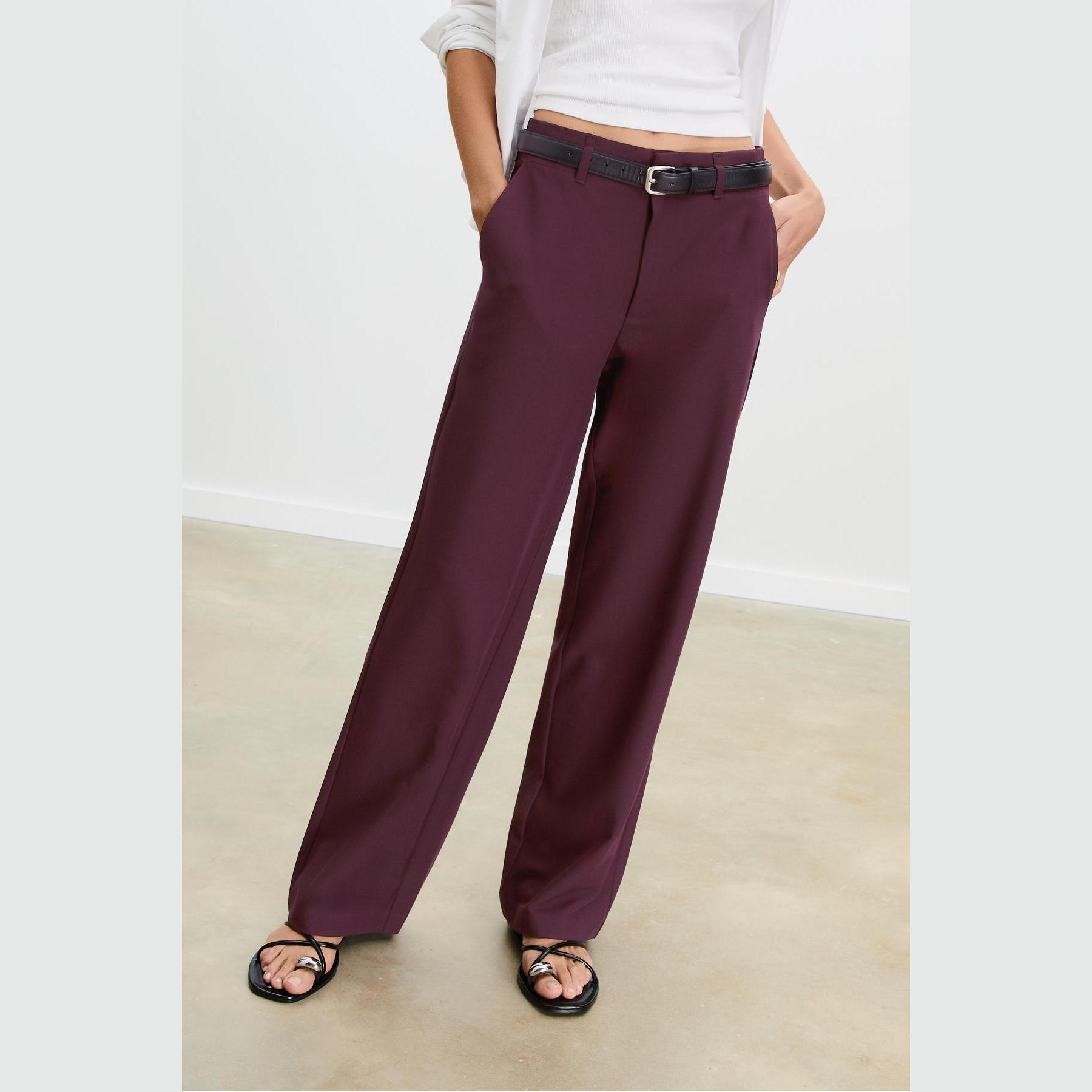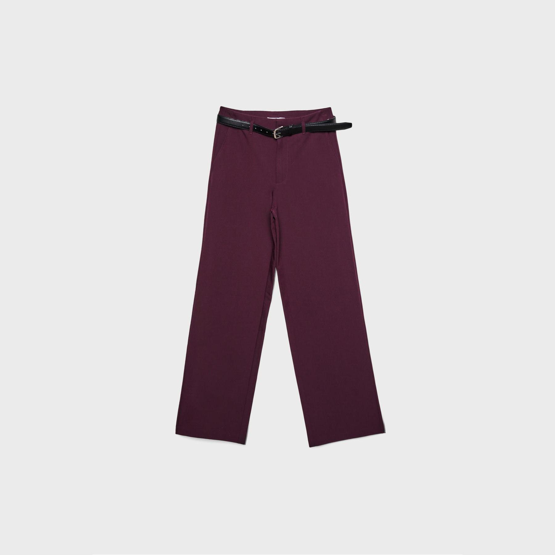 بنطال قماشي مستقيم بقصة دروب كلاسيكية وحزام – بنفسجي من Stradivarius