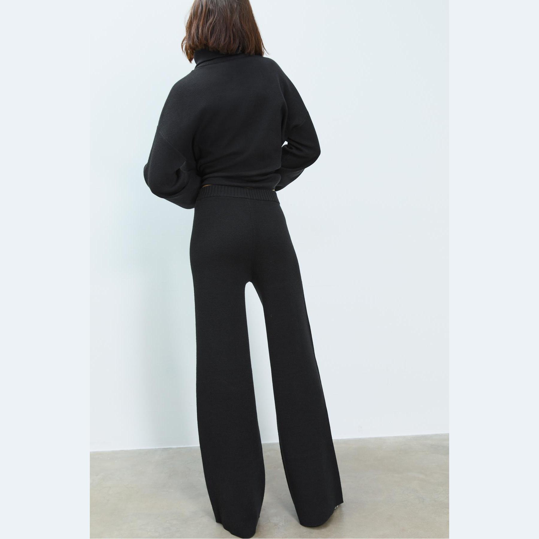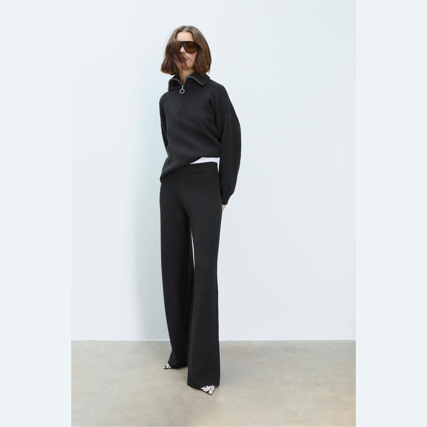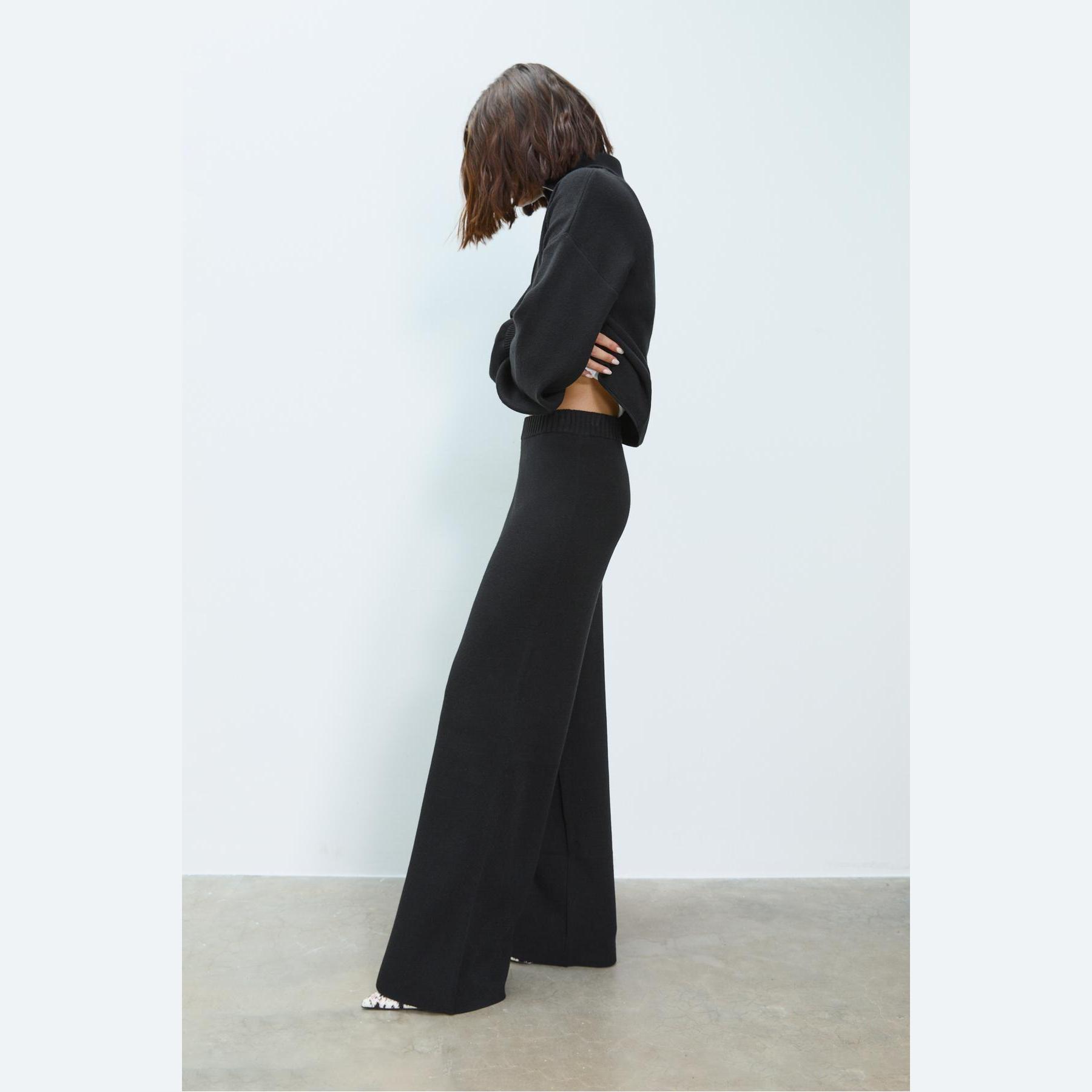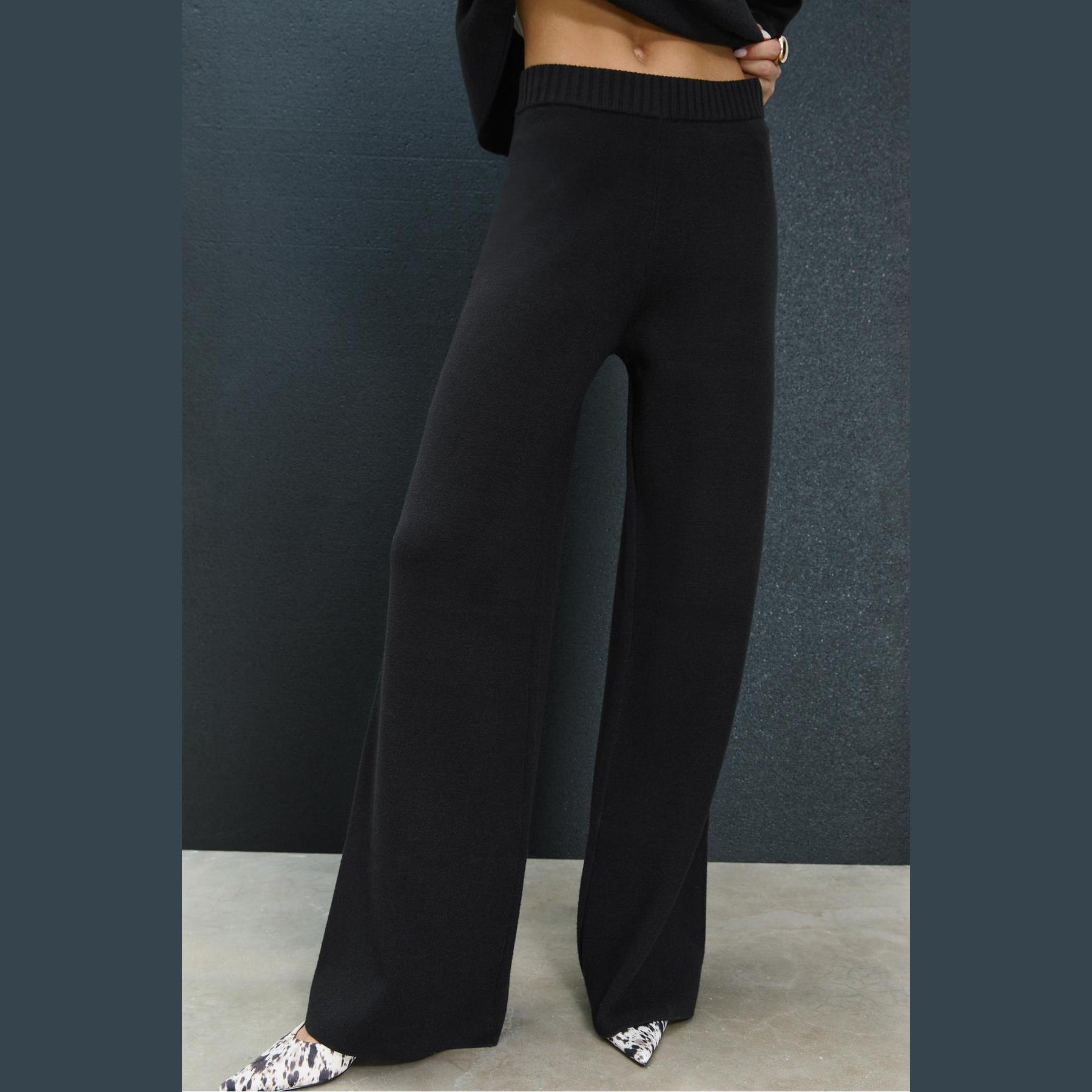بنطال Triko طويل وواسع بملمس ناعم – أسود من Stradivarius