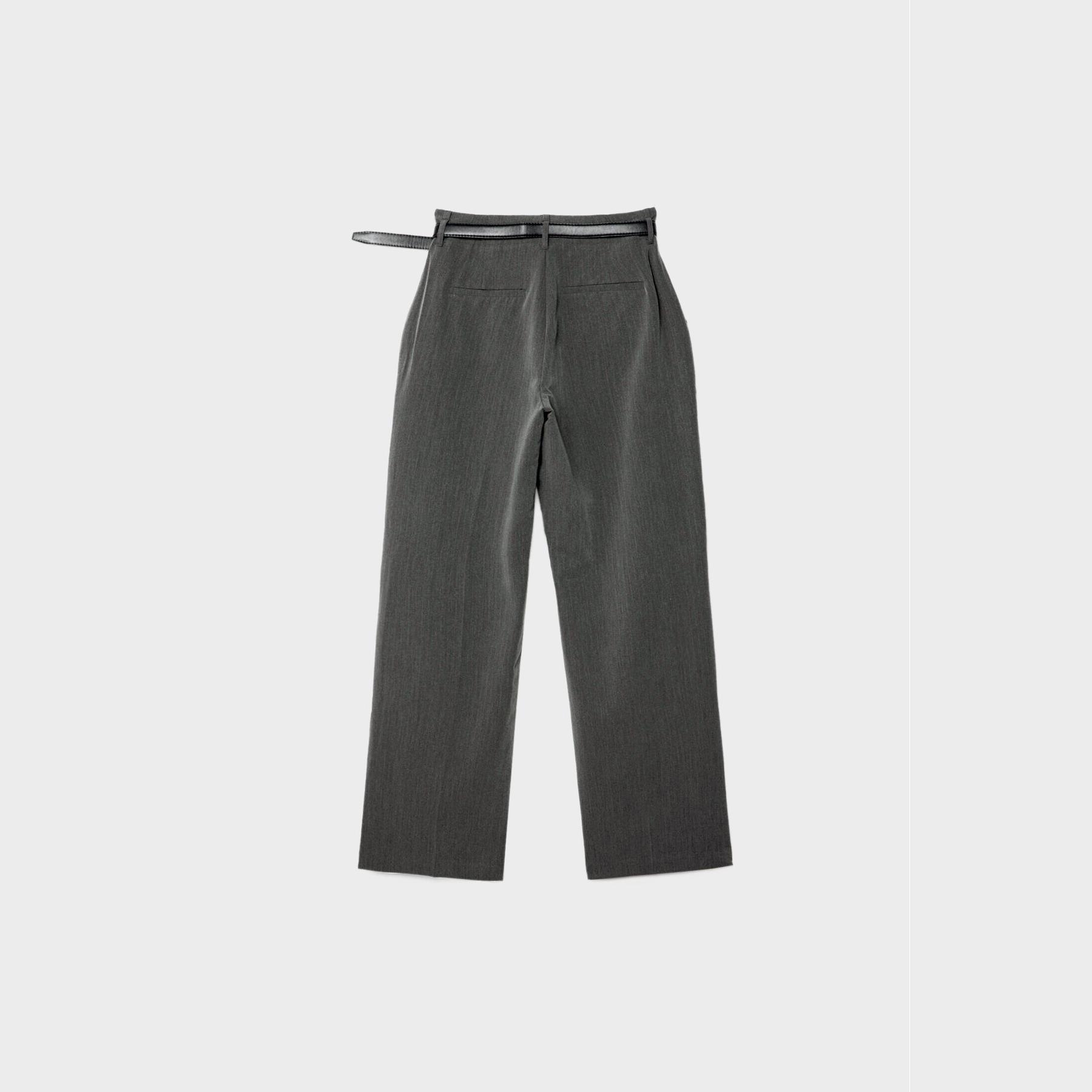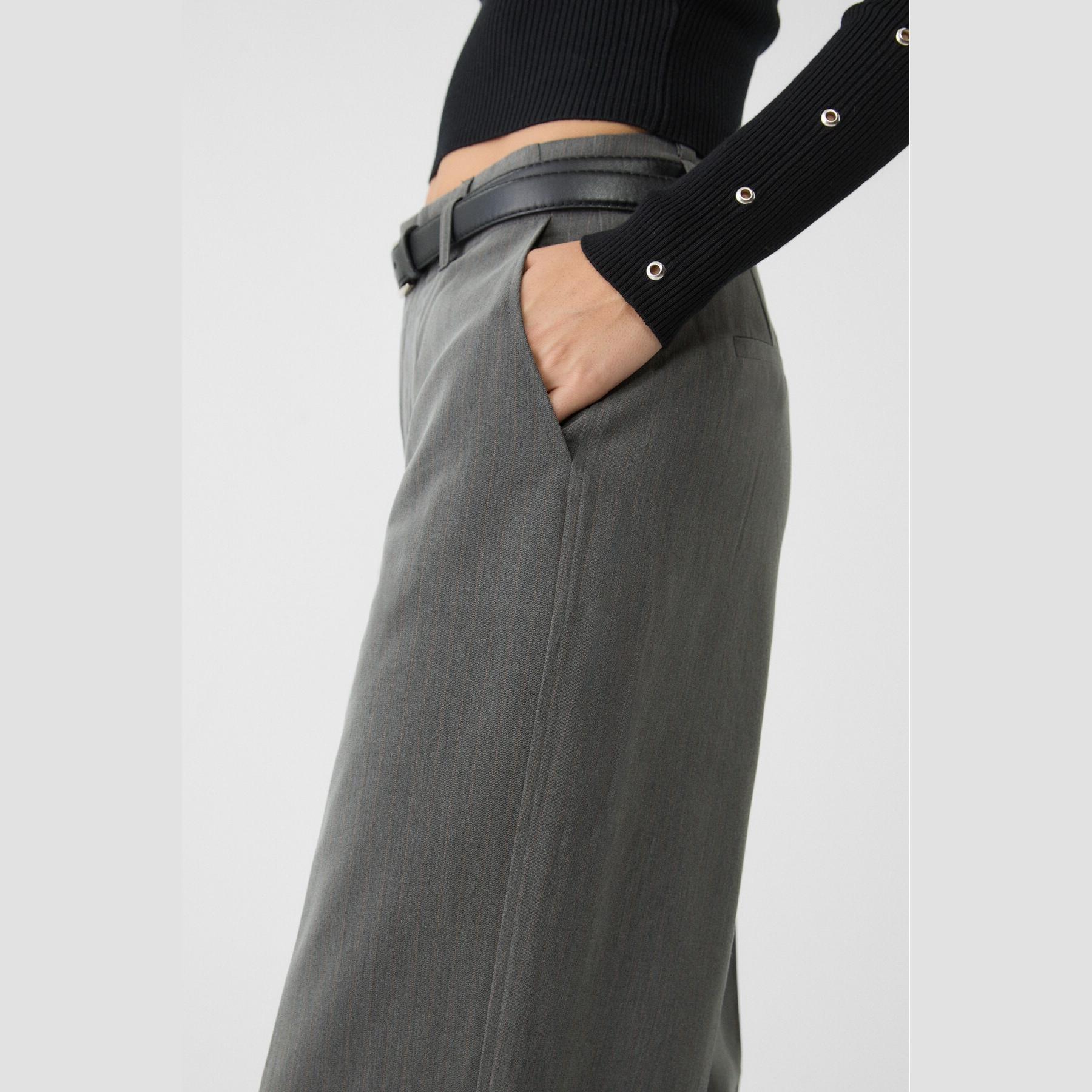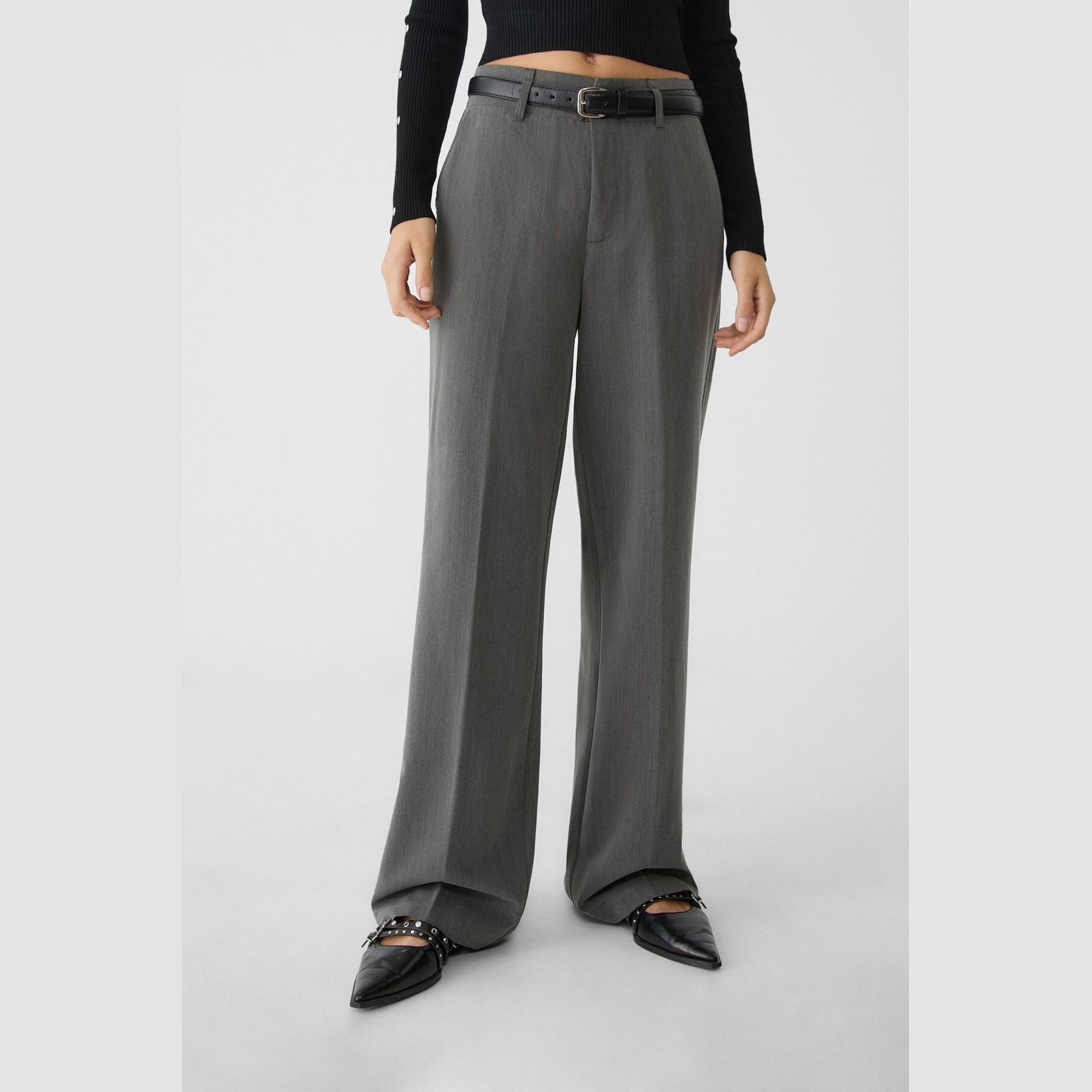بنطال قماشي مستقيم بقصة دروب مع حزام – رمادي من Stradivarius
