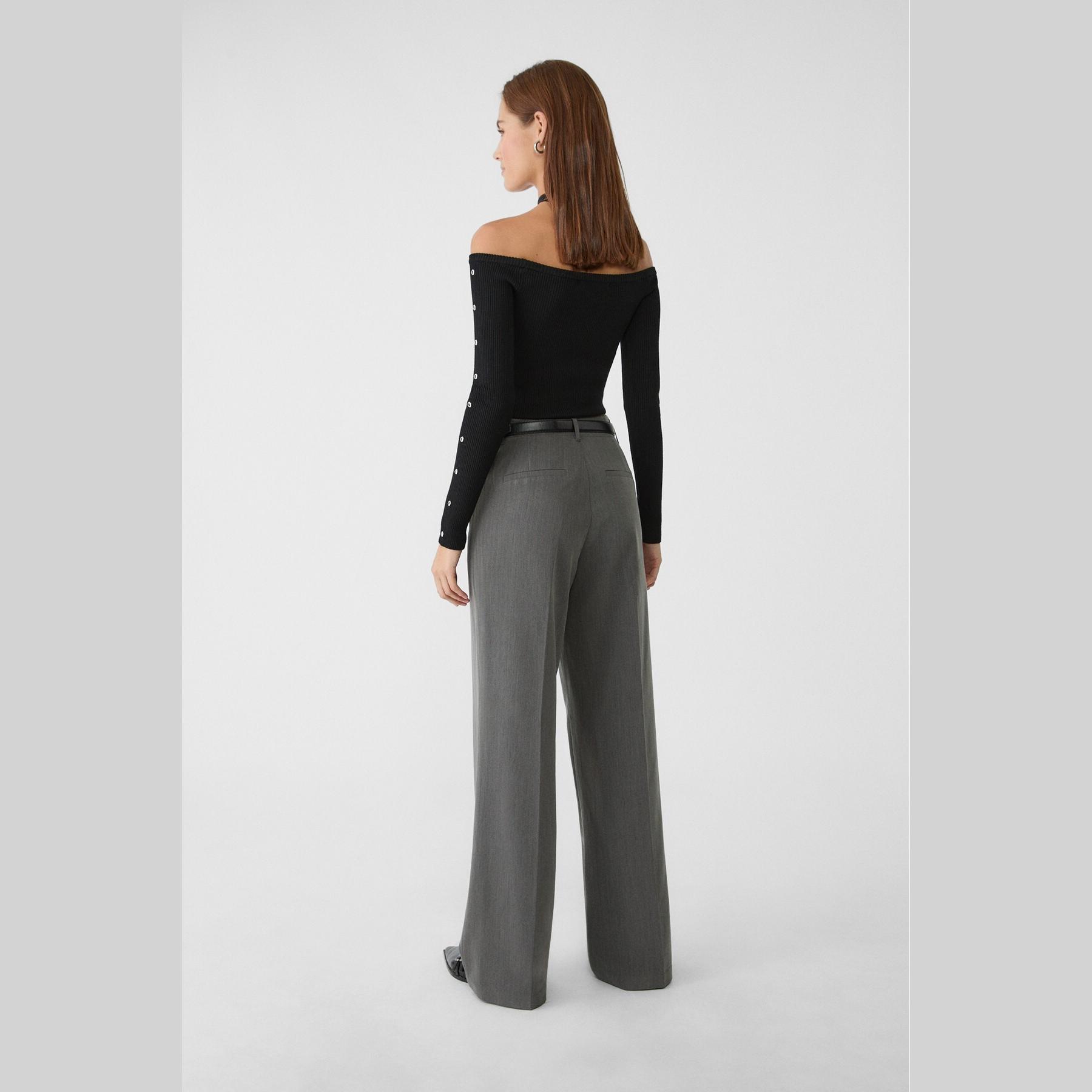 بنطال أنيق من Stradivarius بلون رمادي، مصنوع من خامة مرنة بتركيبة 78% بوليستر، 16% فيسكوز، 6% إيلاستان، يتميز بقصة Straight Fit مريحة، خصر مرتفع مع حزام قابل للإزالة وتفاصيل إبزيم معدني، إغلاق أمامي بسحاب، زر، دبوس داخلي وكبسة معدنية، مزود بجيبين أماميين وجيوب خلفية وهمية، تصميم سادة بدون طبعات، ملمس داخلي ناعم، بدون بطانة، مثالي للتنسيق مع قميص أو بلوزة لإطلالة مكتبية أو أنيقة.