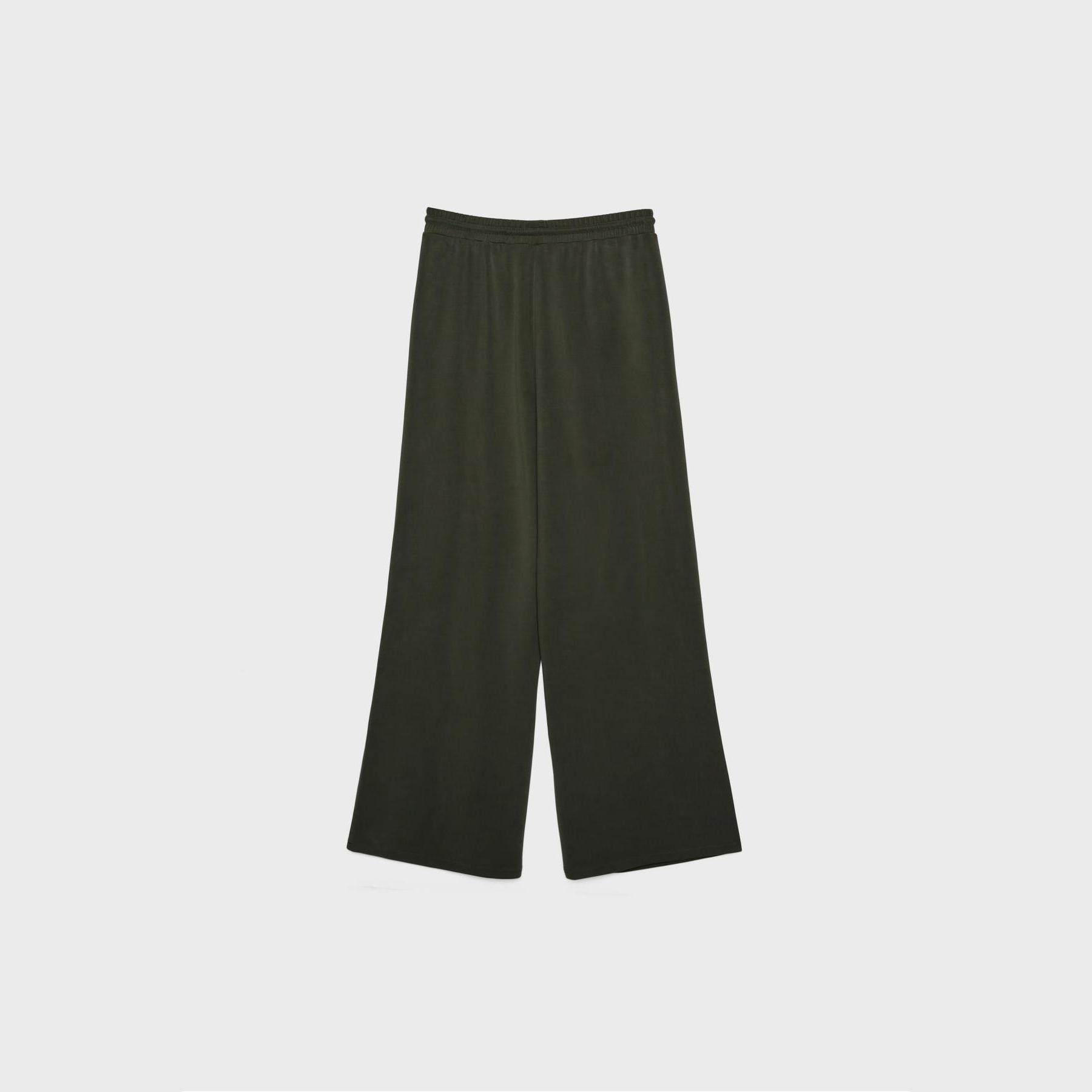 بنطال Palazzo بملمس ناعم وقصة واسعة – أخضر داكن من Stradivarius