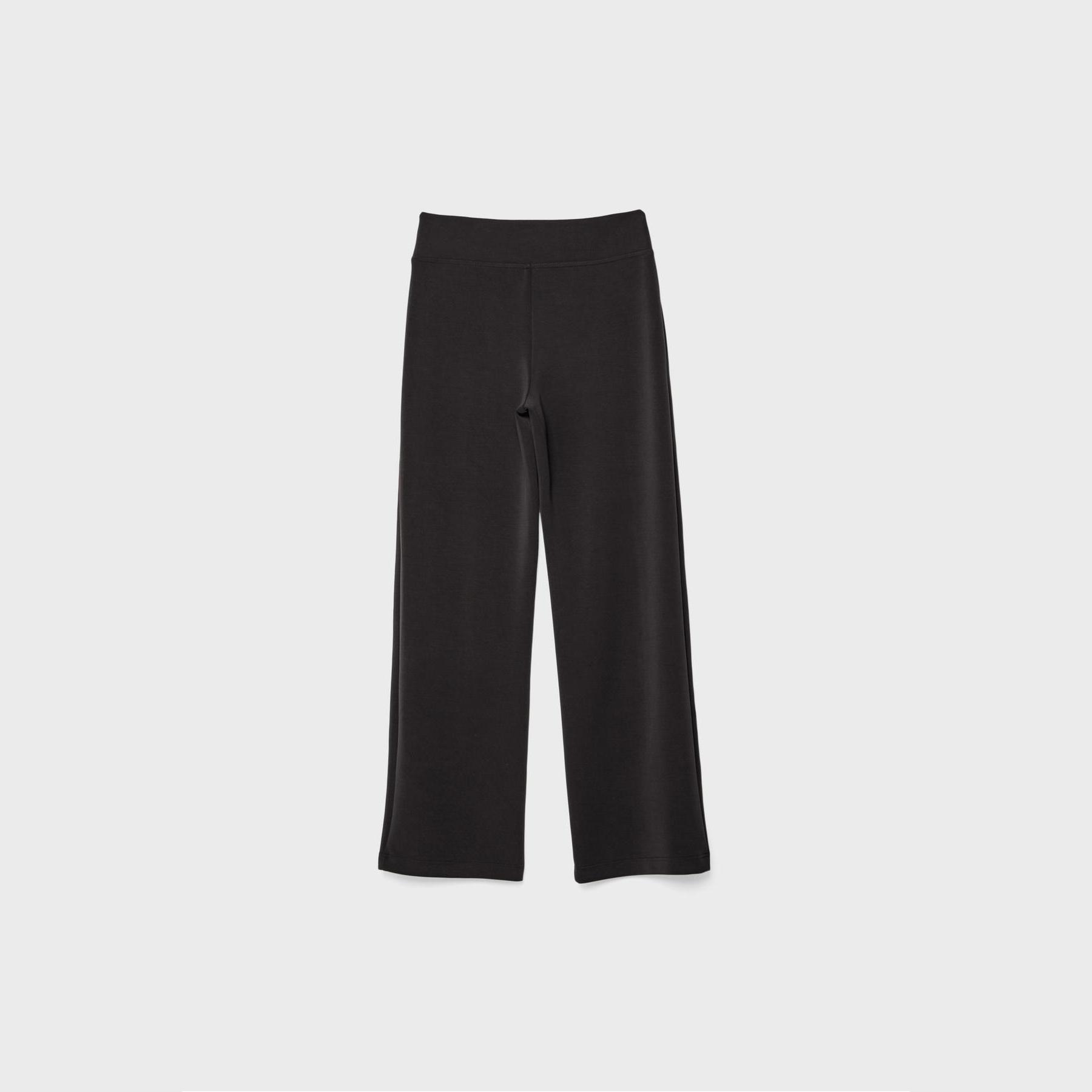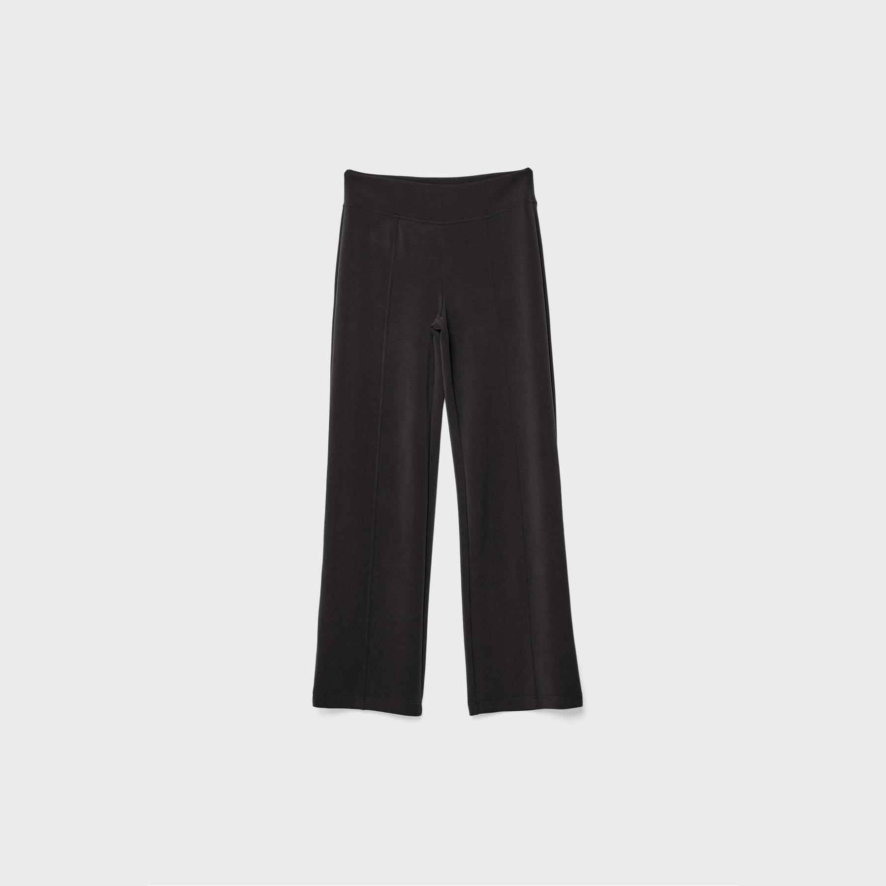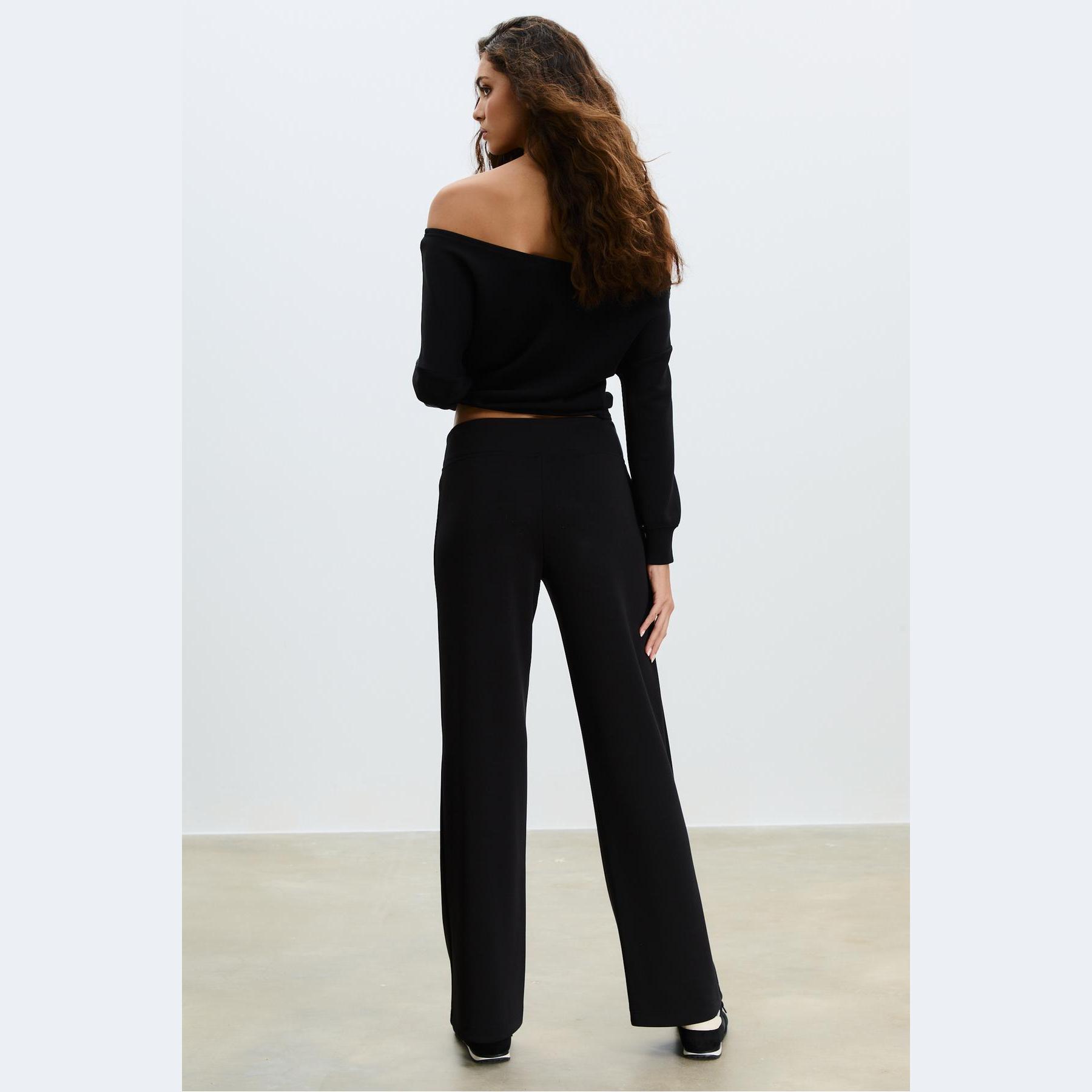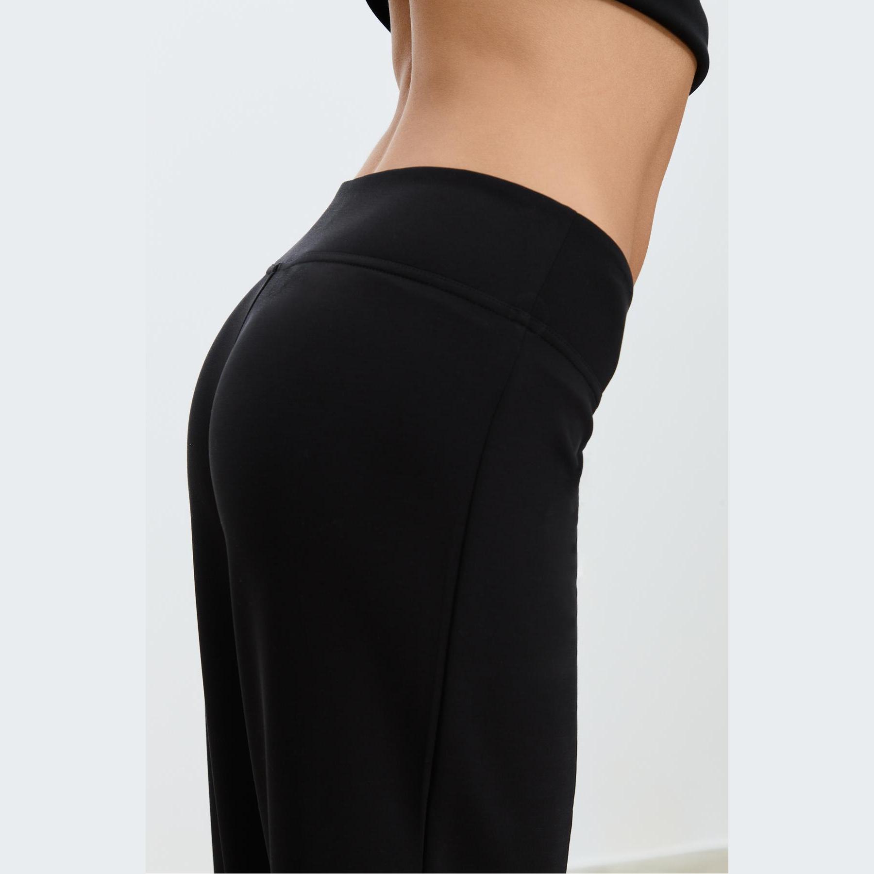 بنطال عملي من Stradivarius بلون أسود، مصنوع من خامة ناعمة بتركيبة 49% مودال، 41% بوليستر، 10% إيلاستان، يتميز بقصة مستقيمة، خصر متوسط بخصر مطاطي ورباط داخلي قابل للتعديل، أرجل مستقيمة بدون أساور، تصميم سادة مع تفاصيل نيرفور أمامية تضيف لمسة تصميمية، مزود بجيبين جانبيين، ملمس داخلي ناعم، بدون بطانة، مثالي للتنسيق مع تيشيرت أو كنزة لإطلالة كاجوال ناعمة.