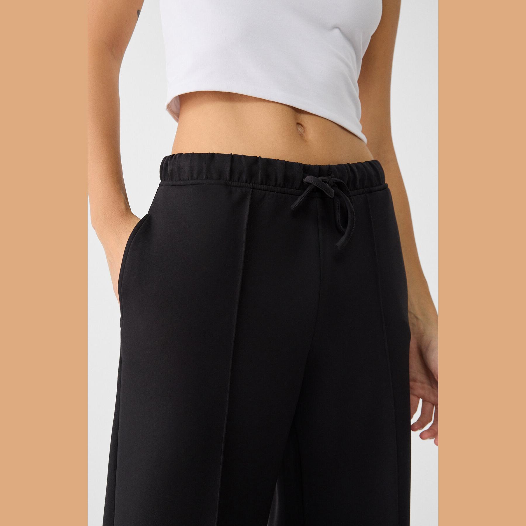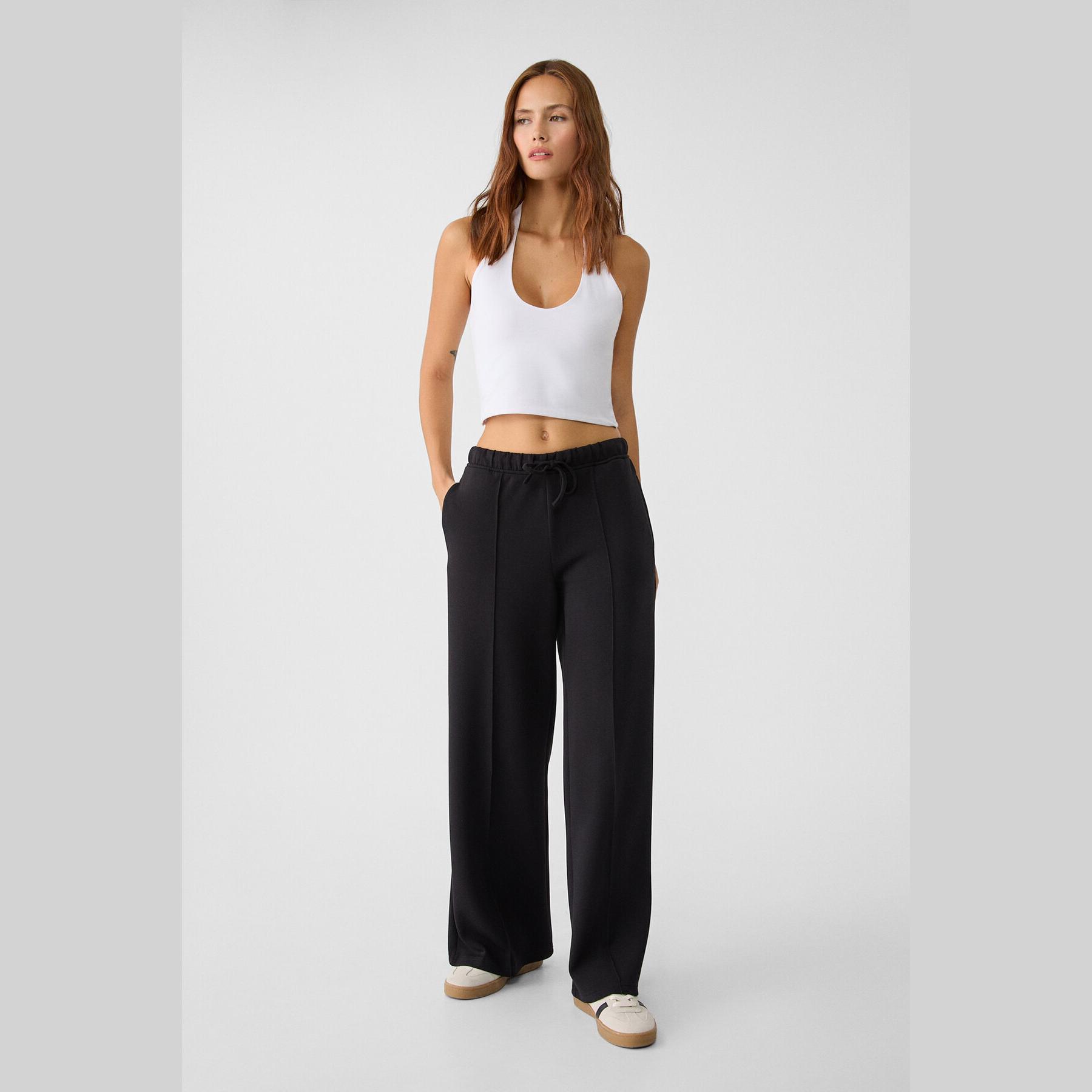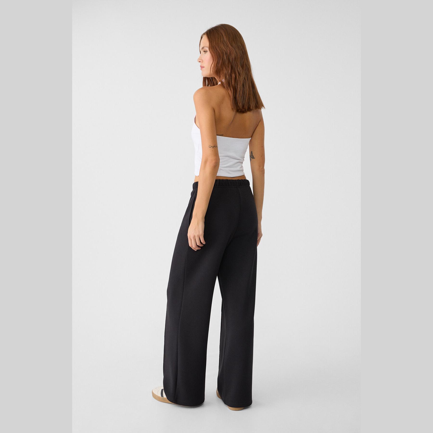 بنطال واسع بملمس ناعم وتفاصيل خياطة أمامية – أسود من Stradivarius