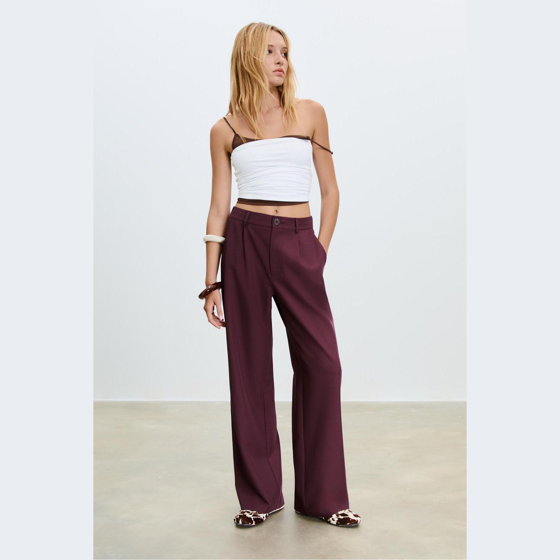 بنطال كلاسيكي مستقيم بقصة دروب – بنفسجي من Stradivarius