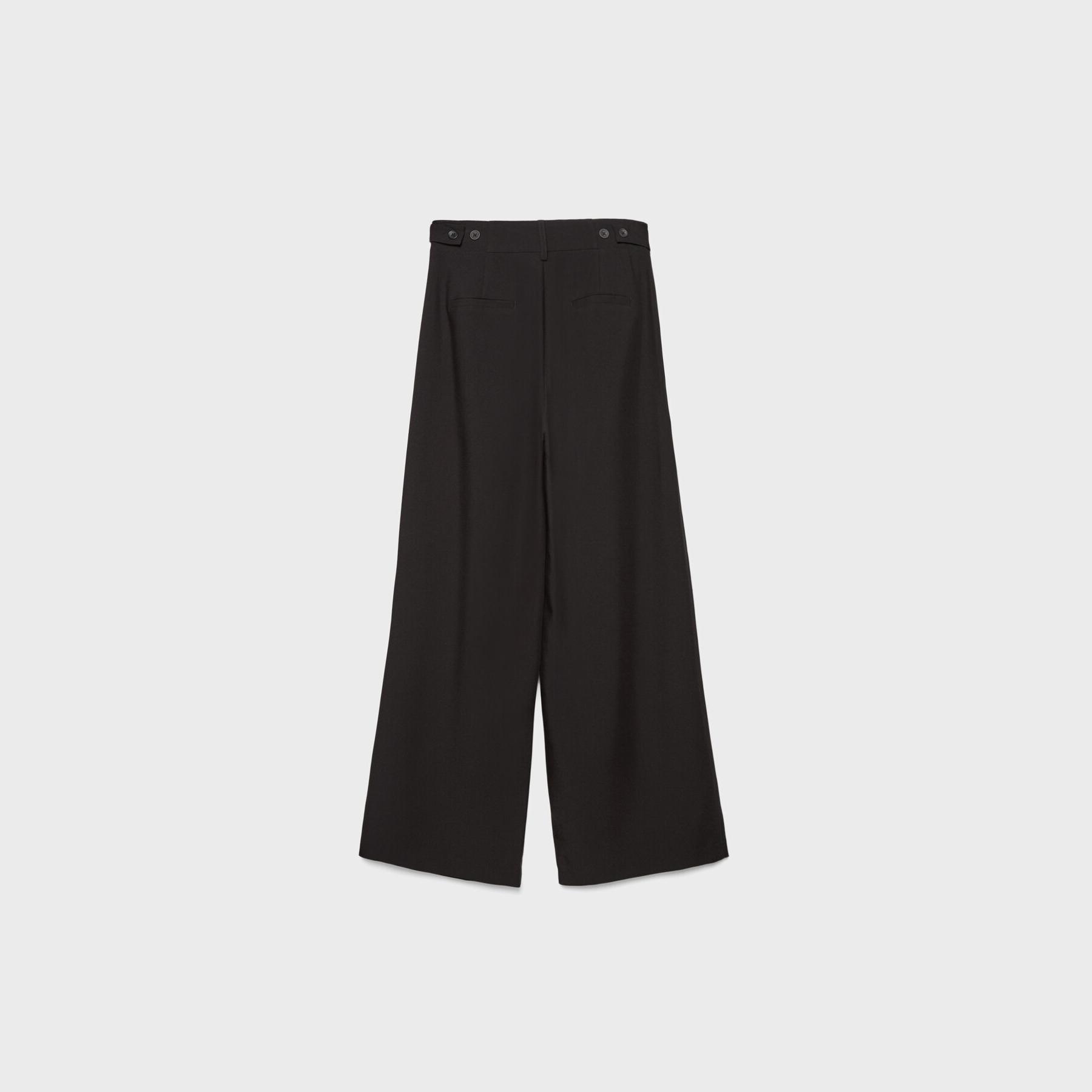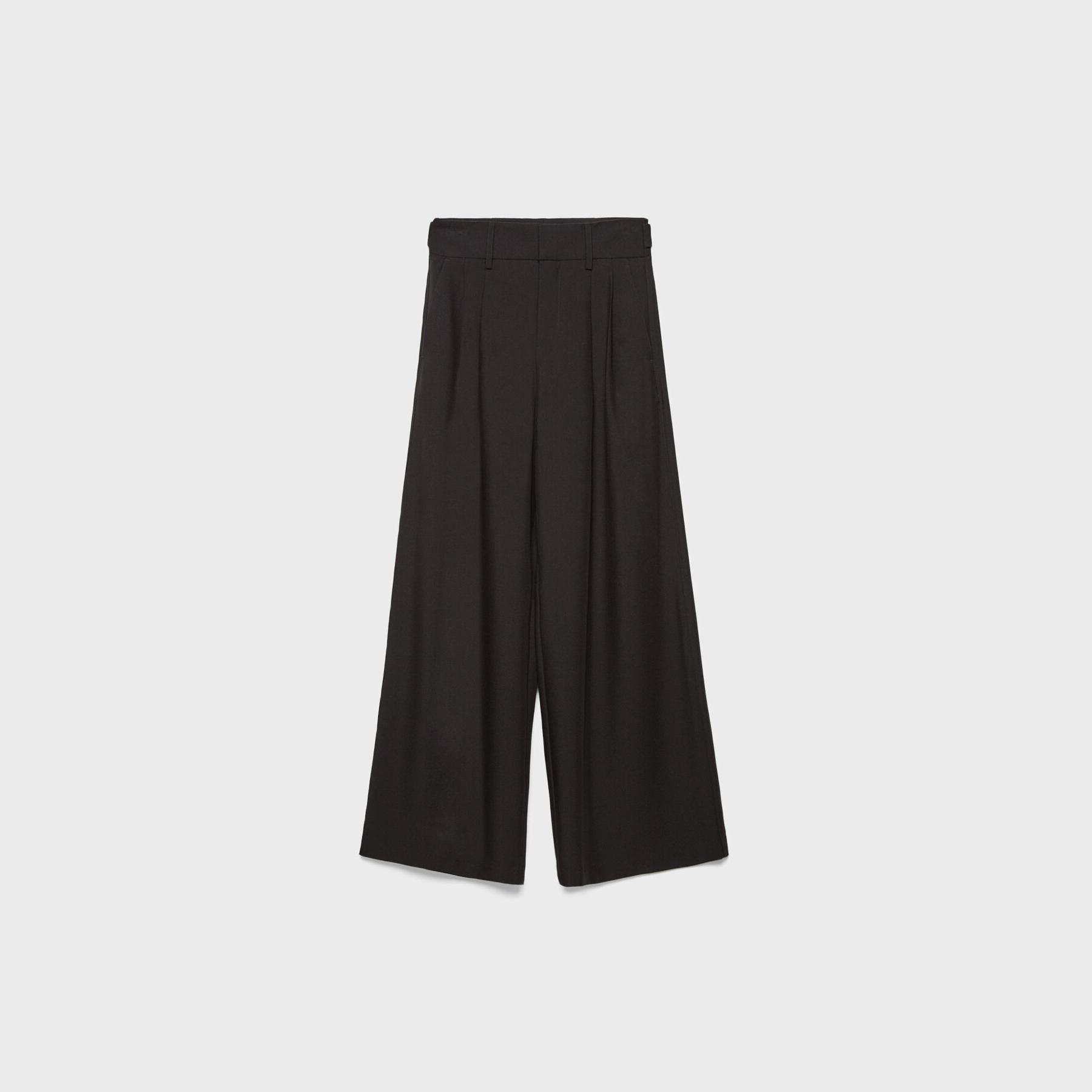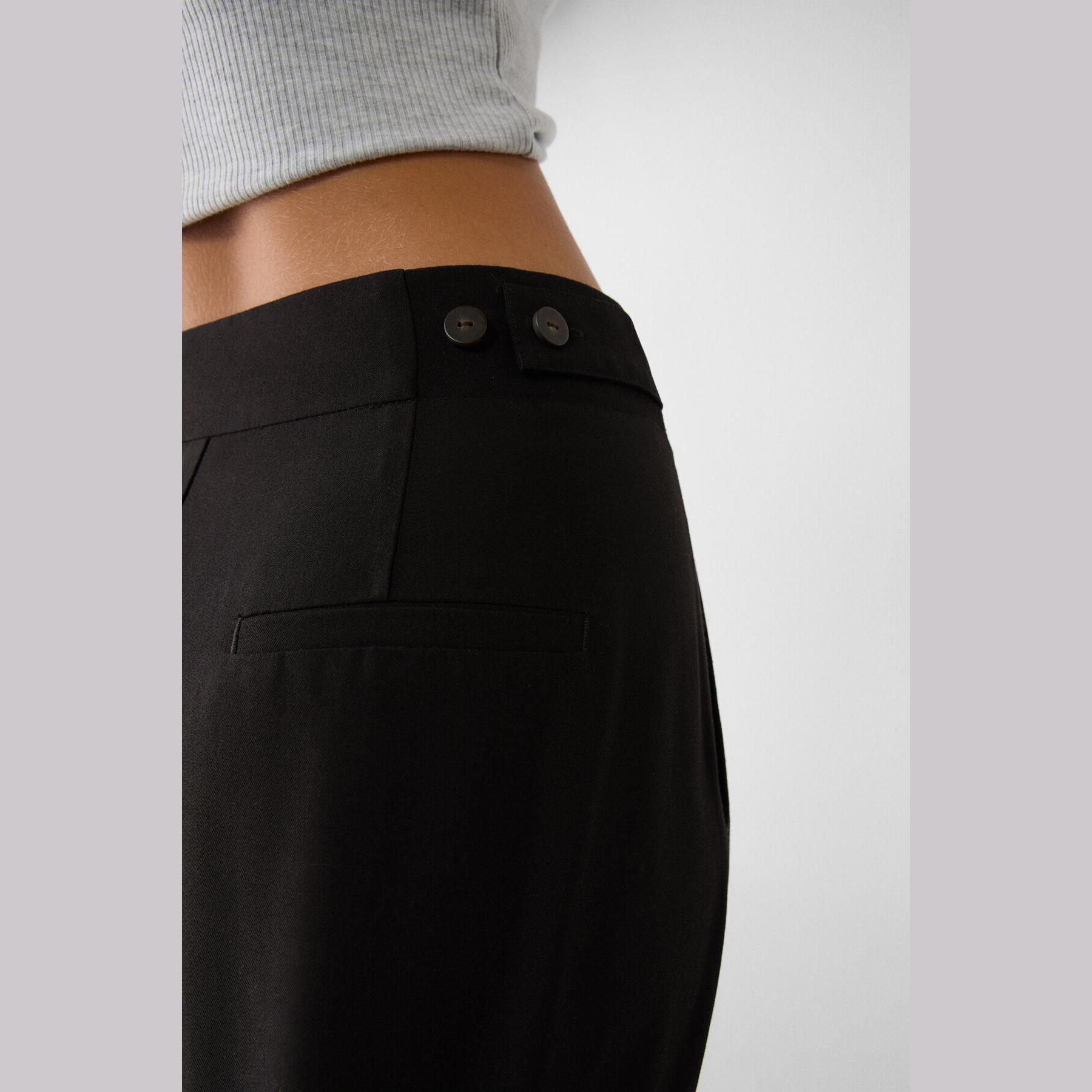 بنطال عملي من Stradivarius بلون أسود، مصنوع من خامة ناعمة بتركيبة 100% بوليستر، يتميز بقصة Oversize واسعة جدًا، خصر متوسط مع خصر مطاطي، أرجل طويلة وفضفاضة بقصة Extra Wide Leg، تصميم سادة بدون طبعات، مزود بجيبين جانبيين، بدون بطانة، ملمس داخلي ناعم، مثالي للتنسيق مع تيشيرت أو توب قصير لإطلالة كاجوال عصرية.