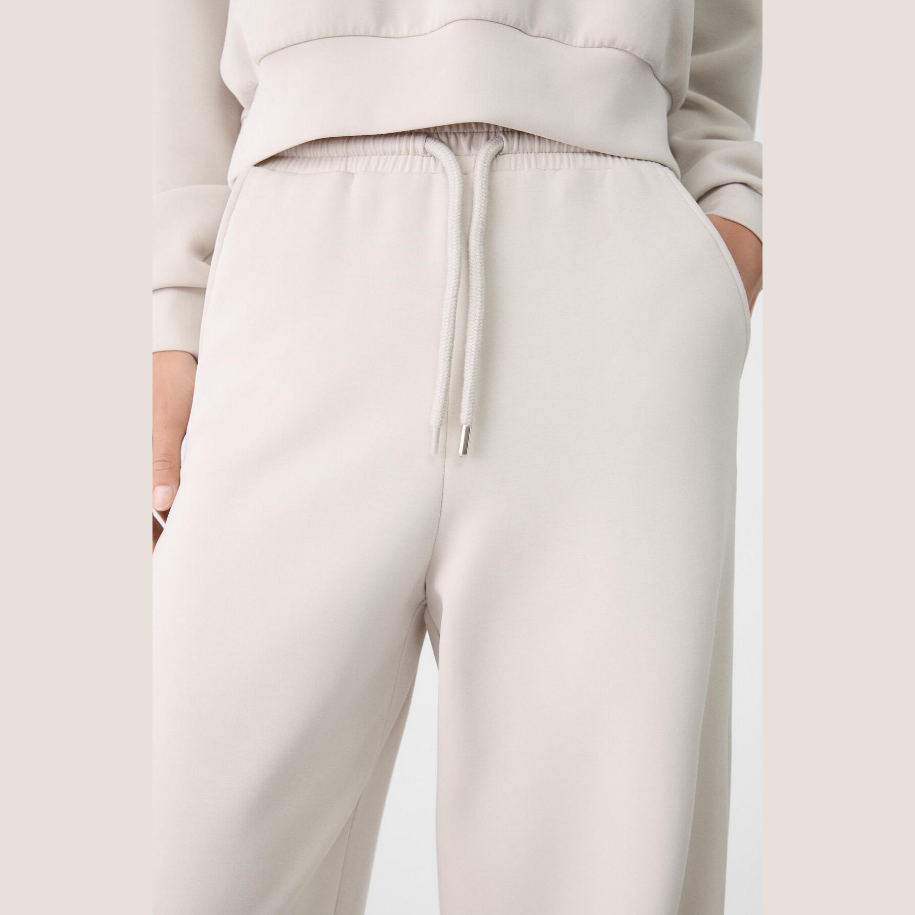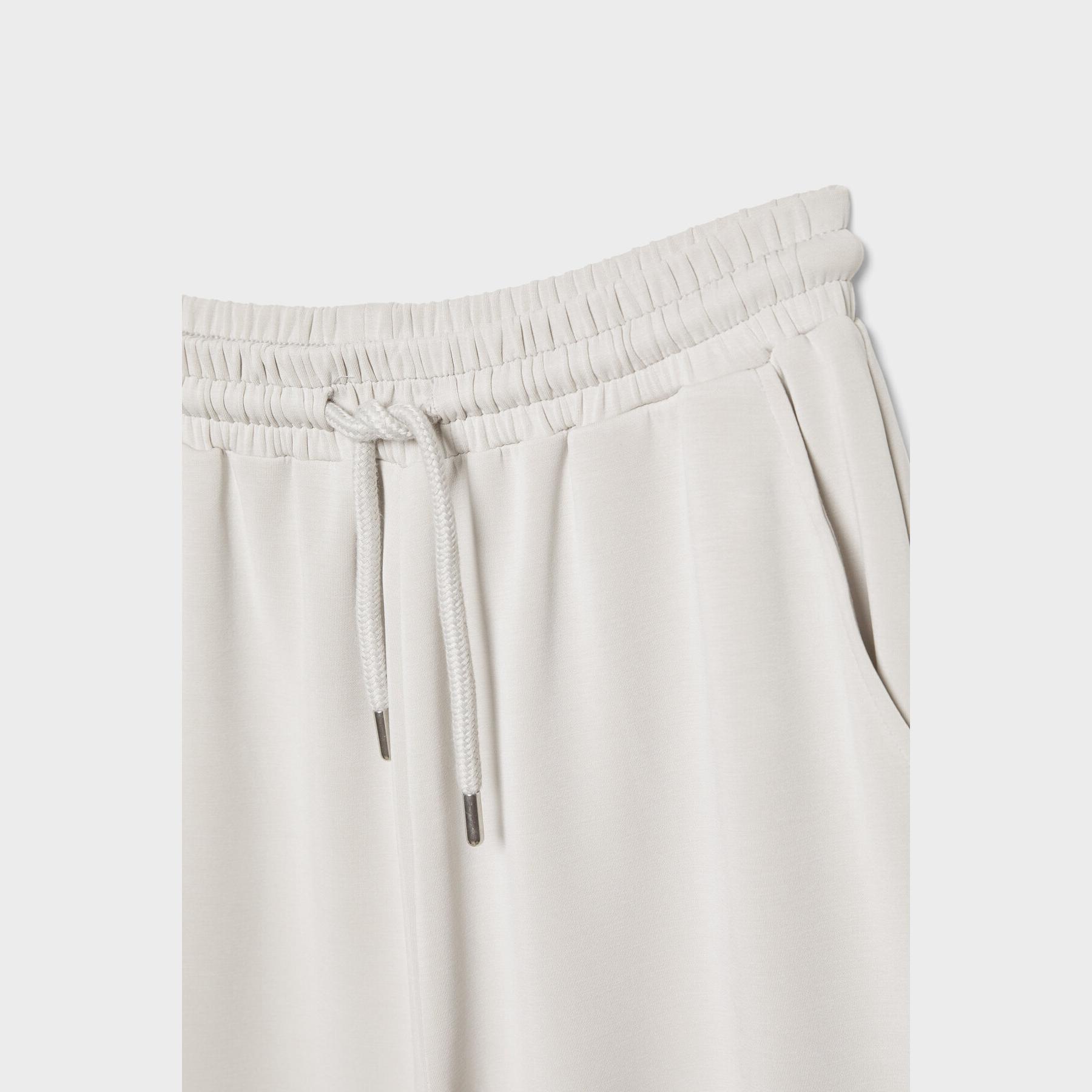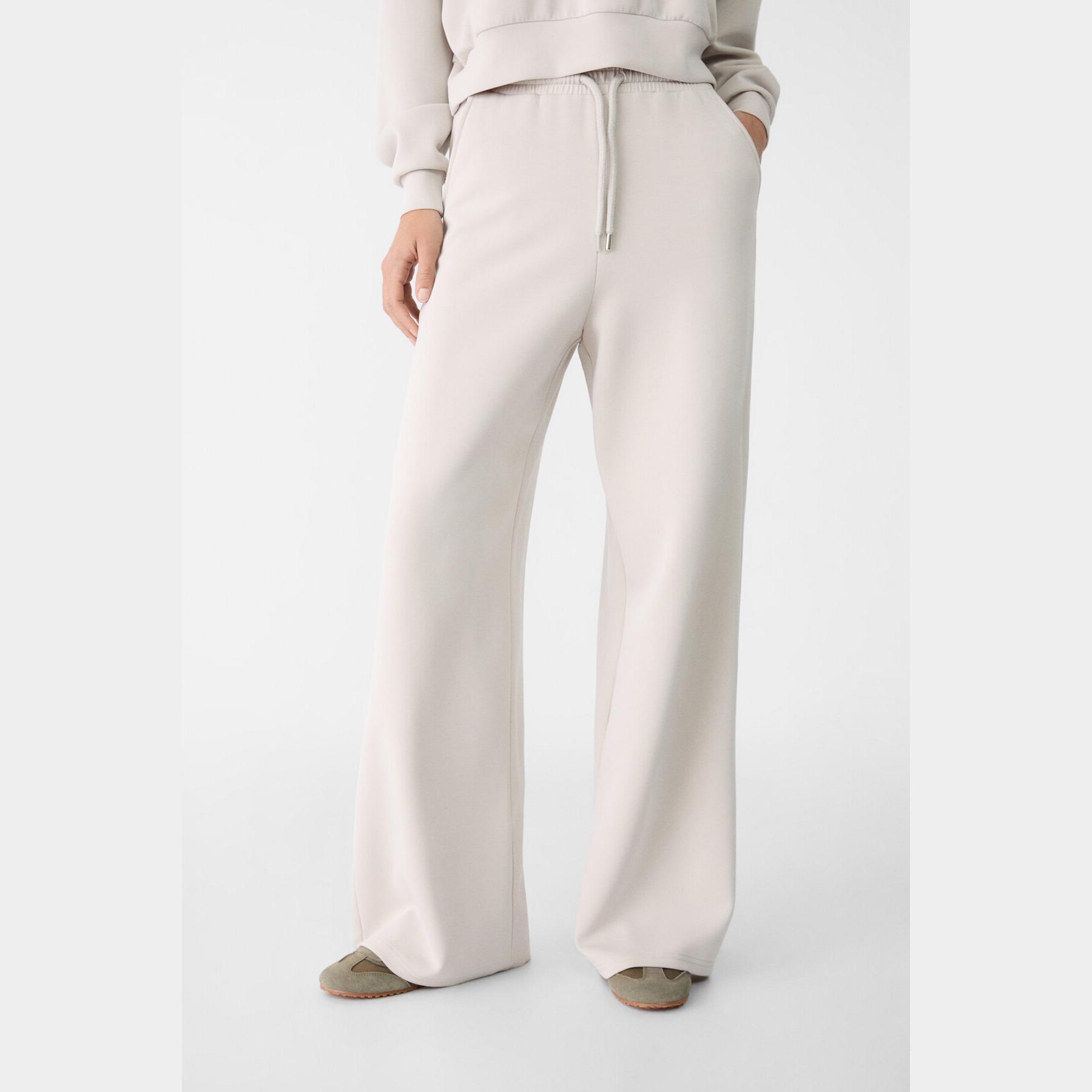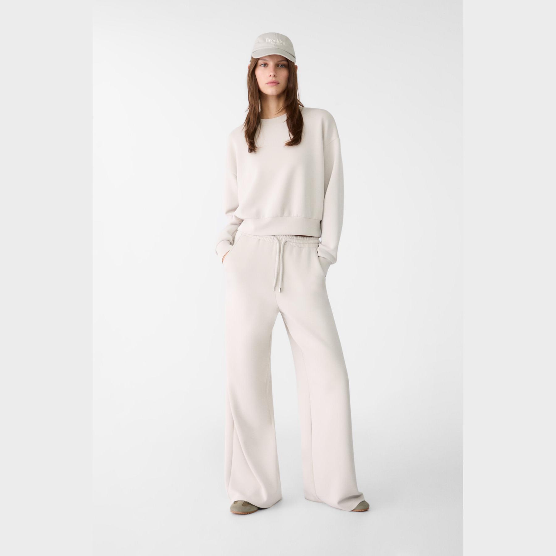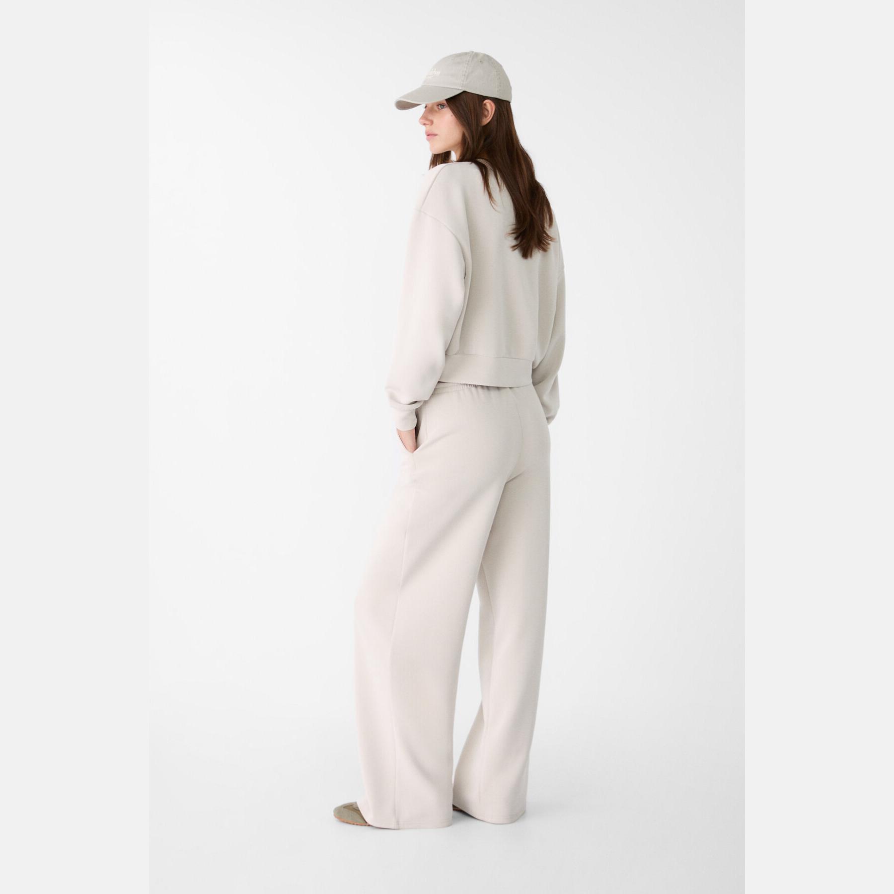بنطال عملي من Stradivarius بلون رمادي، مصنوع من خامة ناعمة بتركيبة 49% مودال، 41% بوليستر، 10% إيلاستان، يتميز بقصة Palazzo واسعة، خصر متوسط بخصر مطاطي ورباط داخلي قابل للتعديل، أرجل طويلة وفضفاضة، تصميم سادة بدون طبعات، مزود بجيبين جانبيين، ملمس داخلي ناعم، بدون بطانة، مثالي للتنسيق مع كنزة محبوكة أو تيشيرت لإطلالة كاجوال ناعمة.